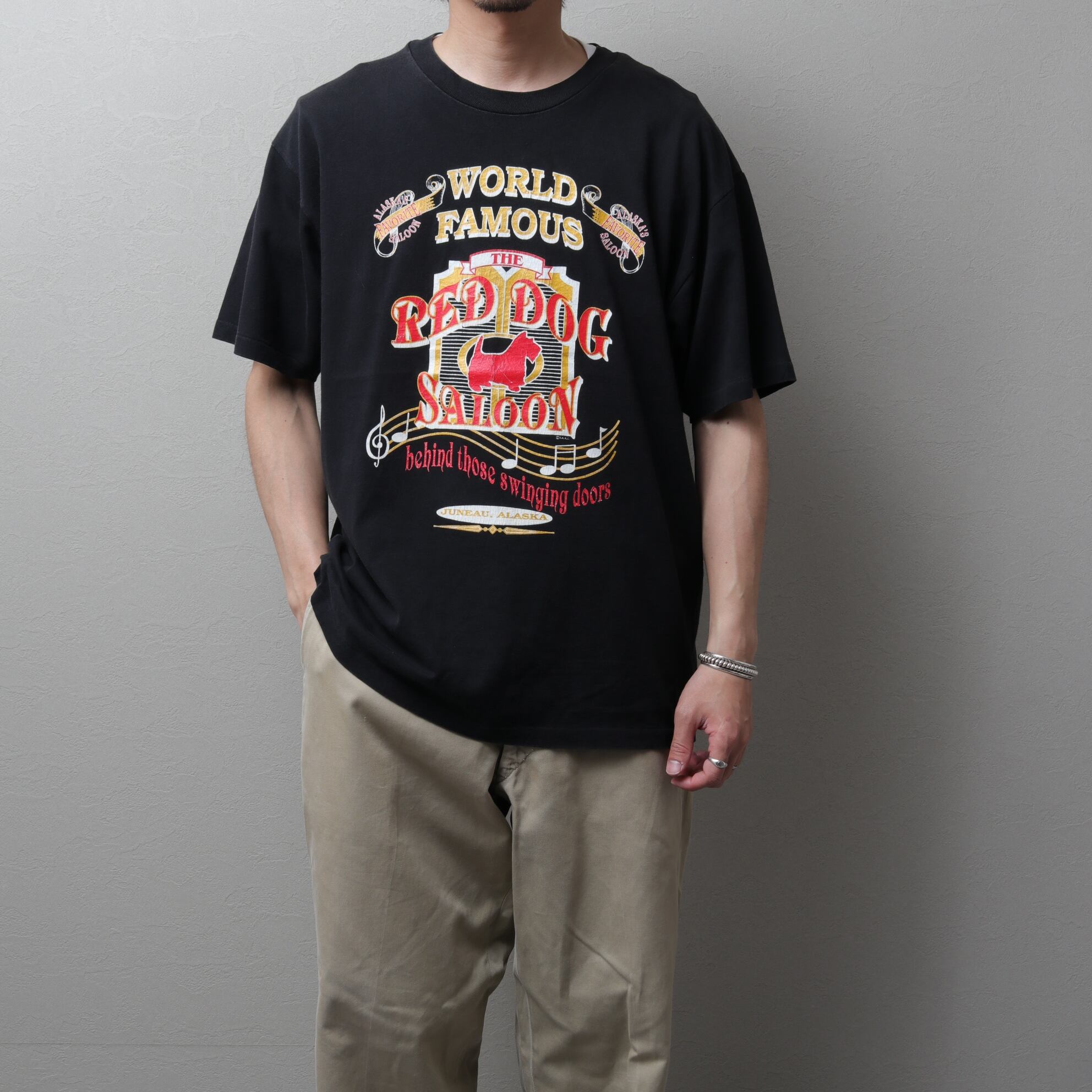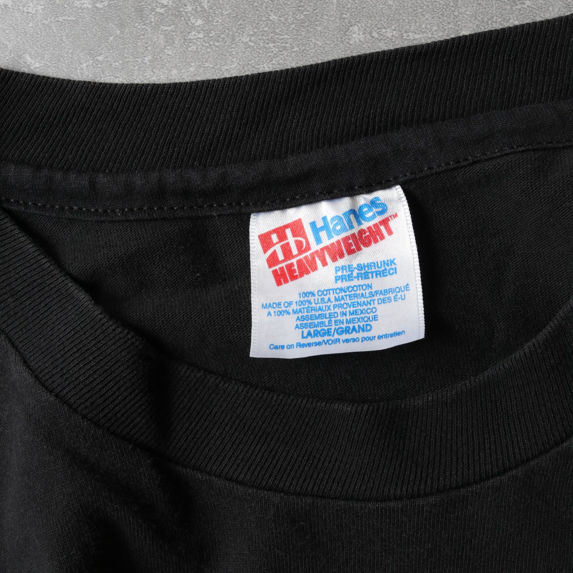 アメリカ製生地、メキシコ縫製のヘインズ・オールコットンボディ、袖裾シングルです。