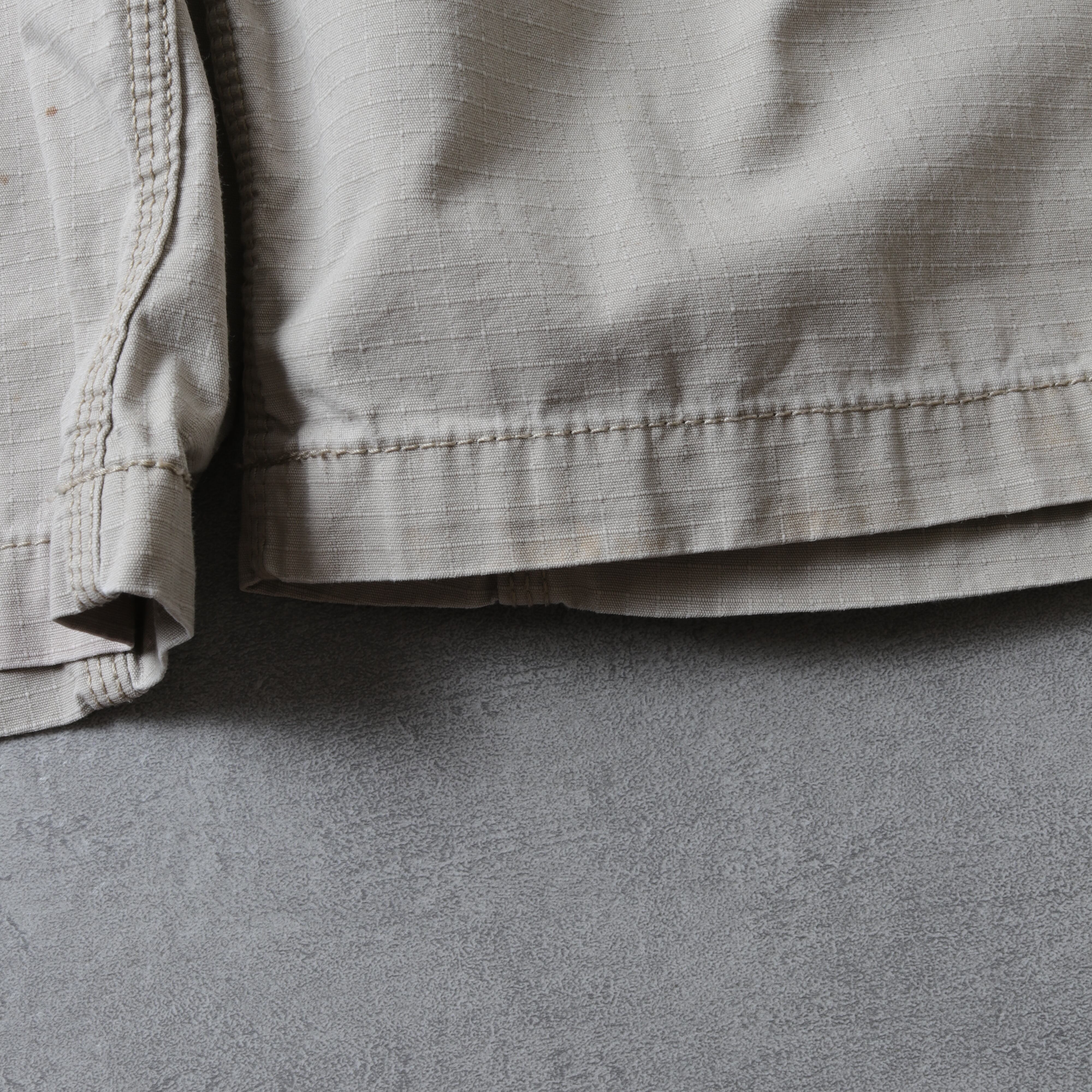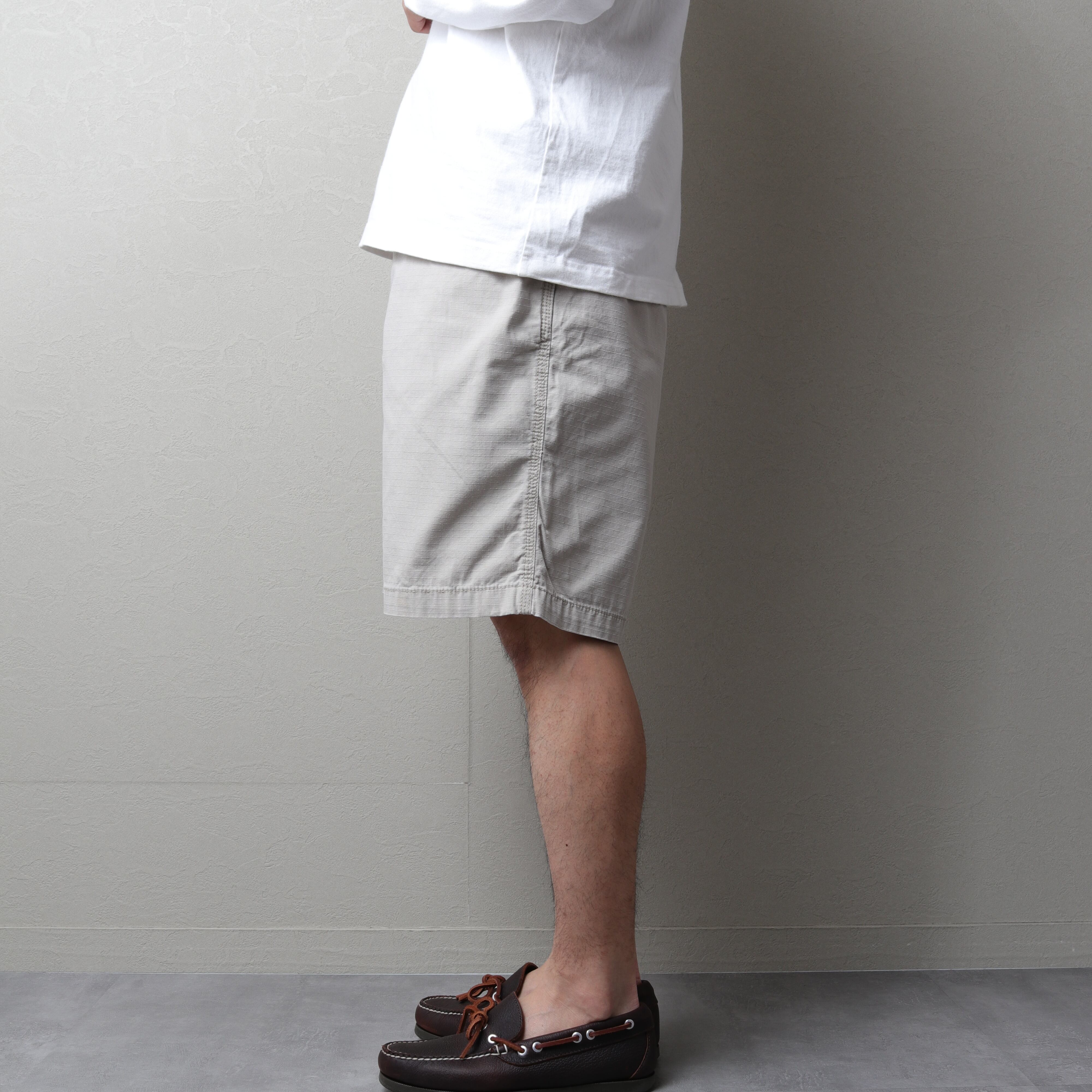 ひざ丈でゆとりあるフィッティングに生地はリップストップ。