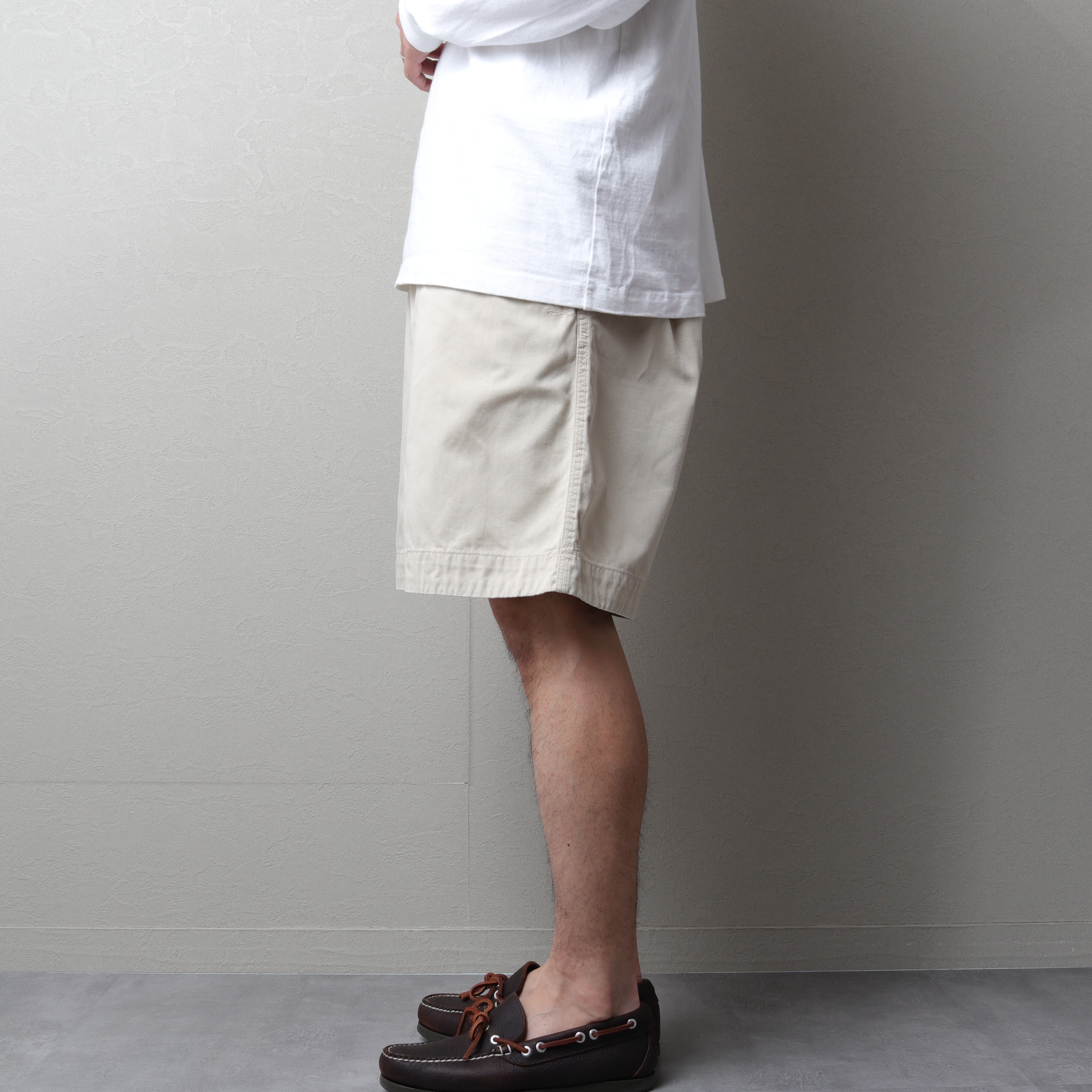 ひざ丈で裾幅の広いRelaxed Fit。トリプルステッチなど手間がかかった縫製と