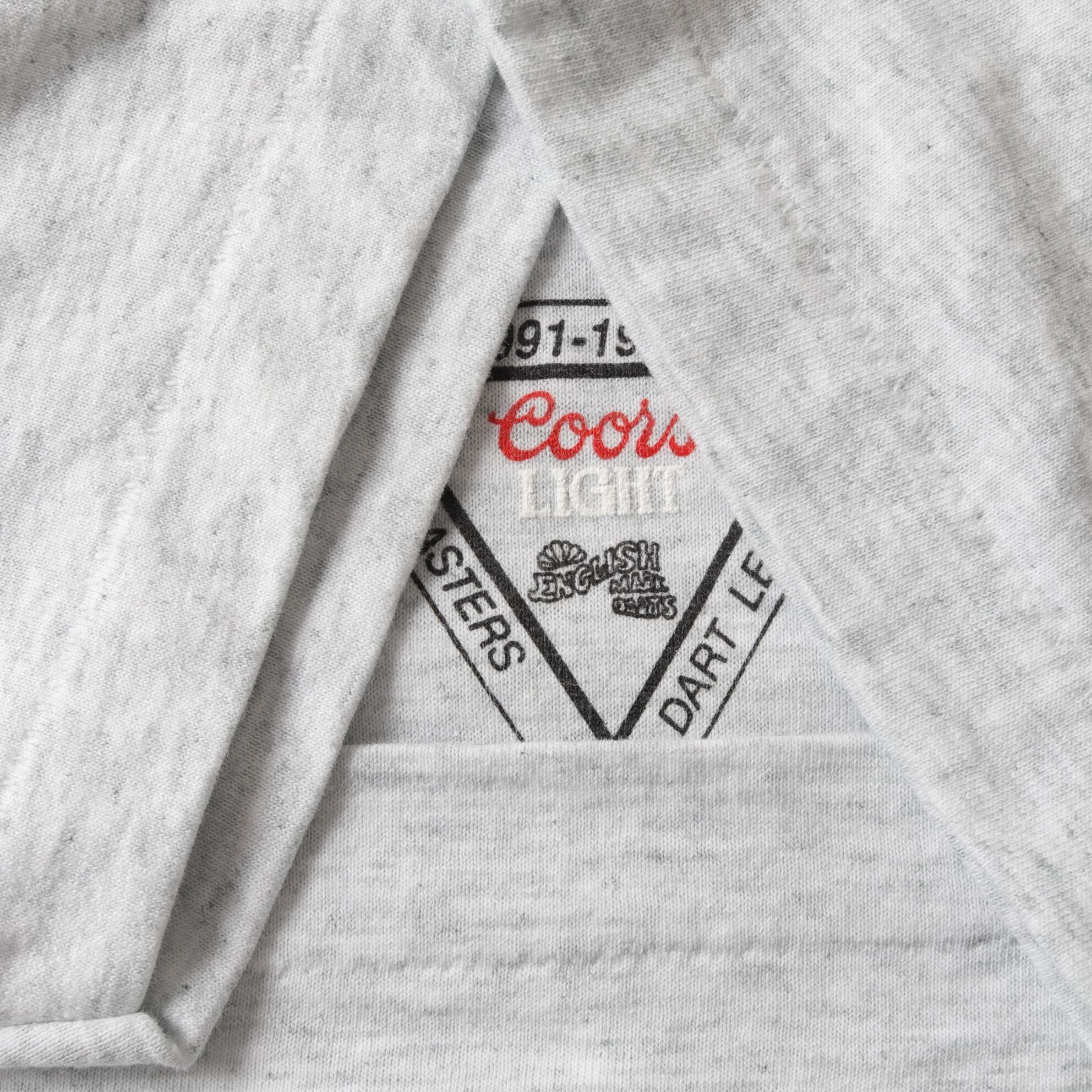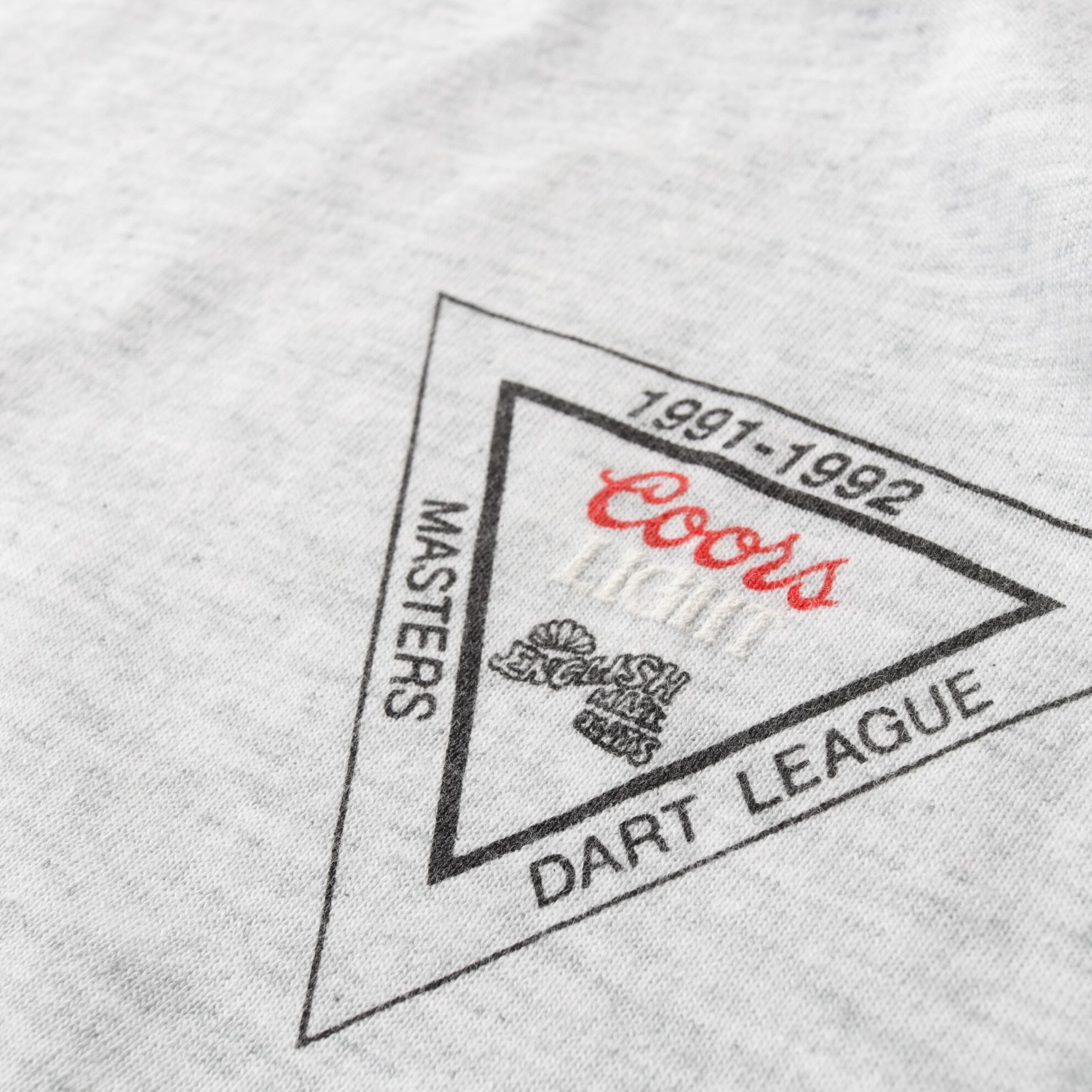 ビール銘柄のクアーズライトがスポンサーに入るダーツリーグのTシャツ。