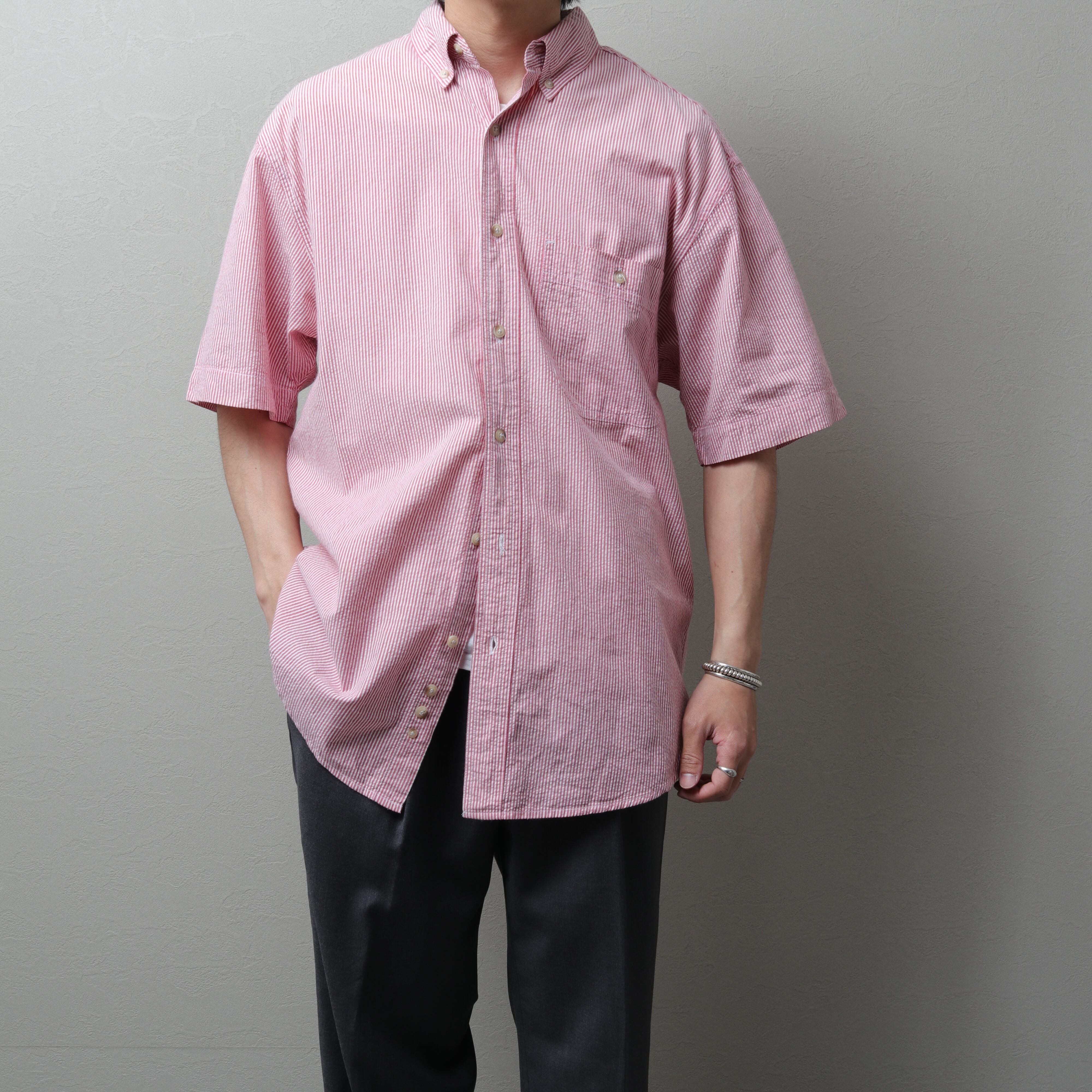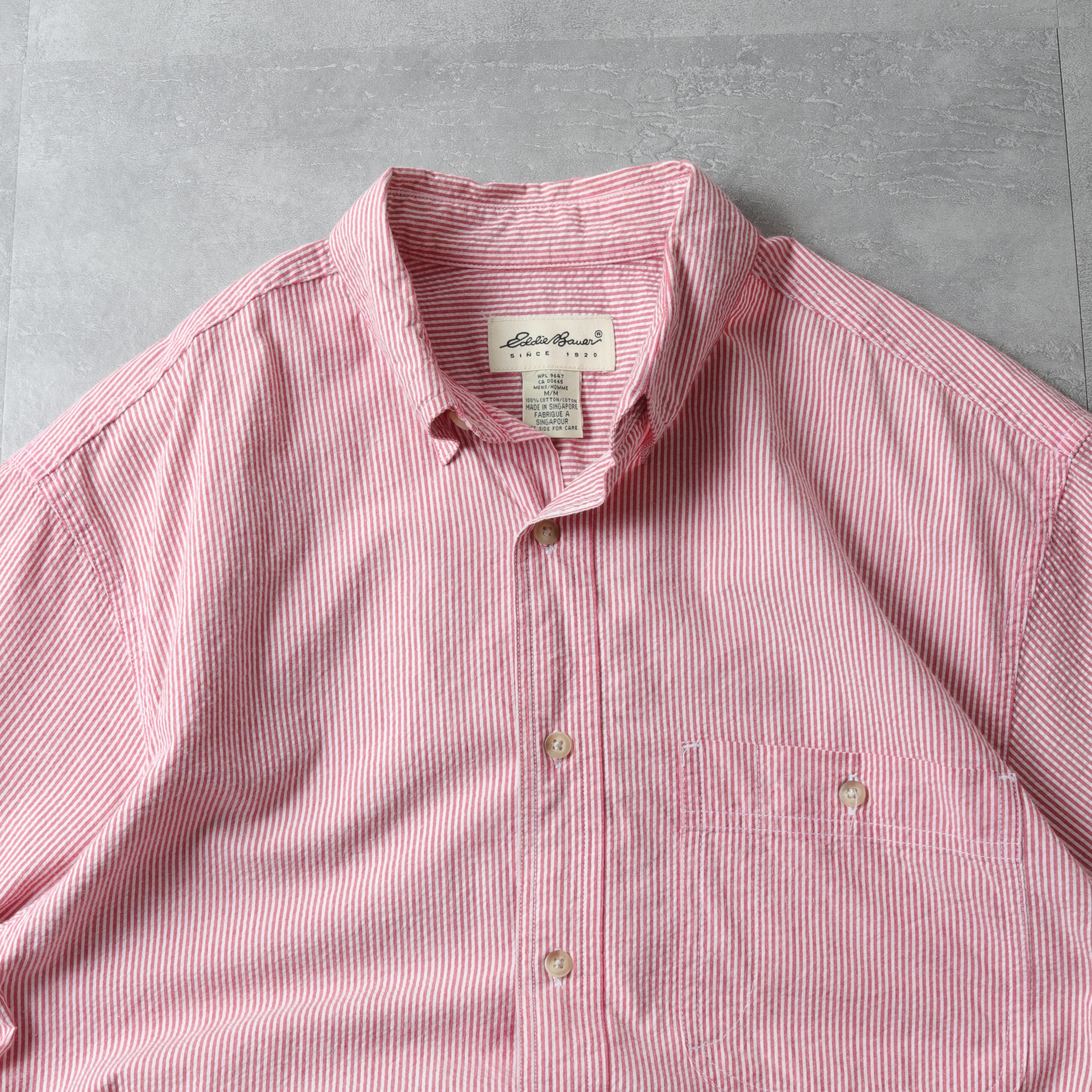 1990's~ Eddie Bauer S/S Seersucker B.D Shirt, candy stripe 121073