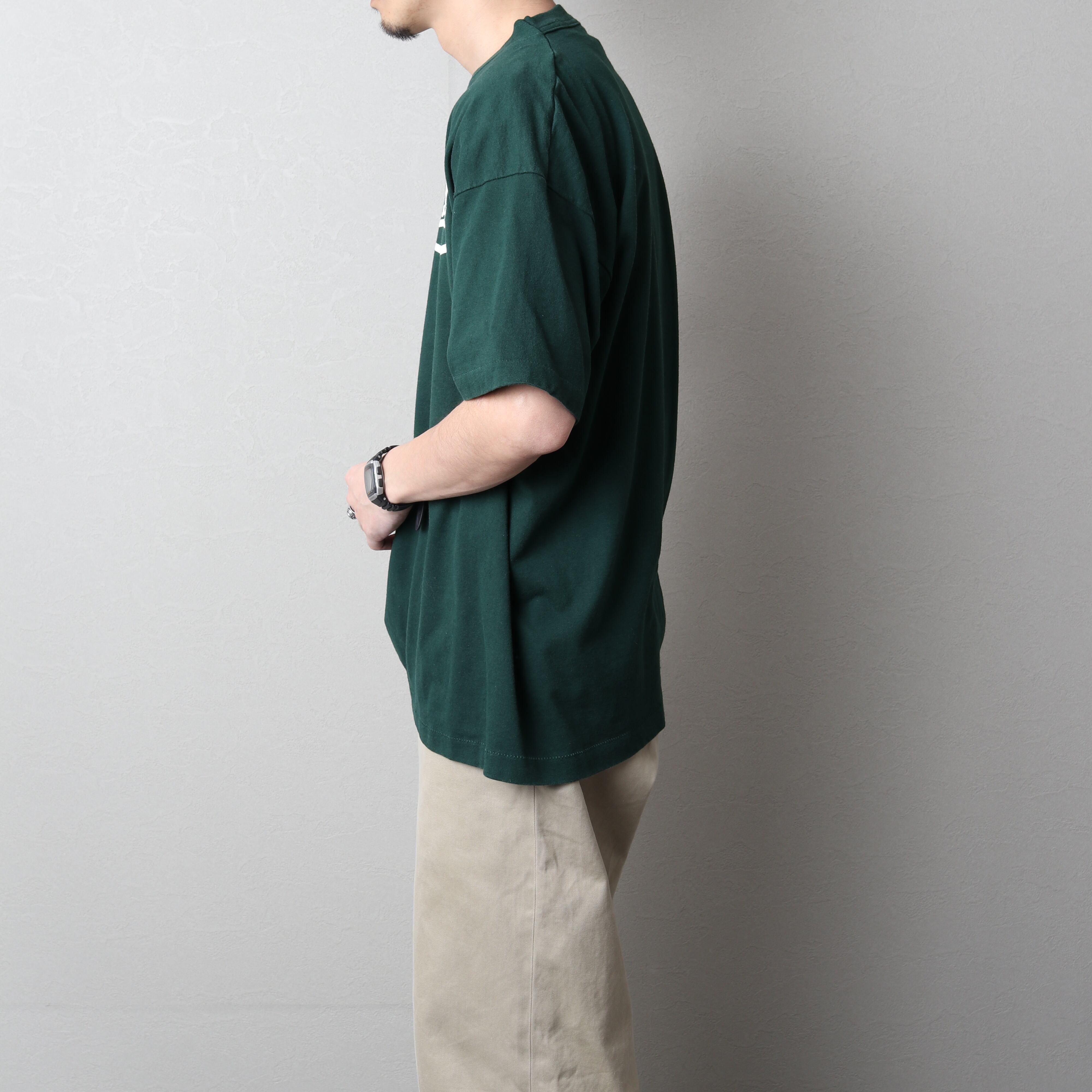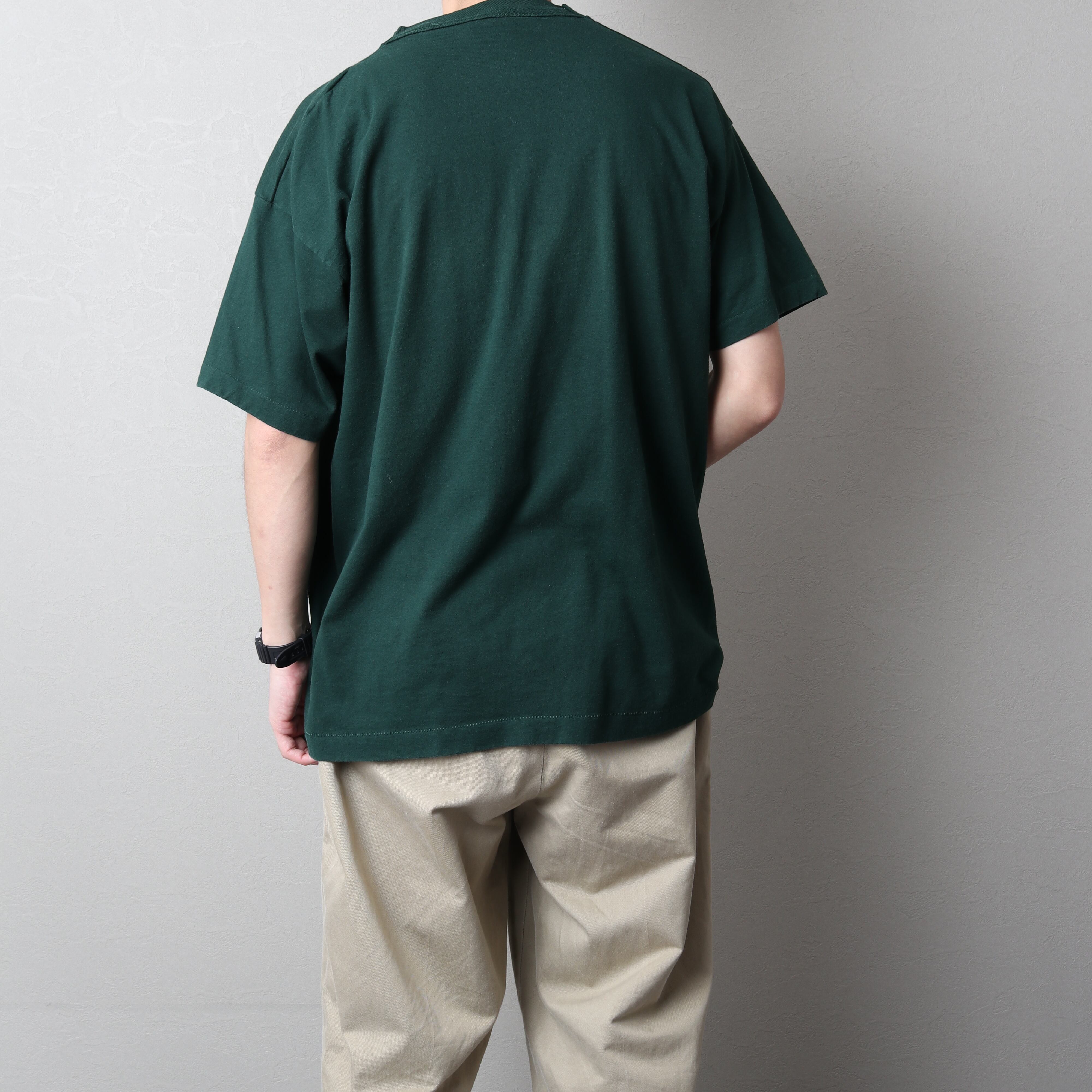 濃いgreenに割れたシルクスクリーンプリントが雰囲気抜群です。