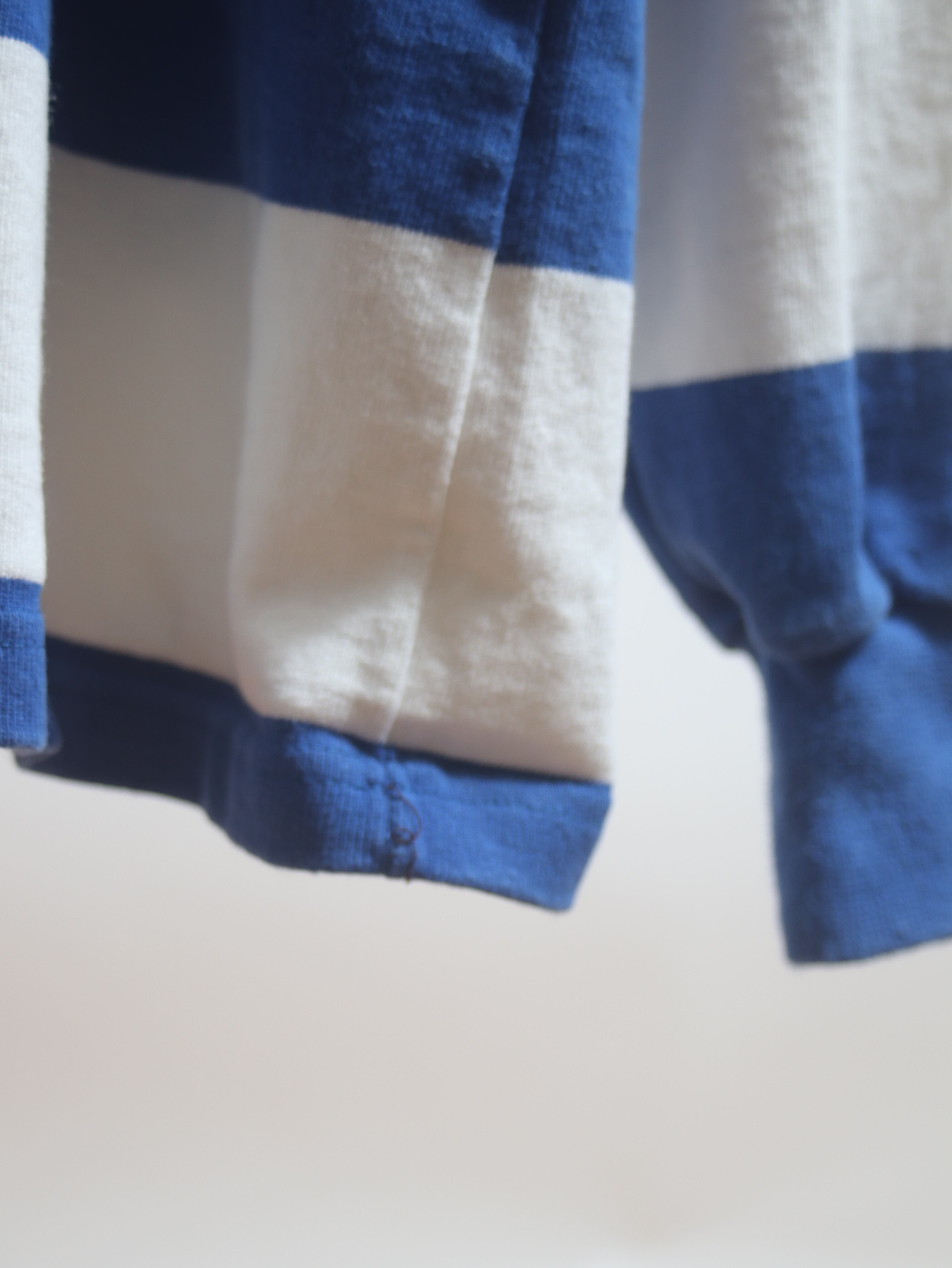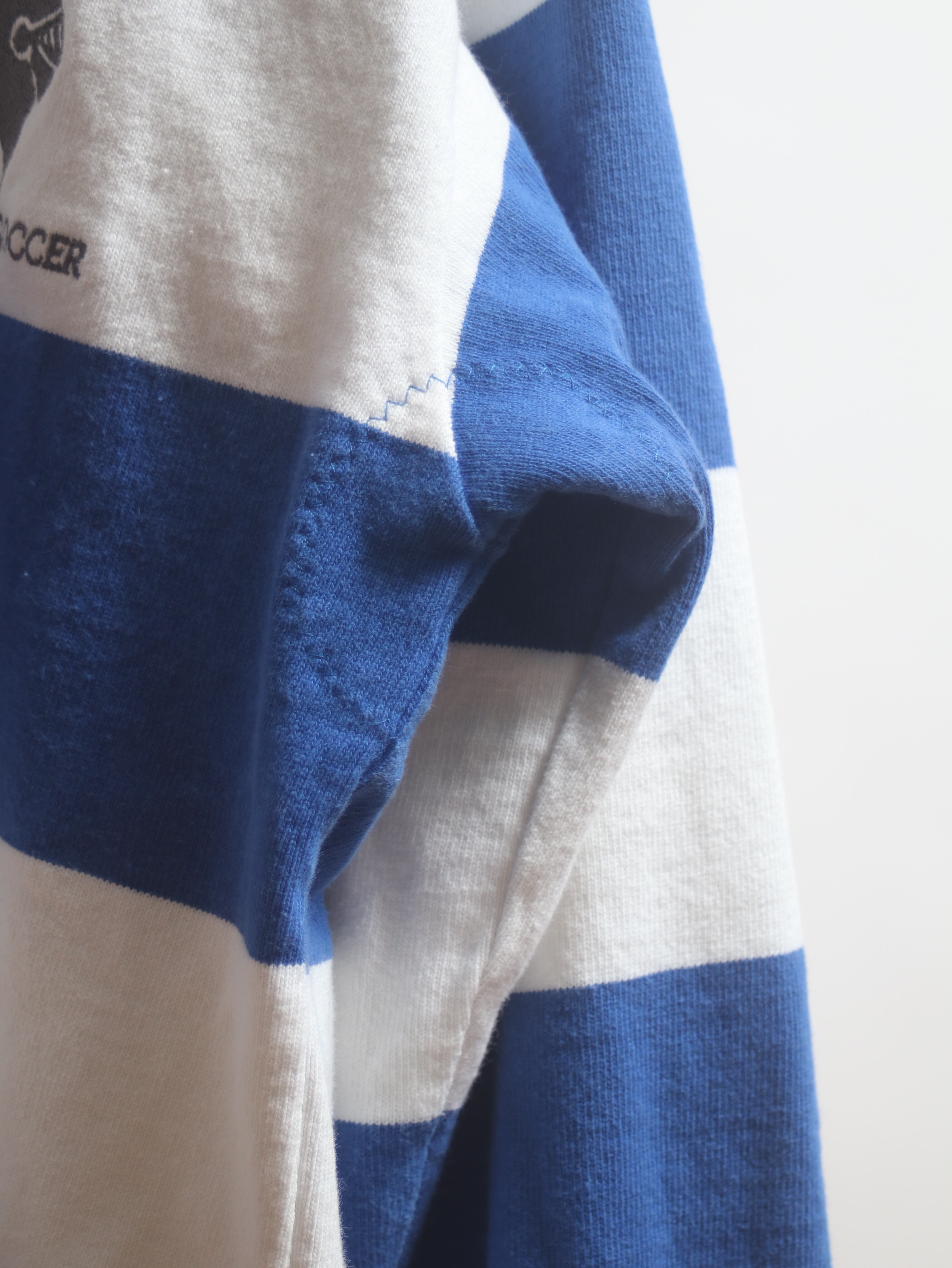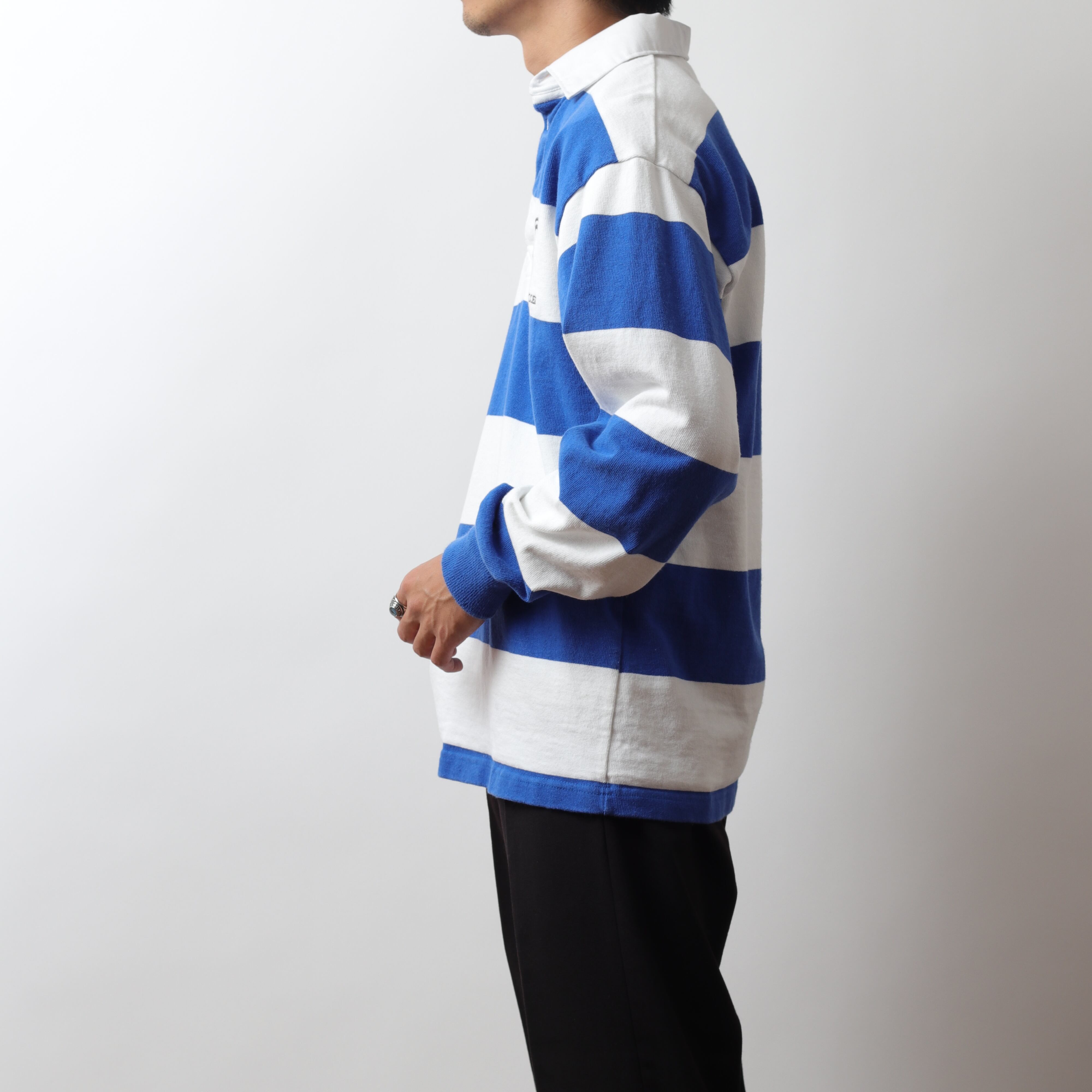 ベビーウェイトボディにラバーボタン、脇の補強など本格的なラグビーシャツです。