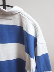 ありそうでない白青の太ボーダー、デニムでもホワイトパンツでも良しです。