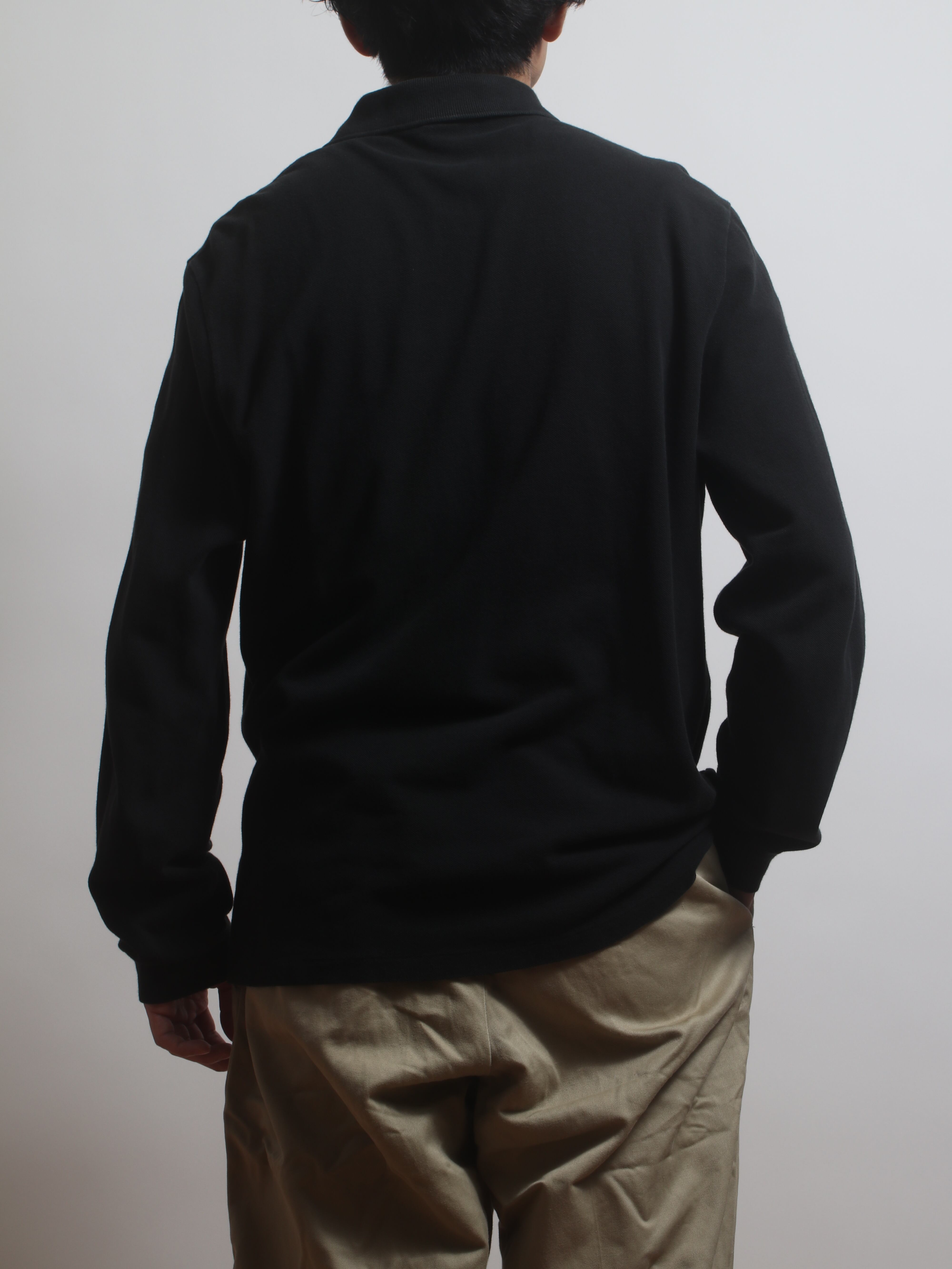 昨今、見つけるのが難しいの長袖ポロ。黒となると猶更です。
