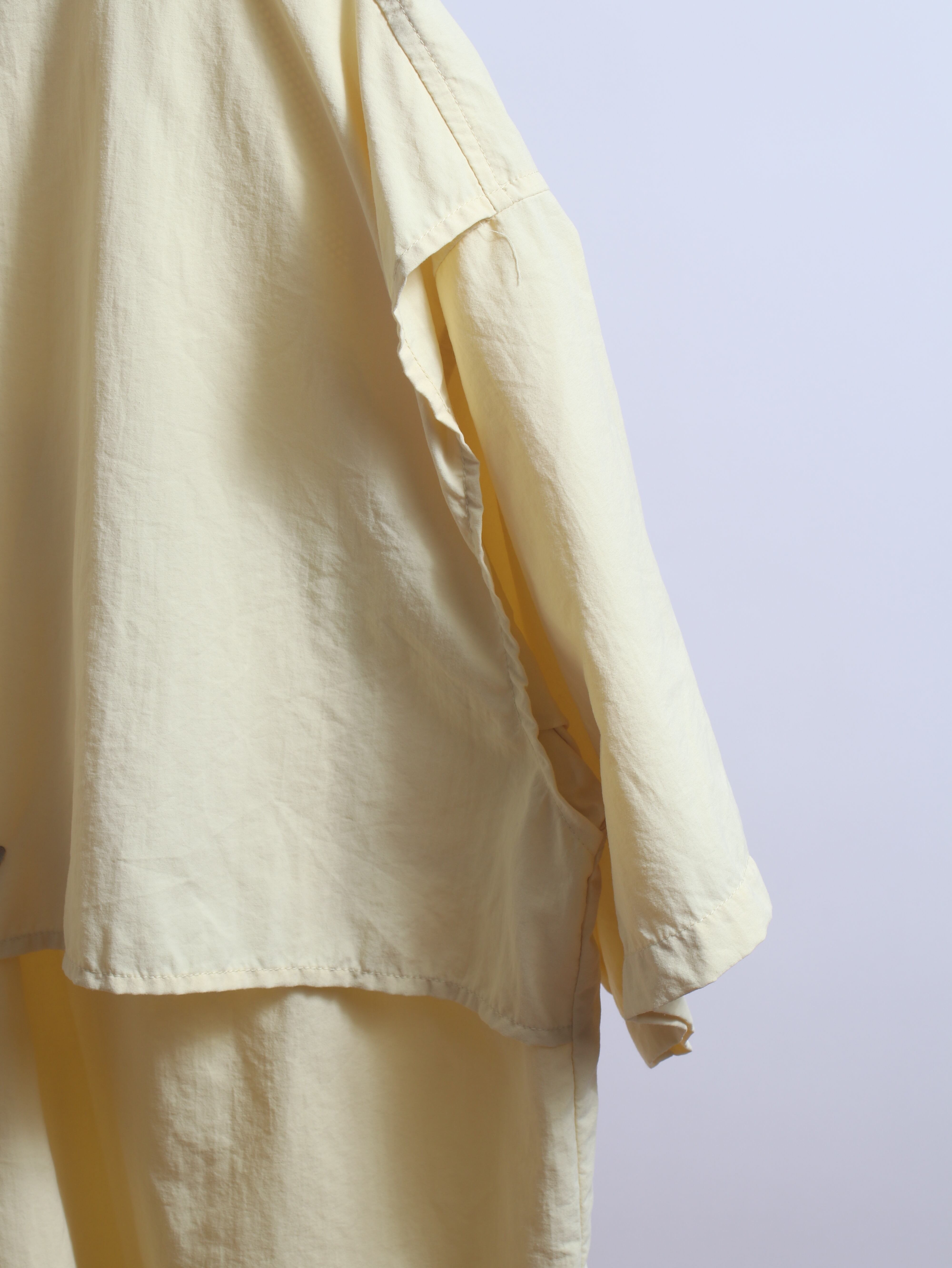 広い身幅に袖は可動域を広めるマチがついており、ふわっと空気を含んだ着心地です。