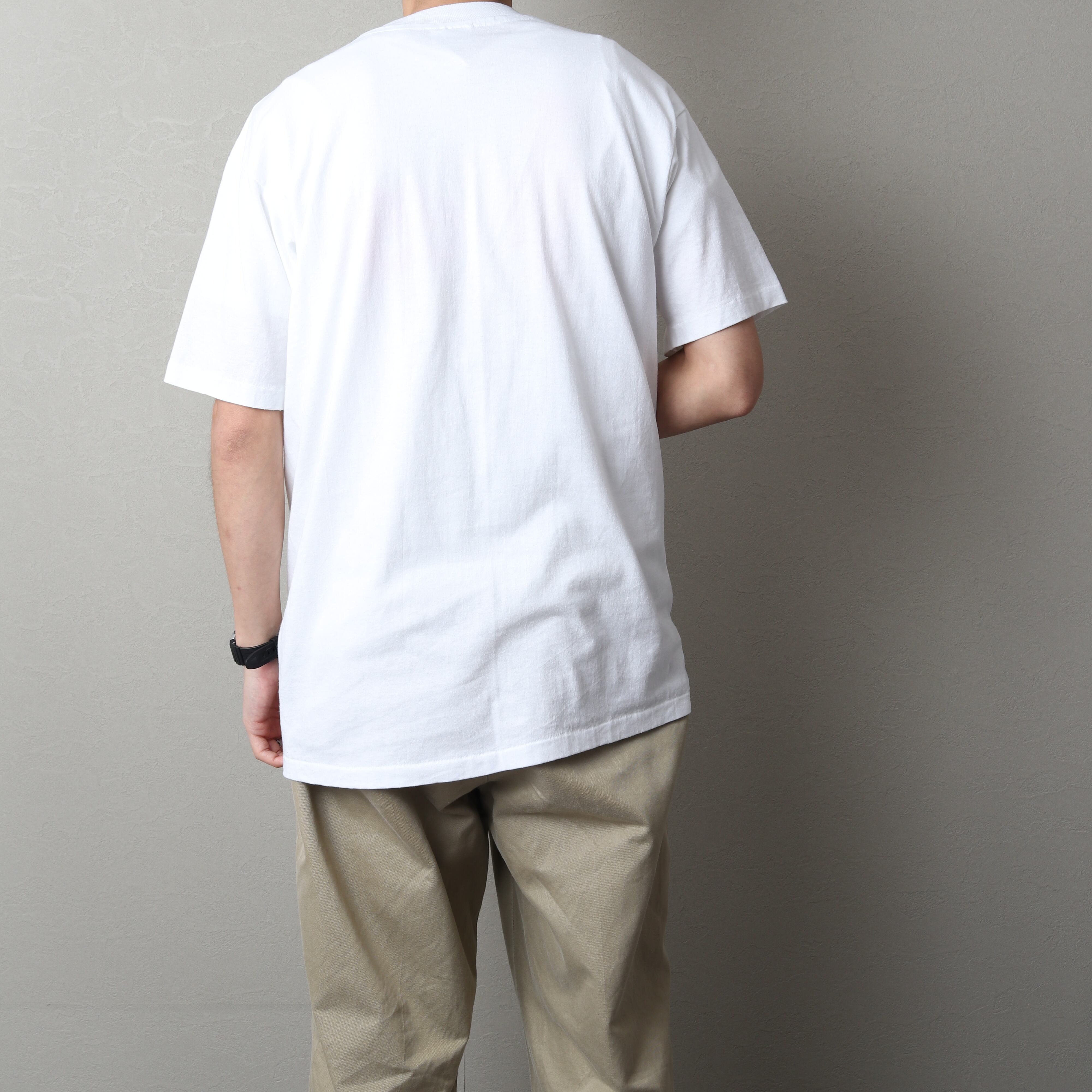 Hanesボディのアメリカ製、袖・裾シングルステッチです。