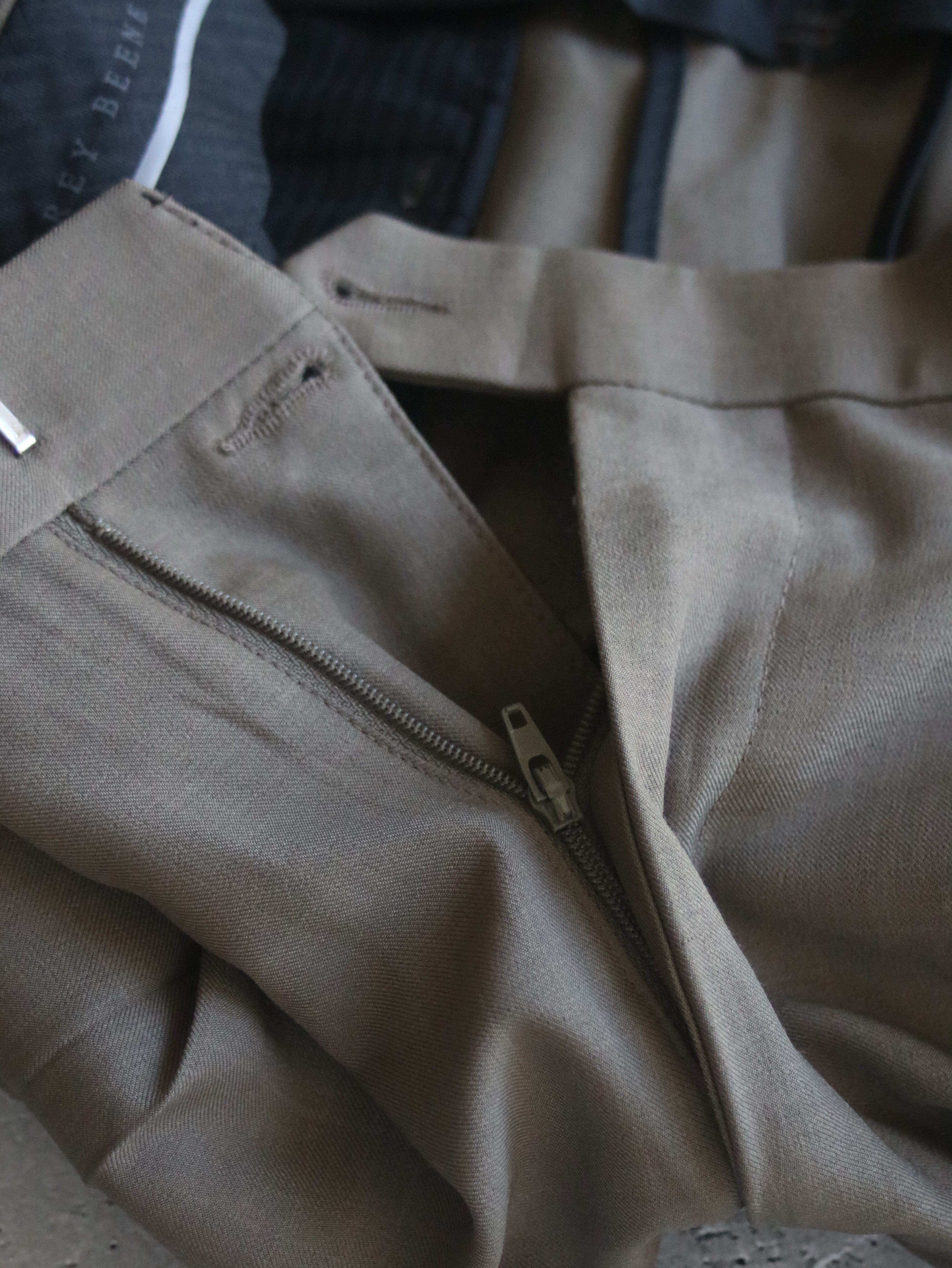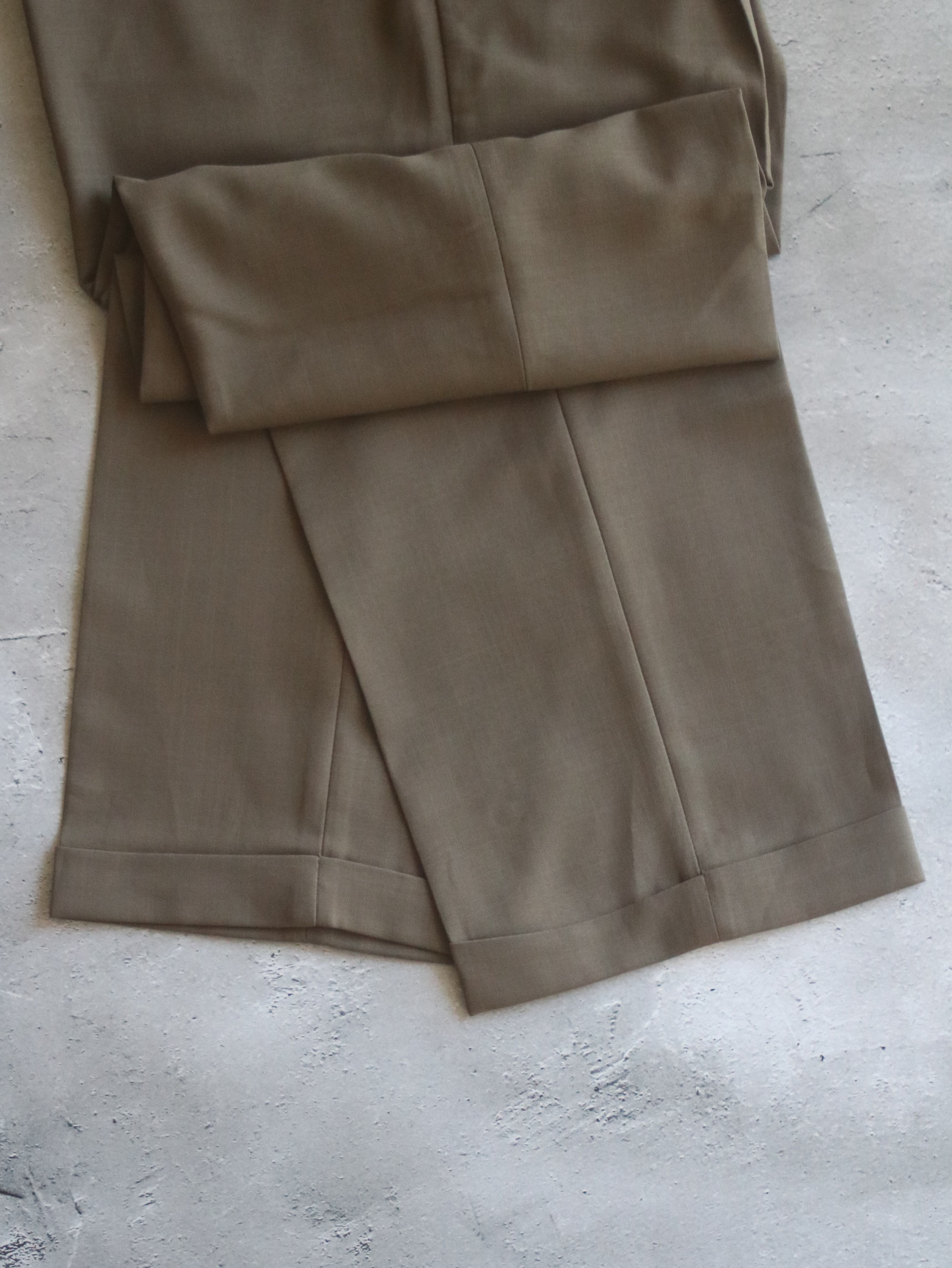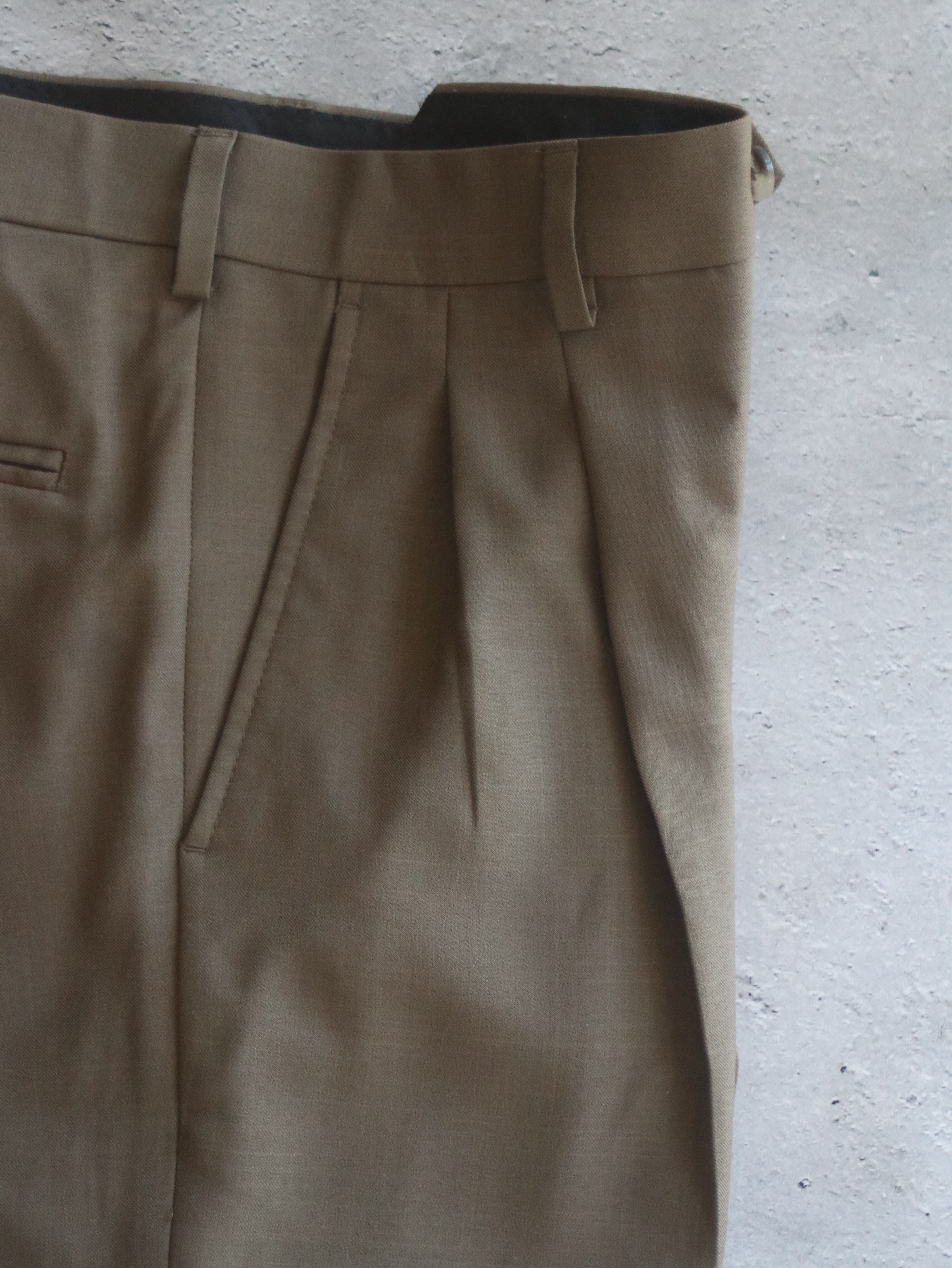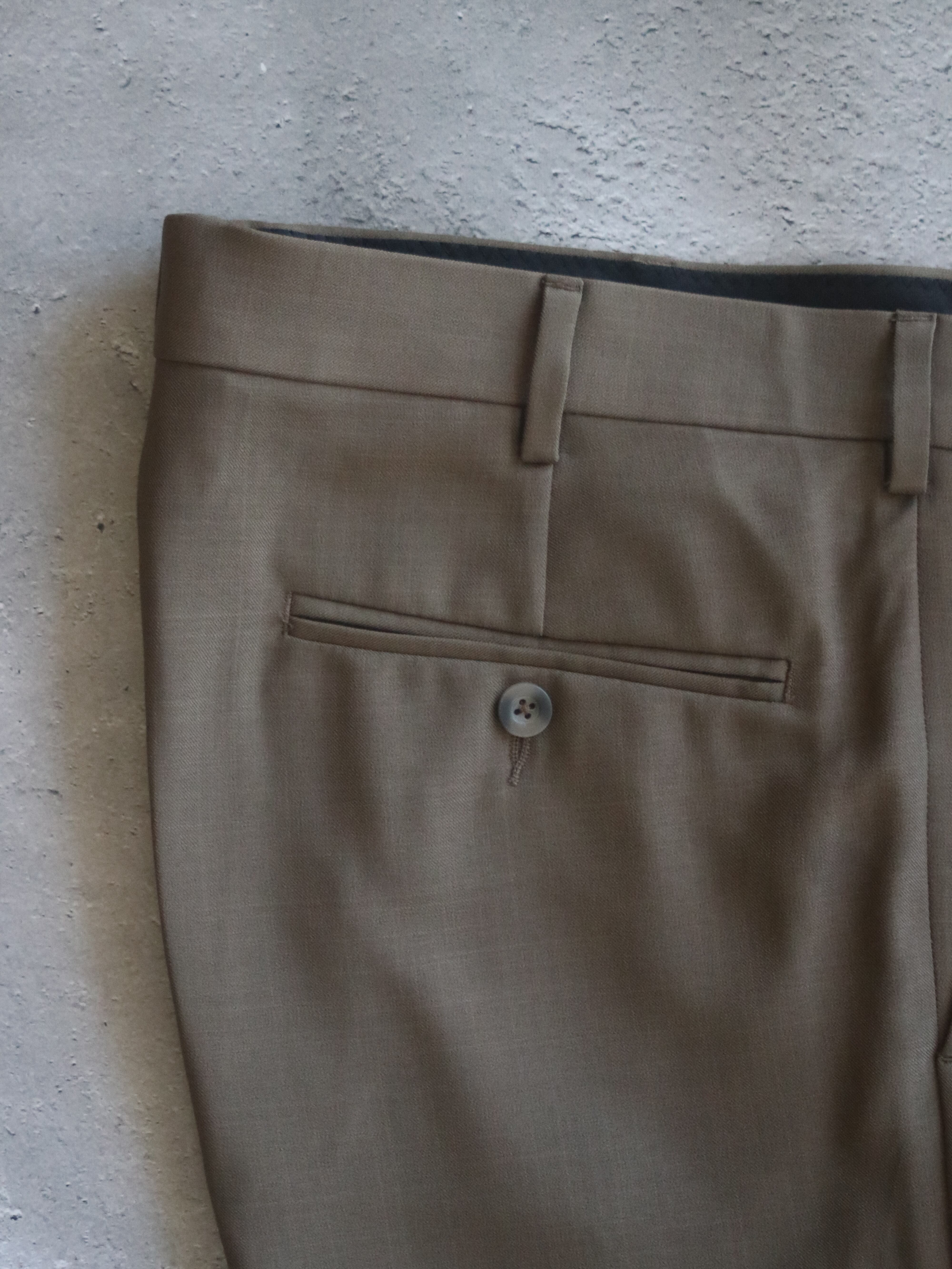 こちらはブラウンの滑らかな生地が使われたドレスパンツです。