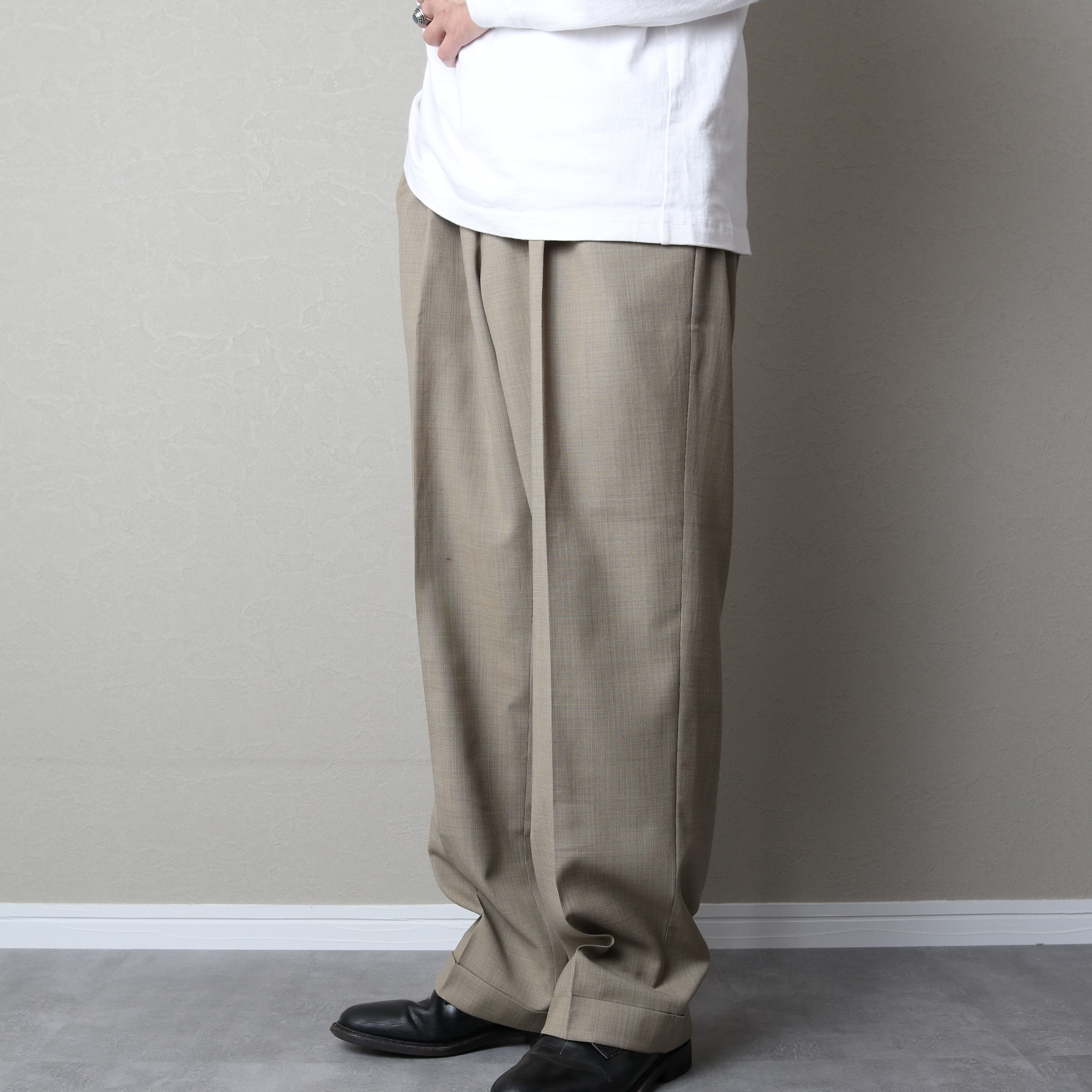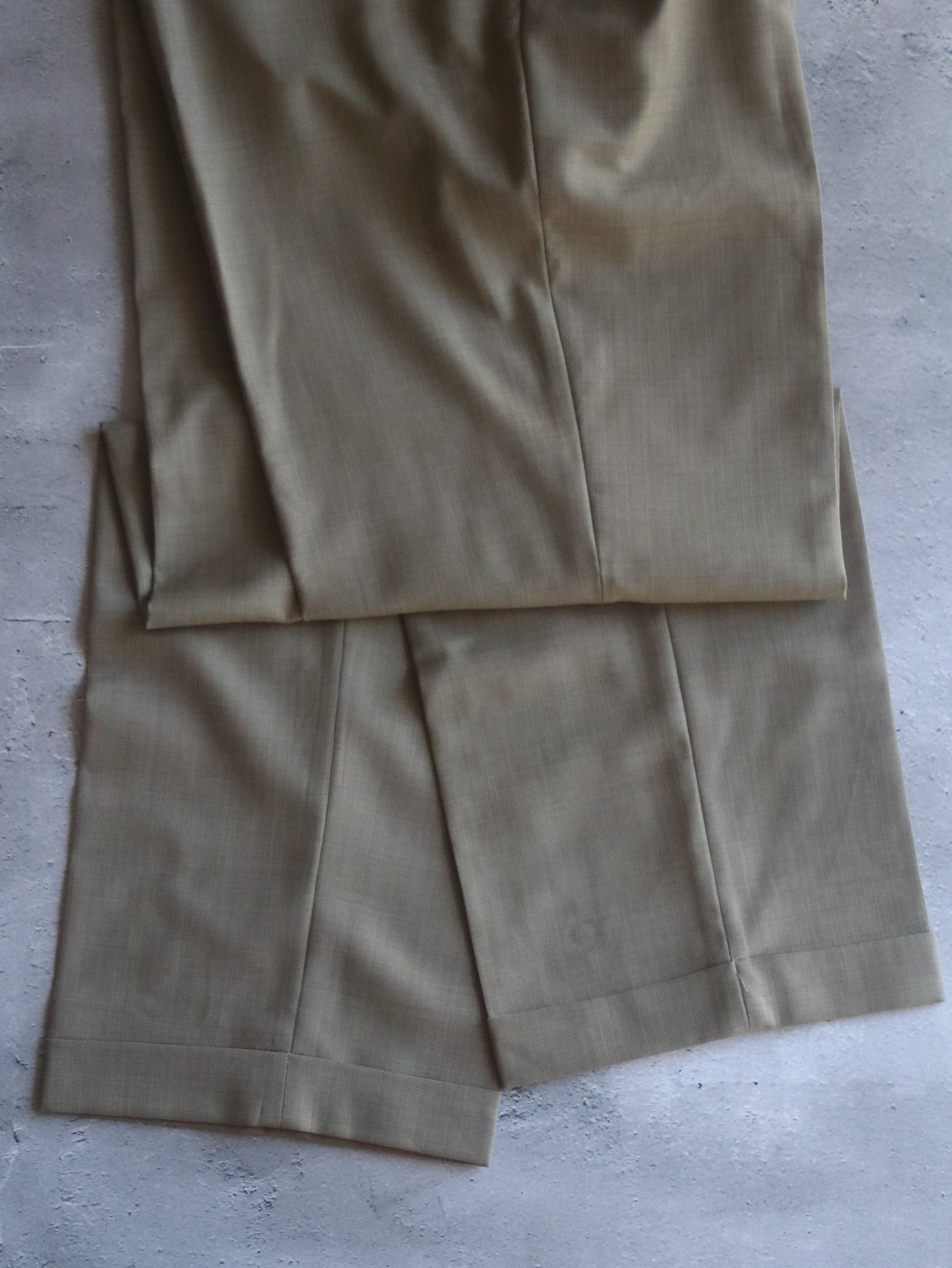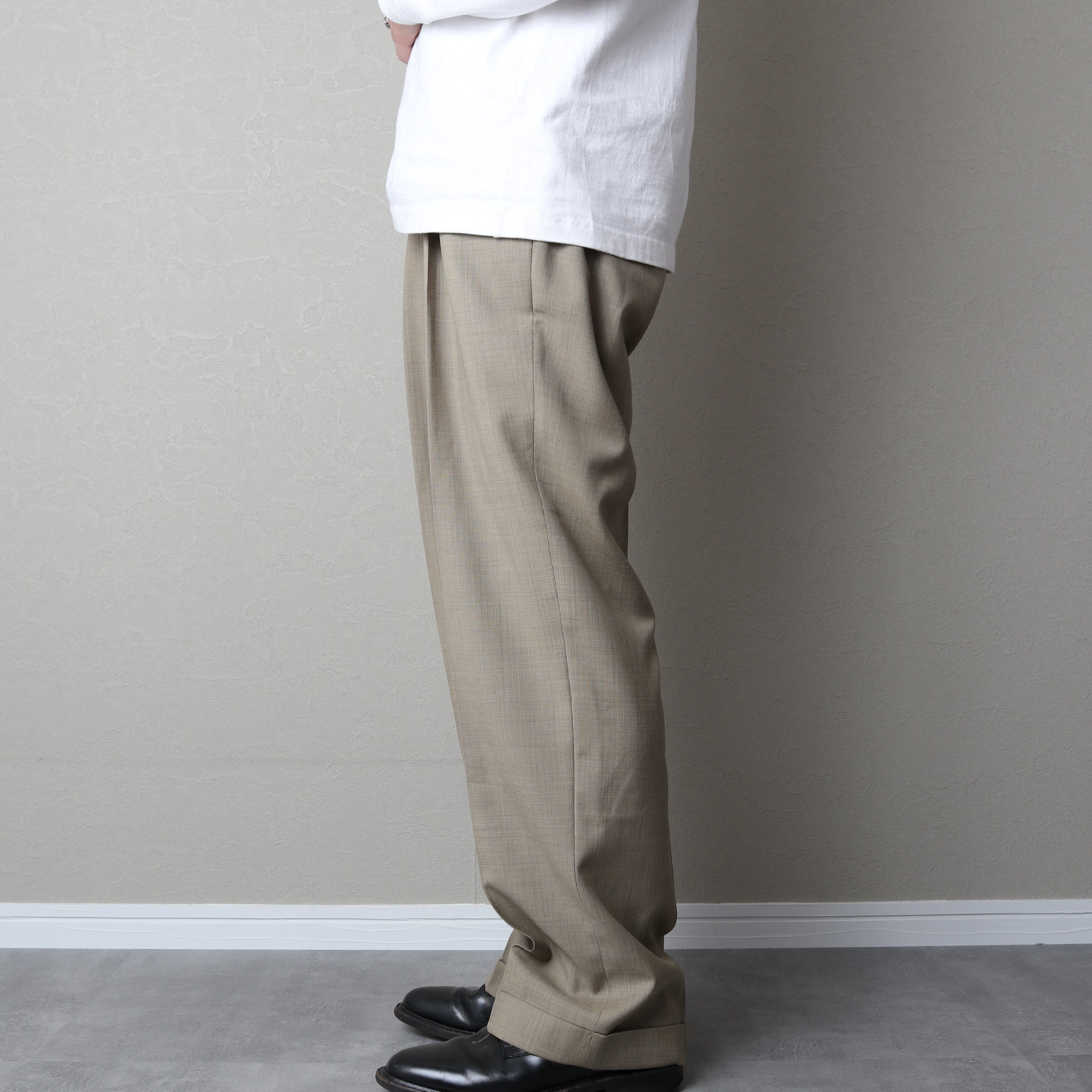 クラシックなワイドシルエットにダブル仕上げ。此方は通年穿けるウール地です。