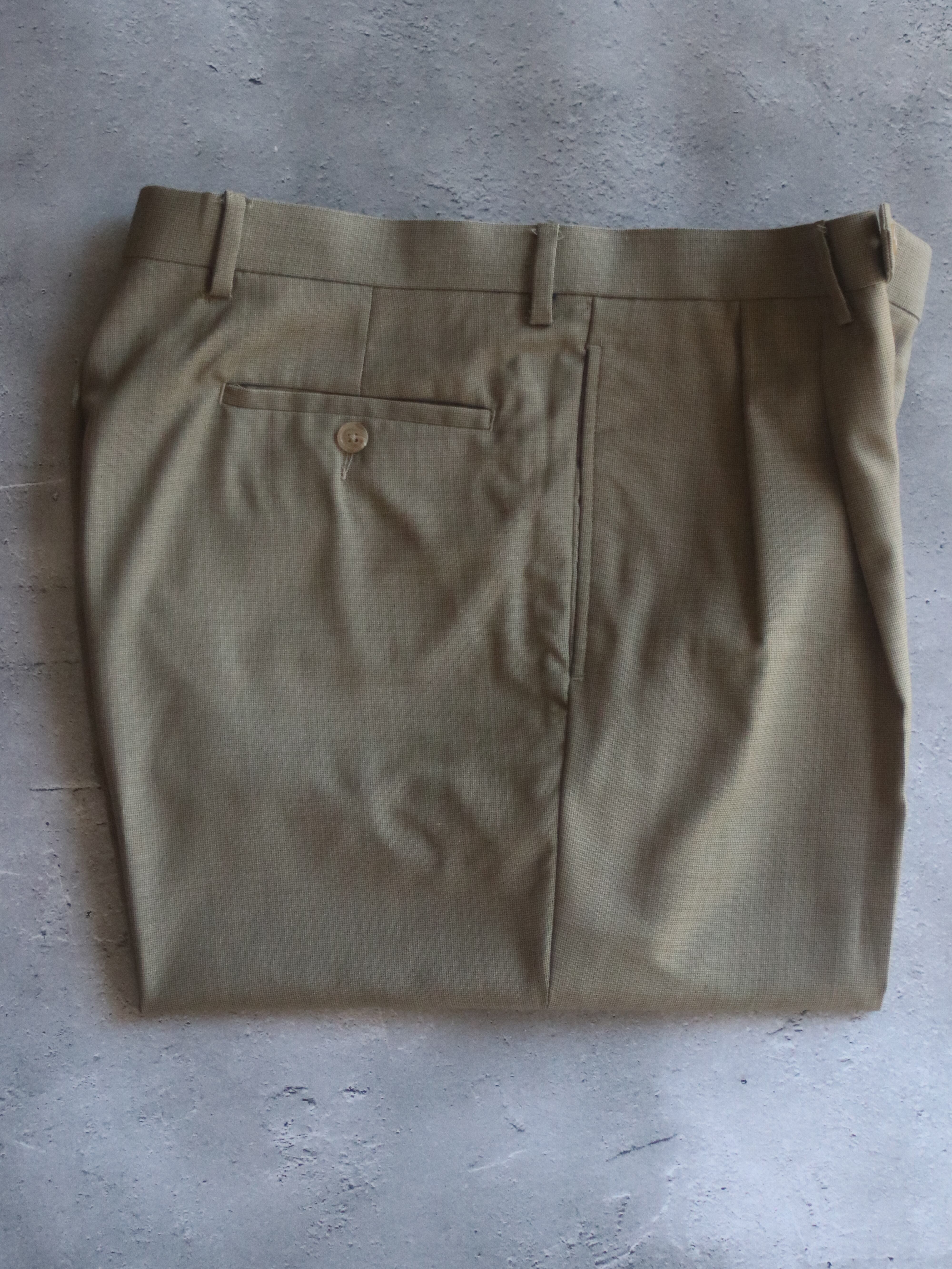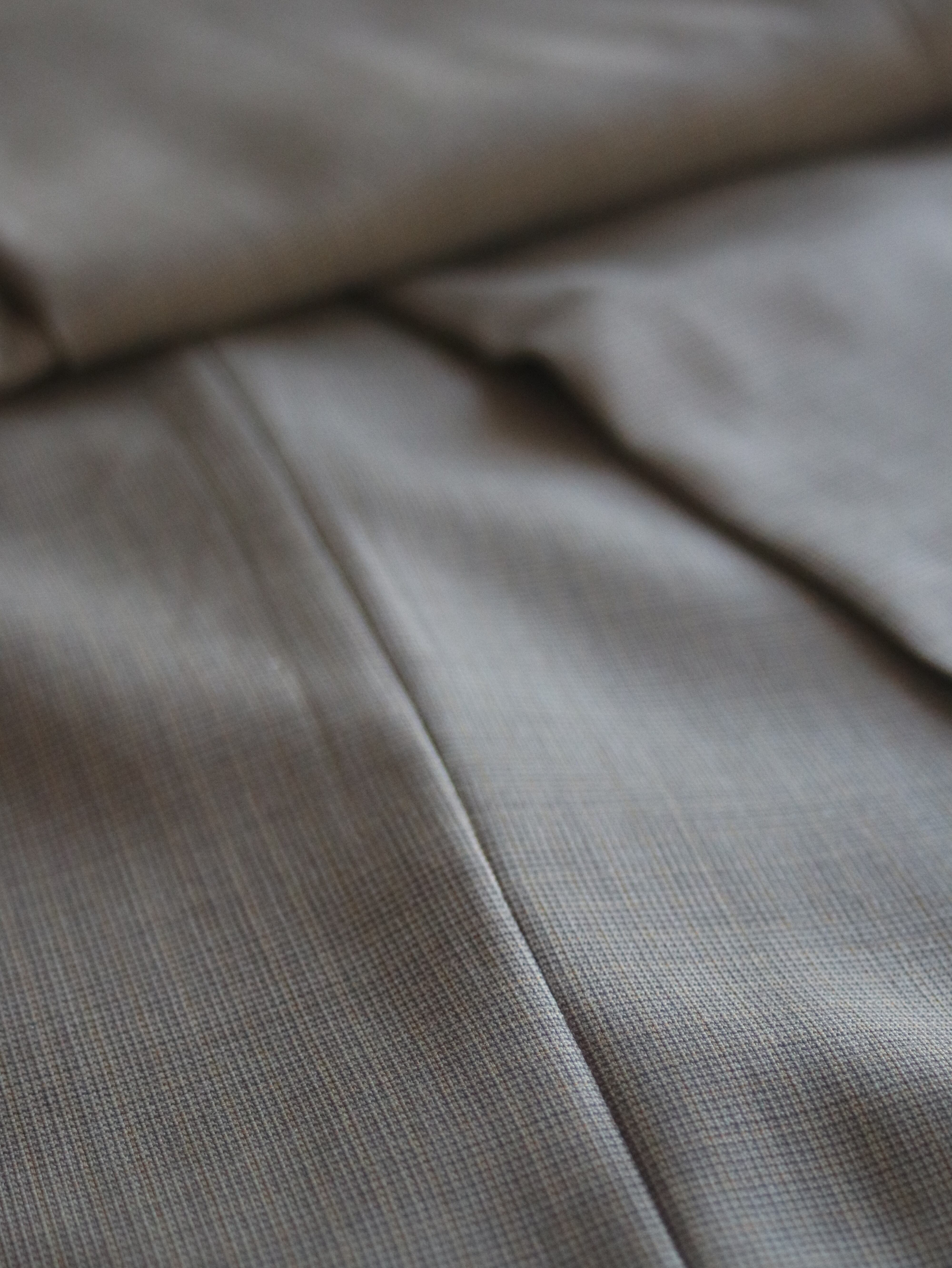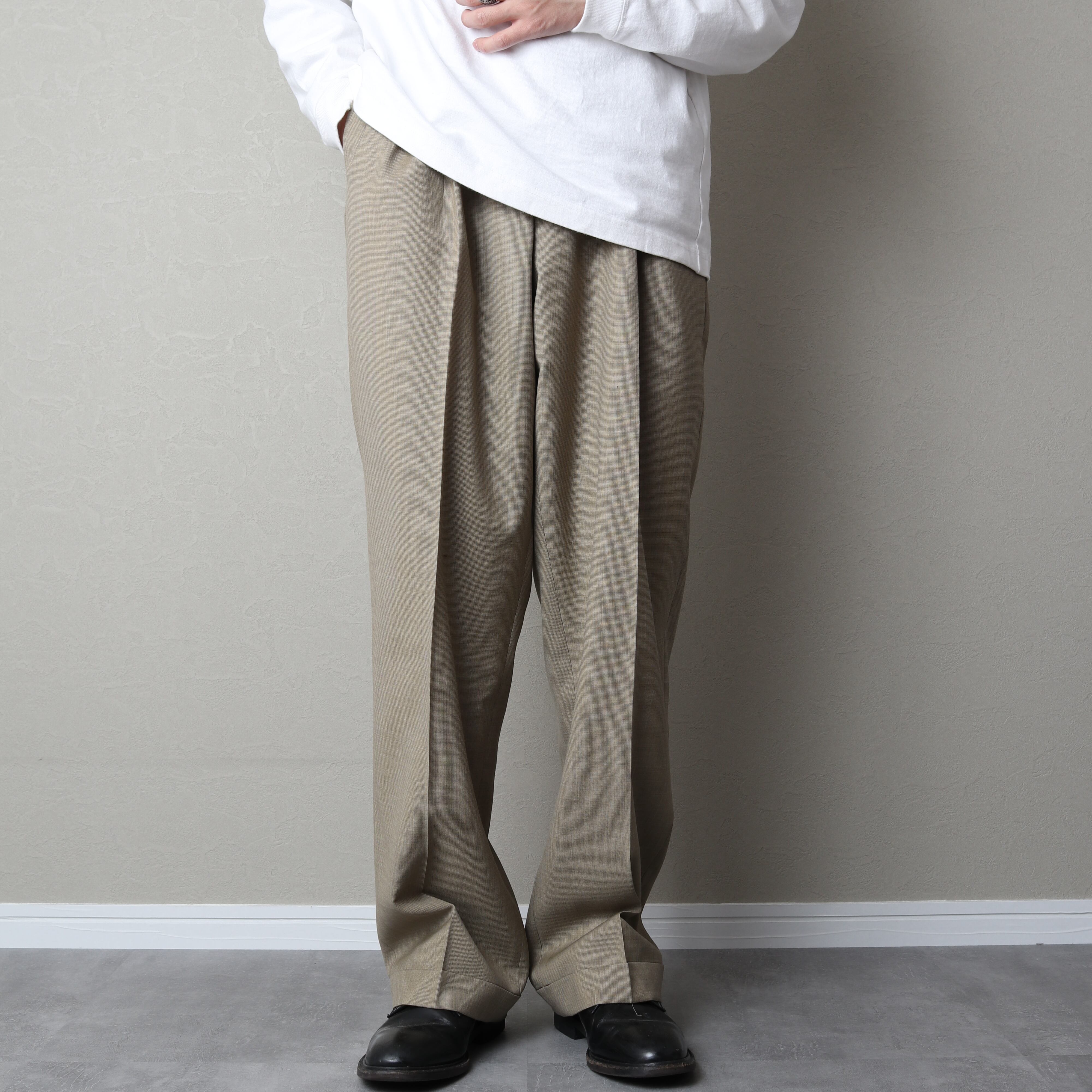 クラシックなワイドシルエットにダブル仕上げ。此方は通年穿けるウール地です。