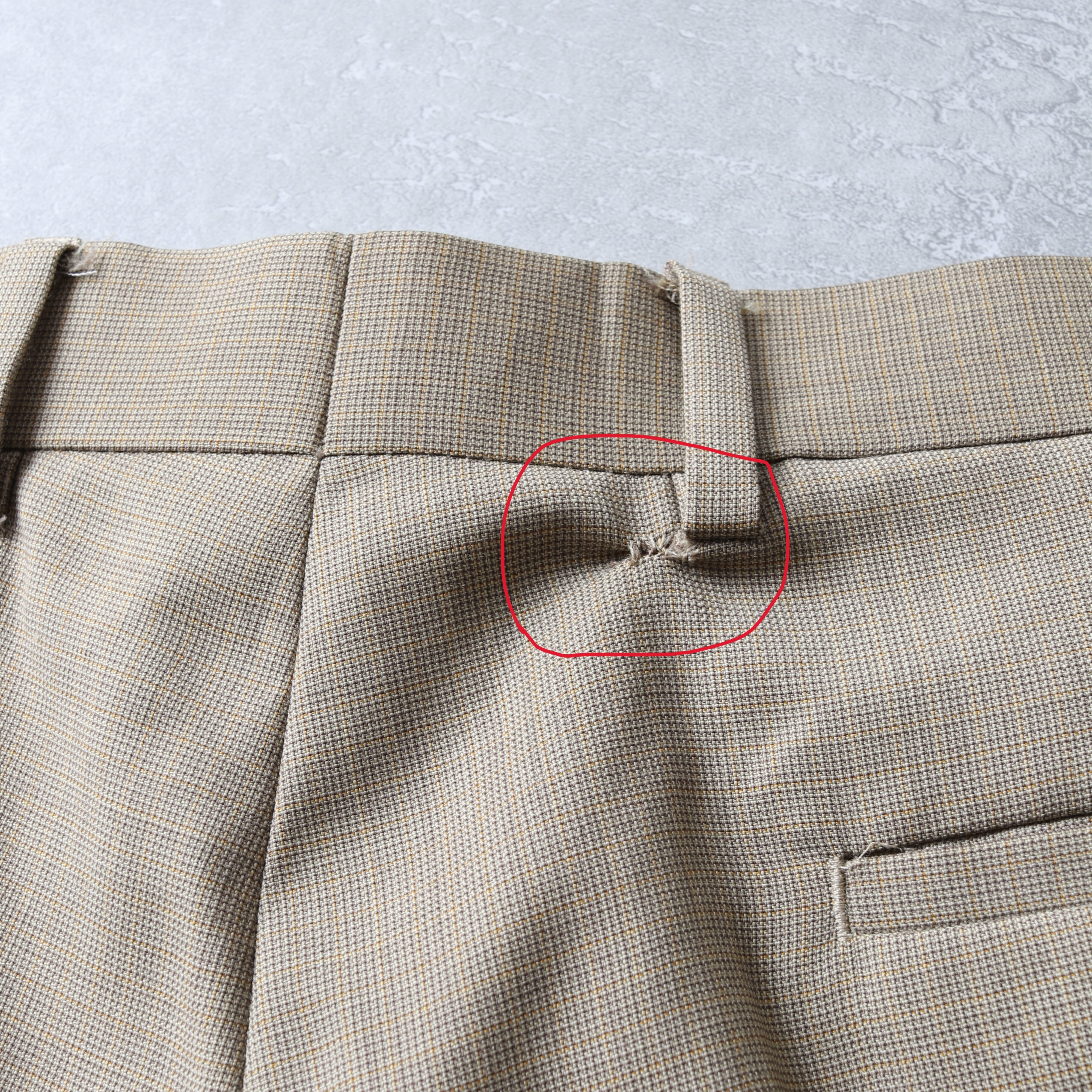 後ろのベルトループにダメージがありリペアを行っています(写真10参照)