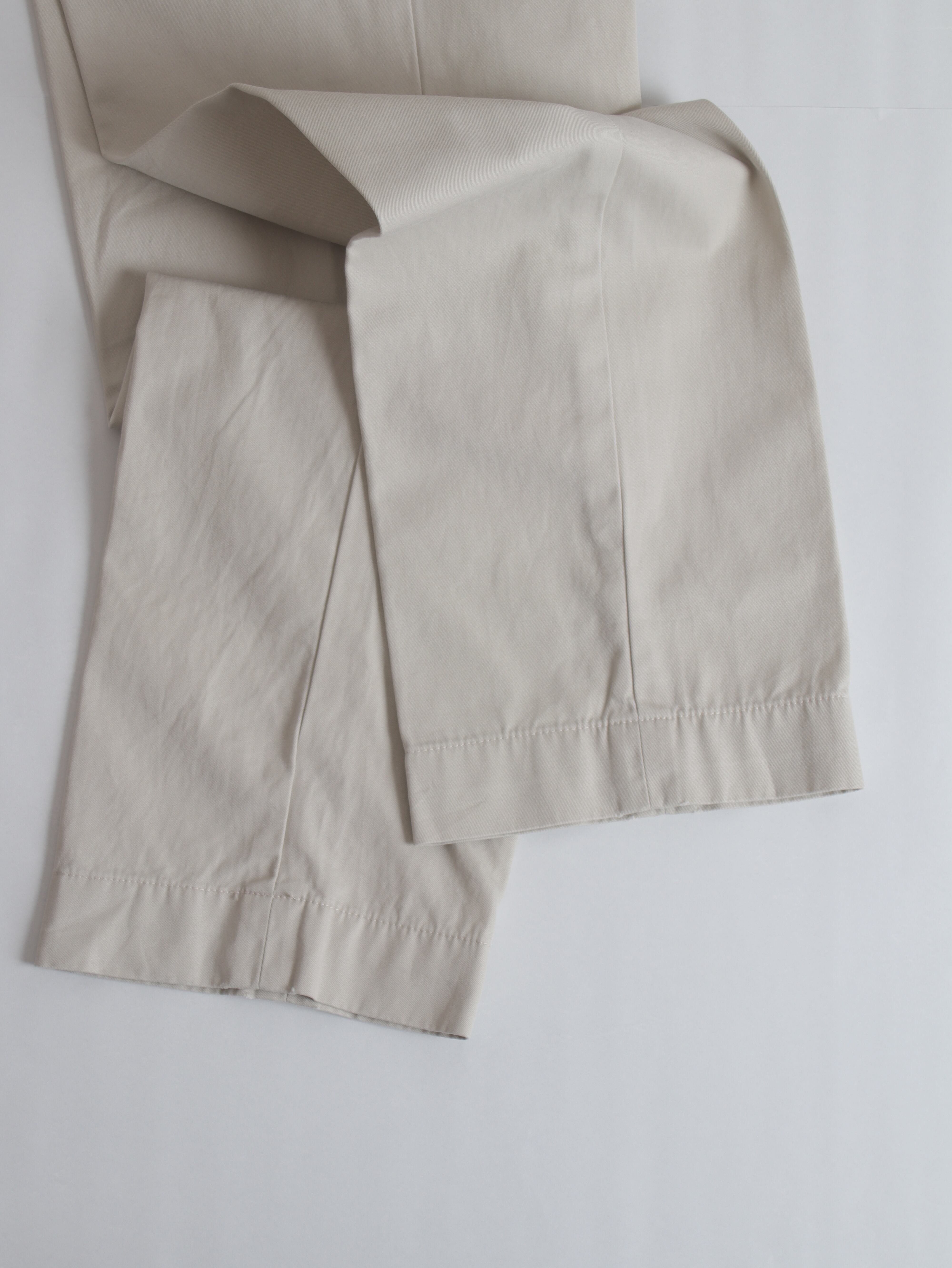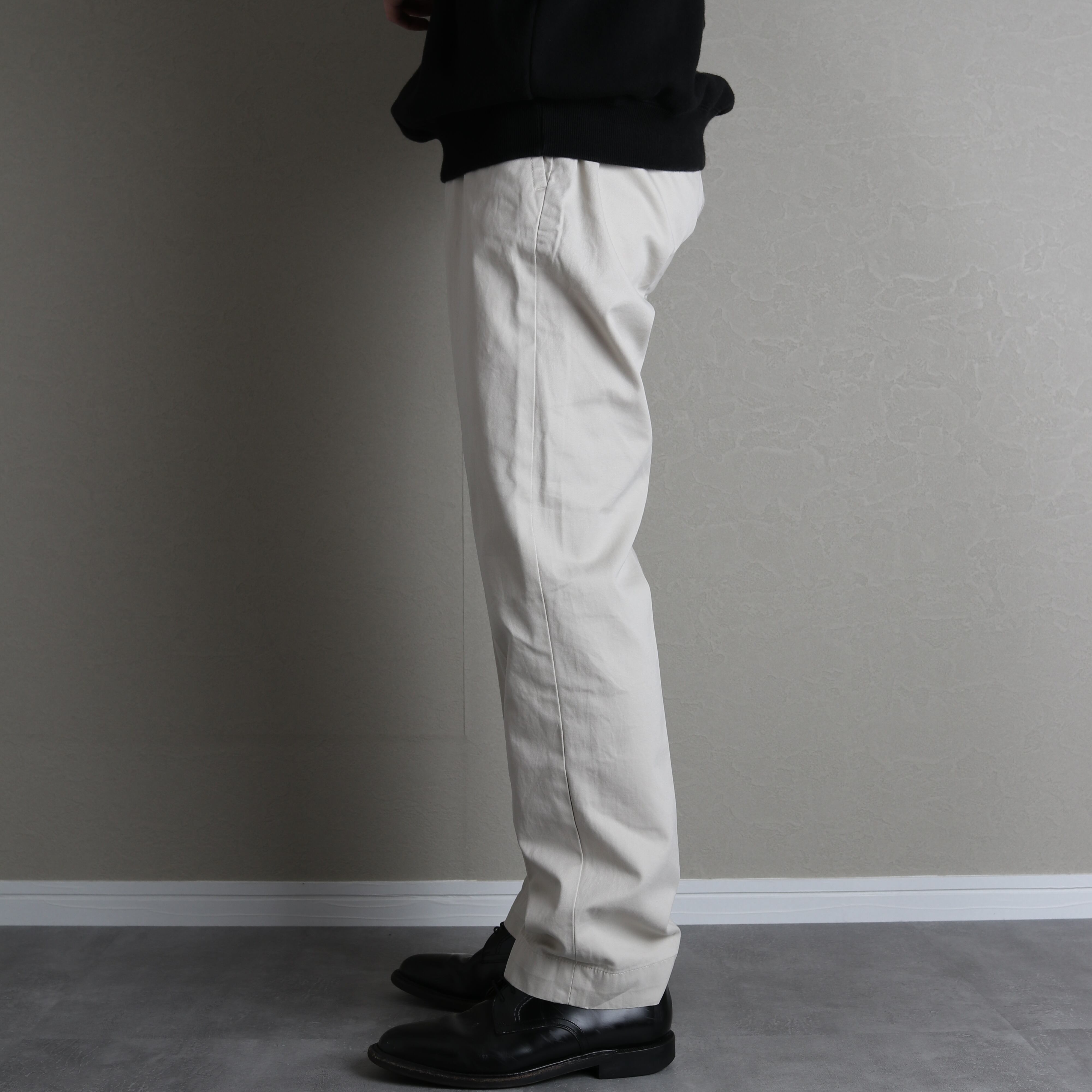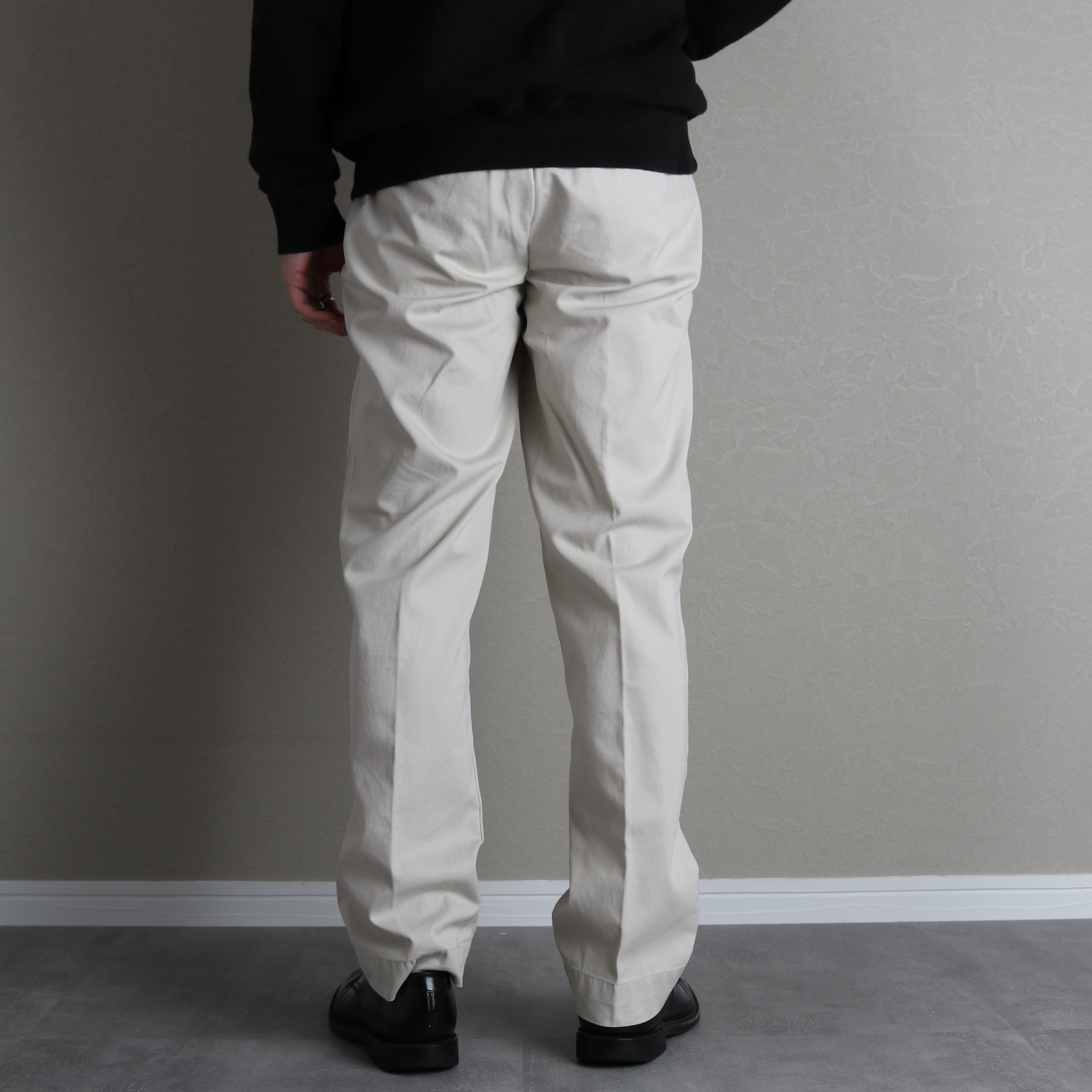 SUFFIELD FITというモデルで、プリーツが入らないやや細身のストレートシルエットです。