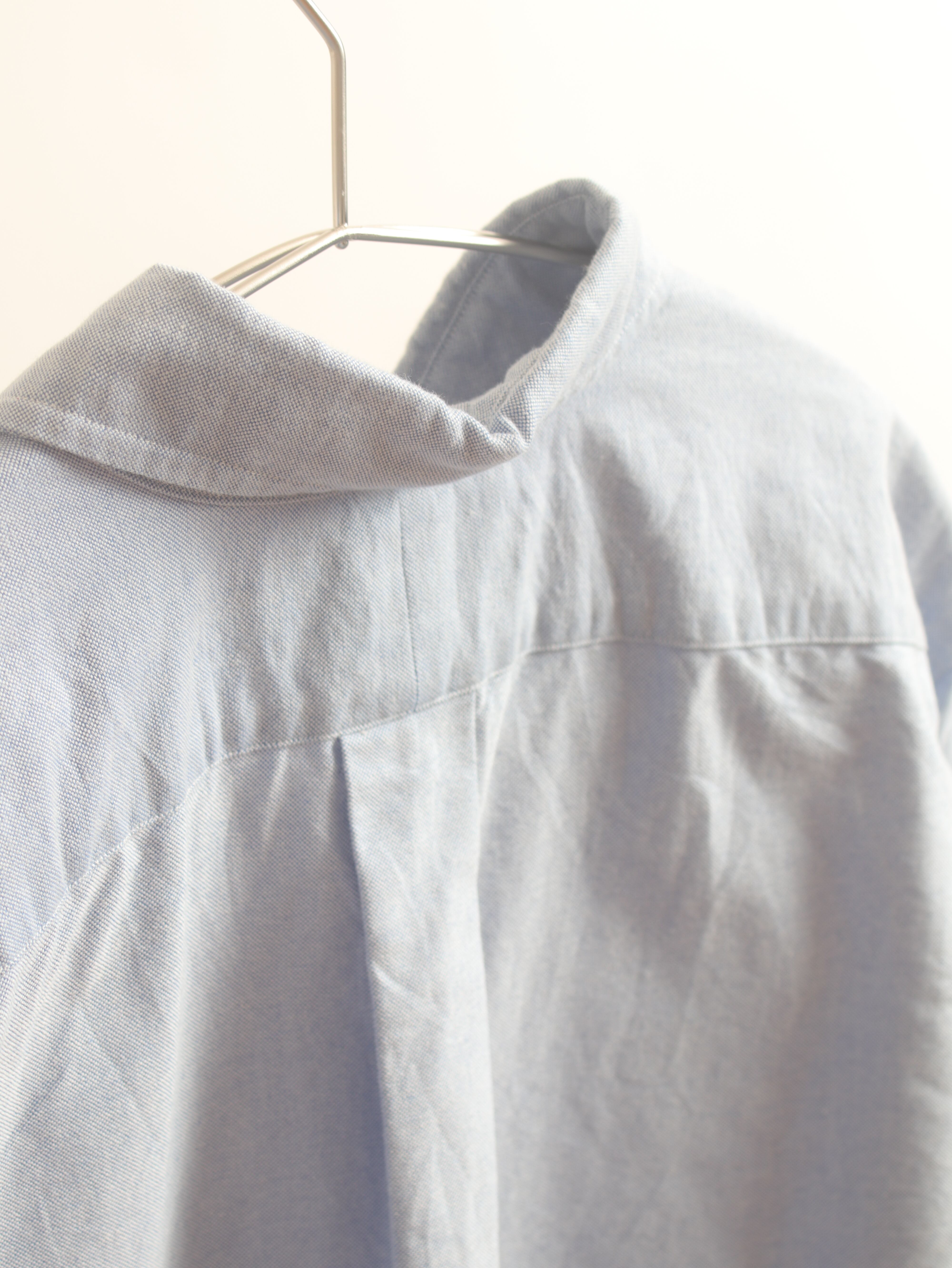 サックスブルーのオックスフォード地に同系色のポニー。