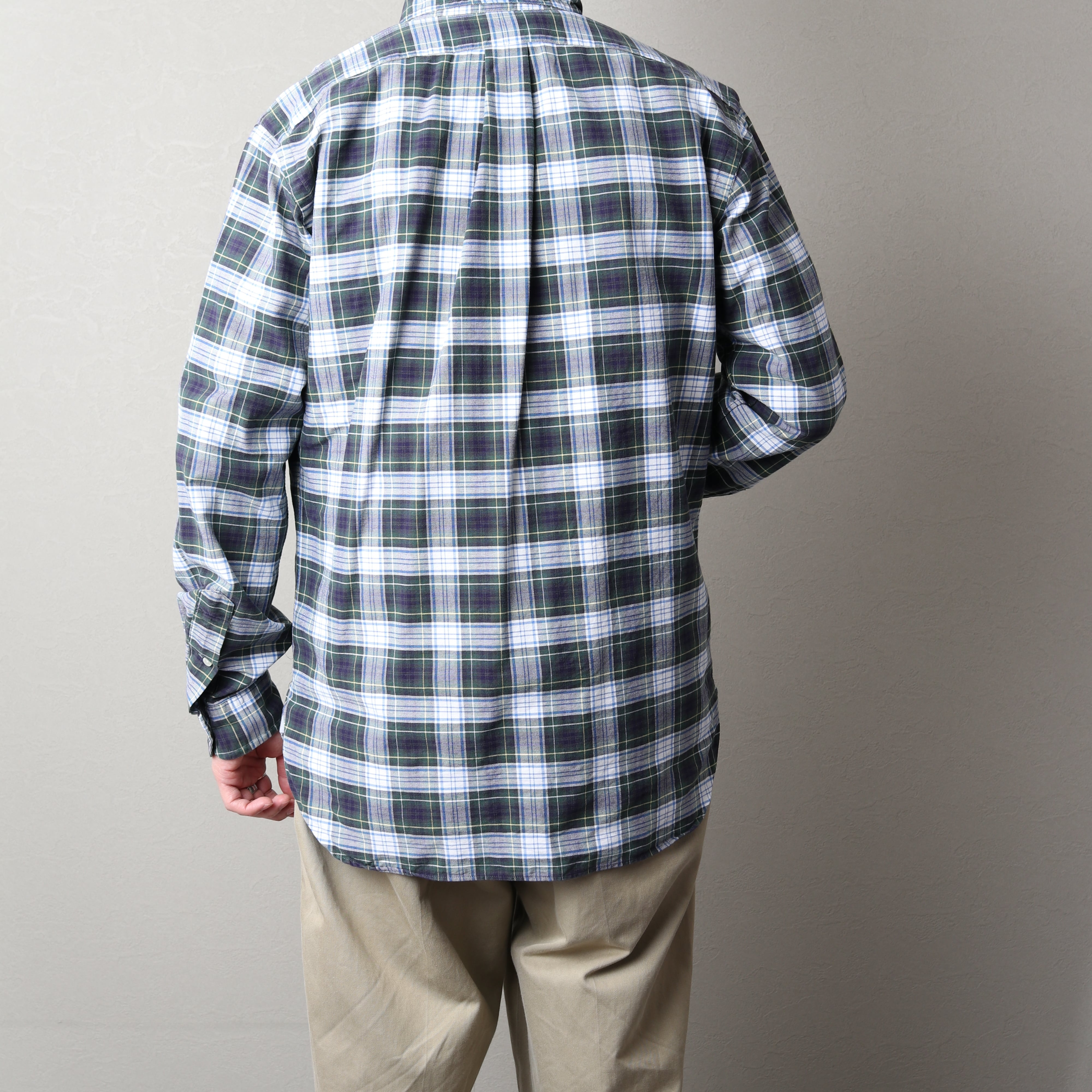 グリーンベースのグッドチェック◎胸ポケに同色の控えめなポニーが良い塩梅です。