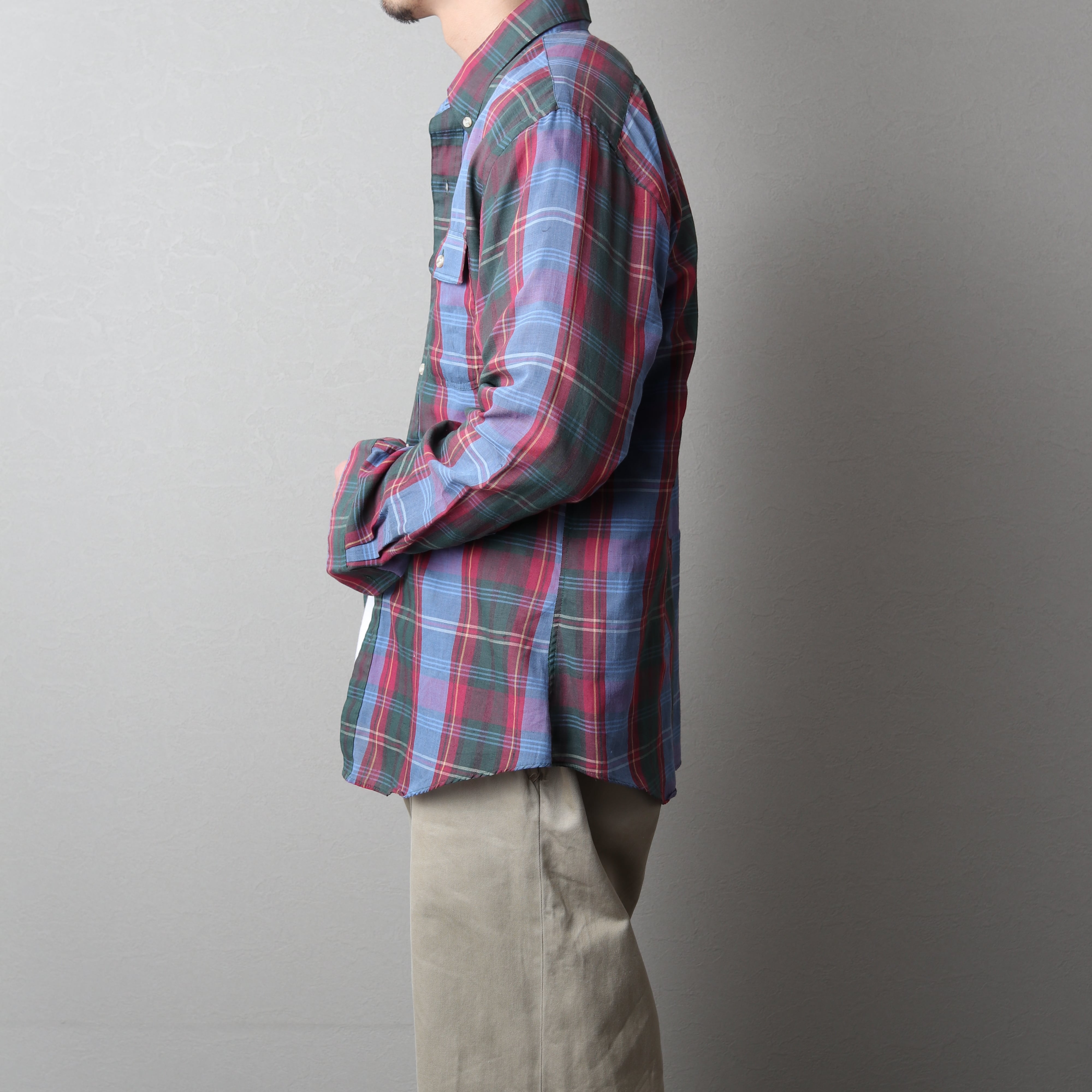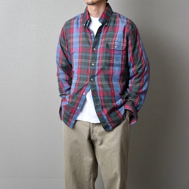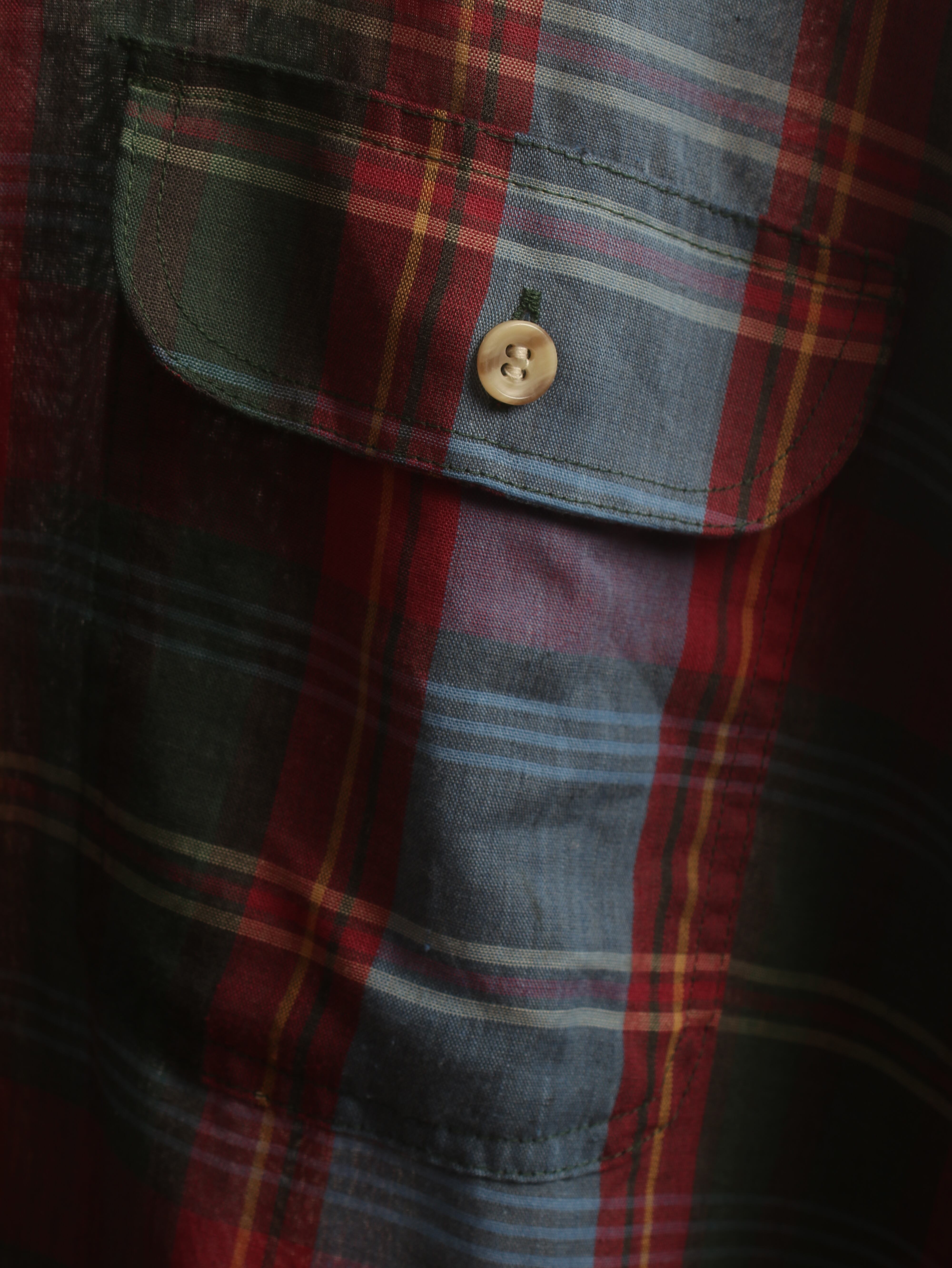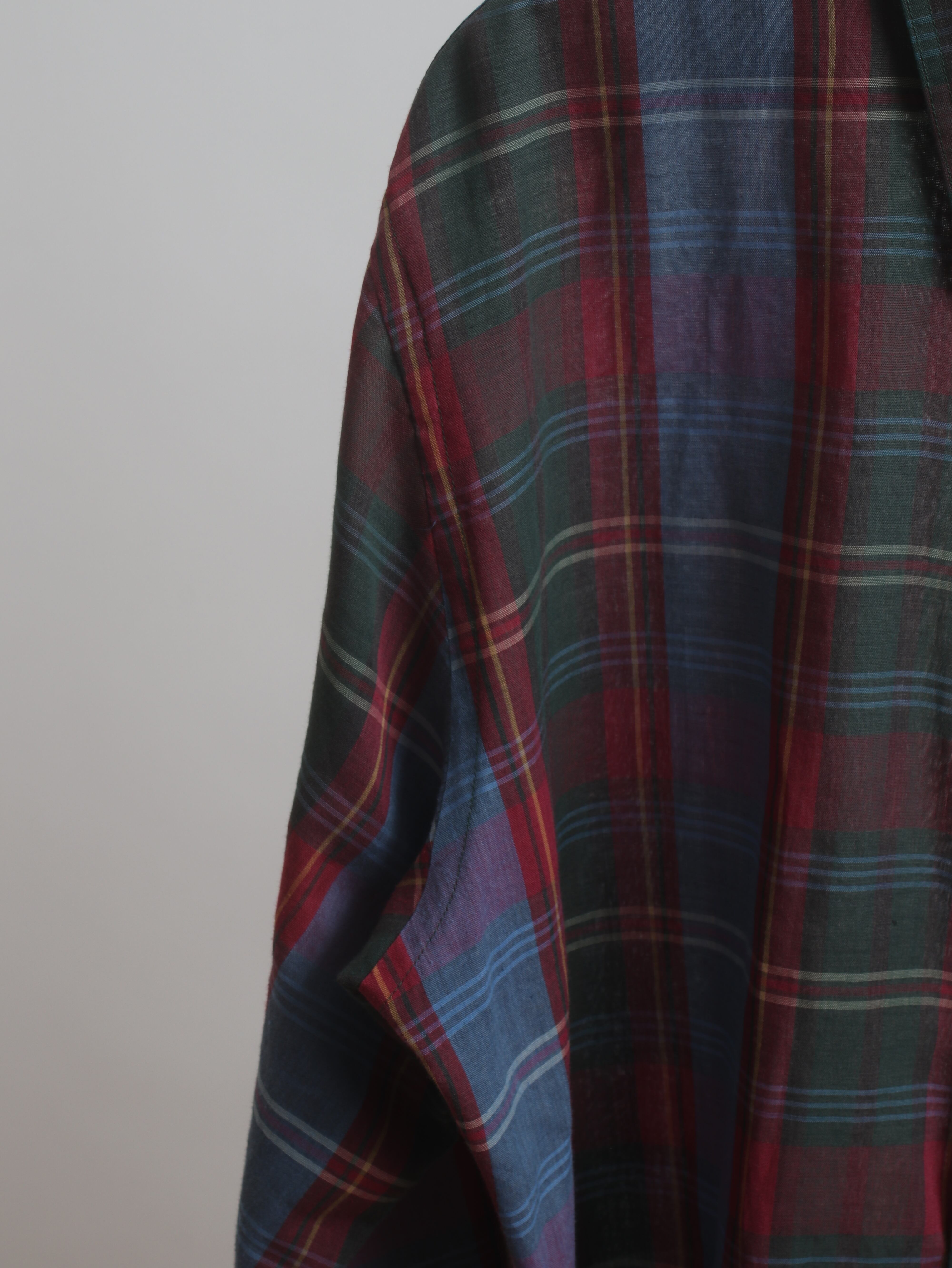 コットンポリのエイジングした表情と暗い赤・緑・青のチェックが堪りません。