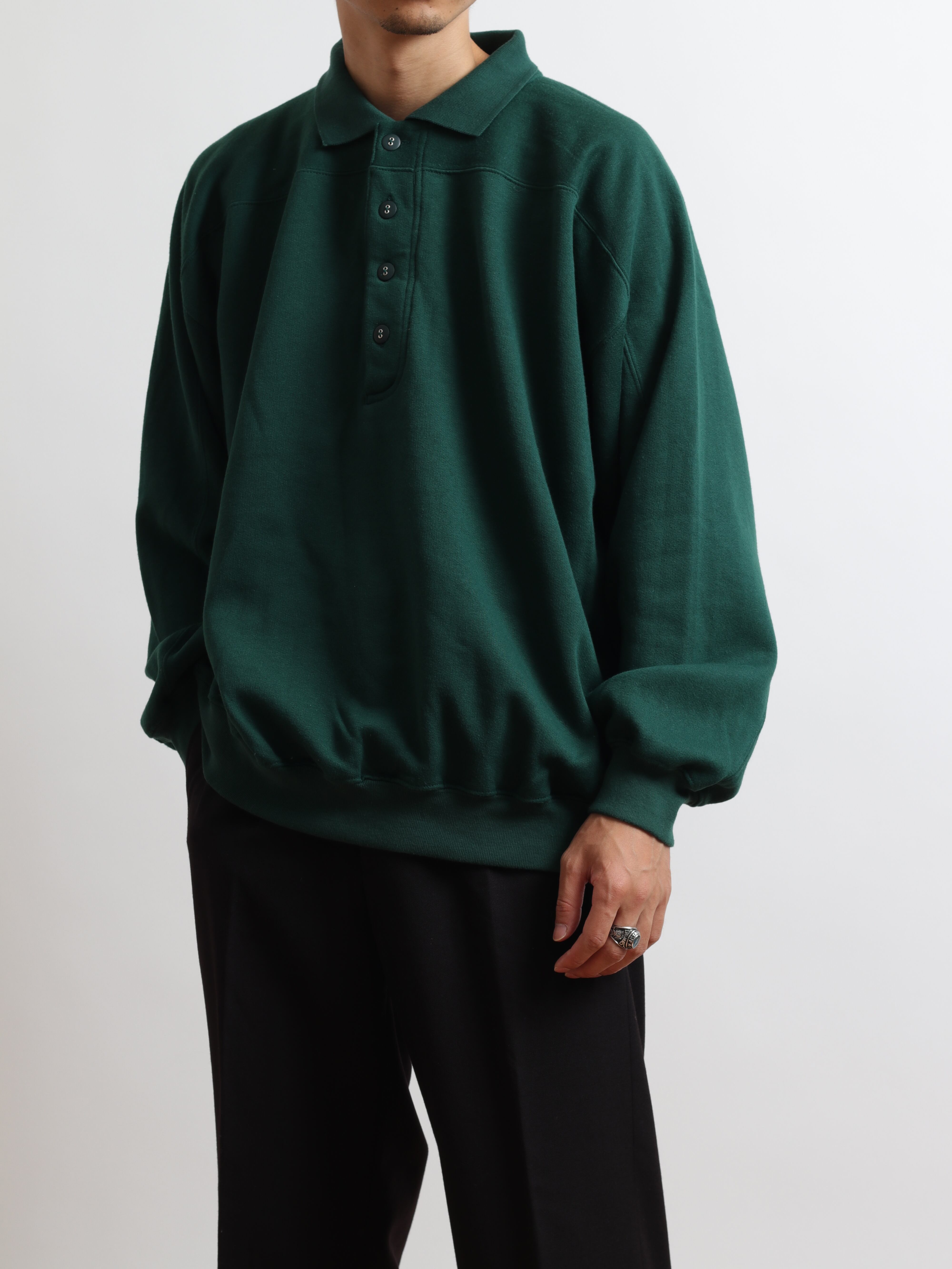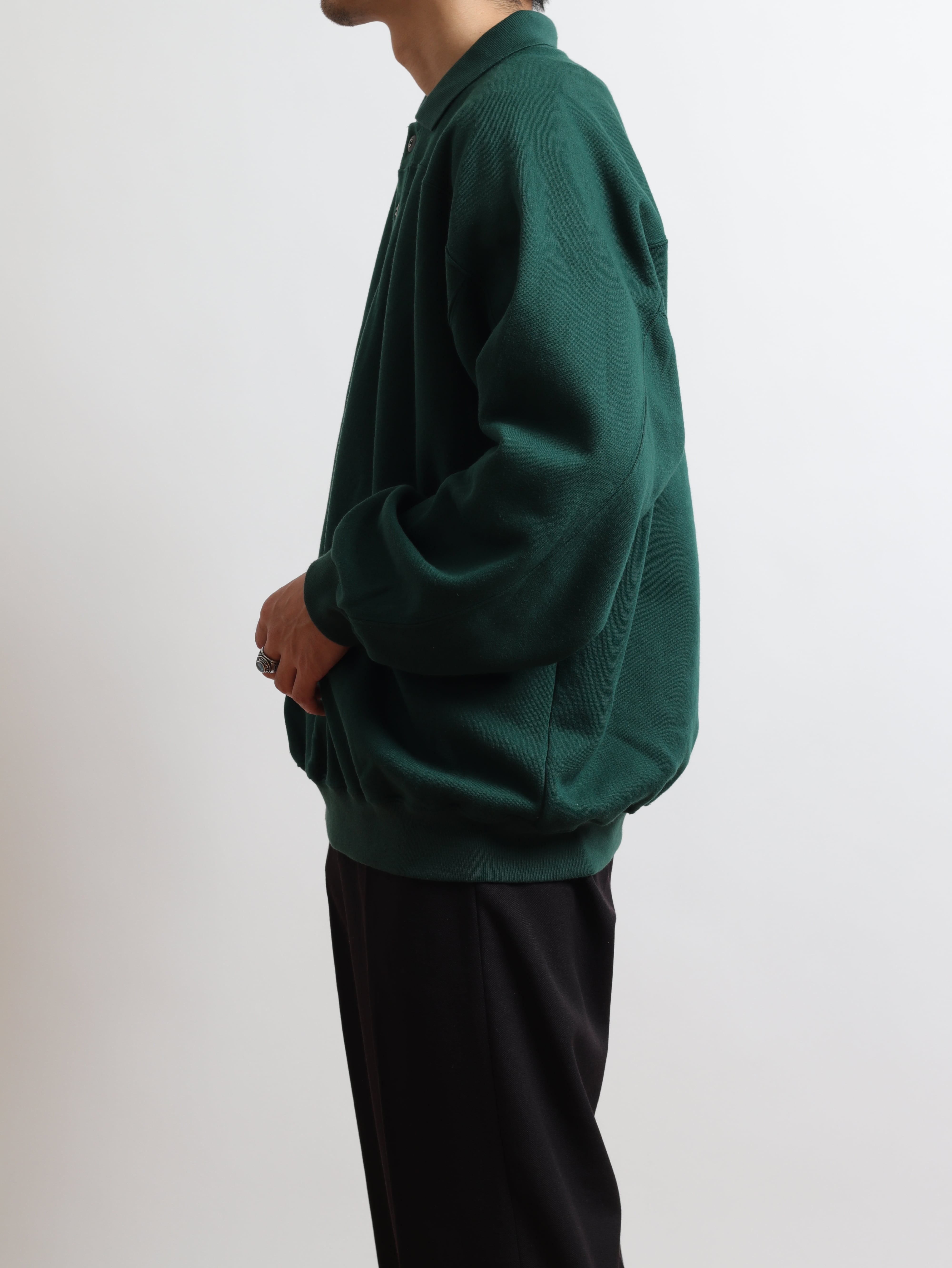 クラシックな印象のポロシャツ型スウェット。