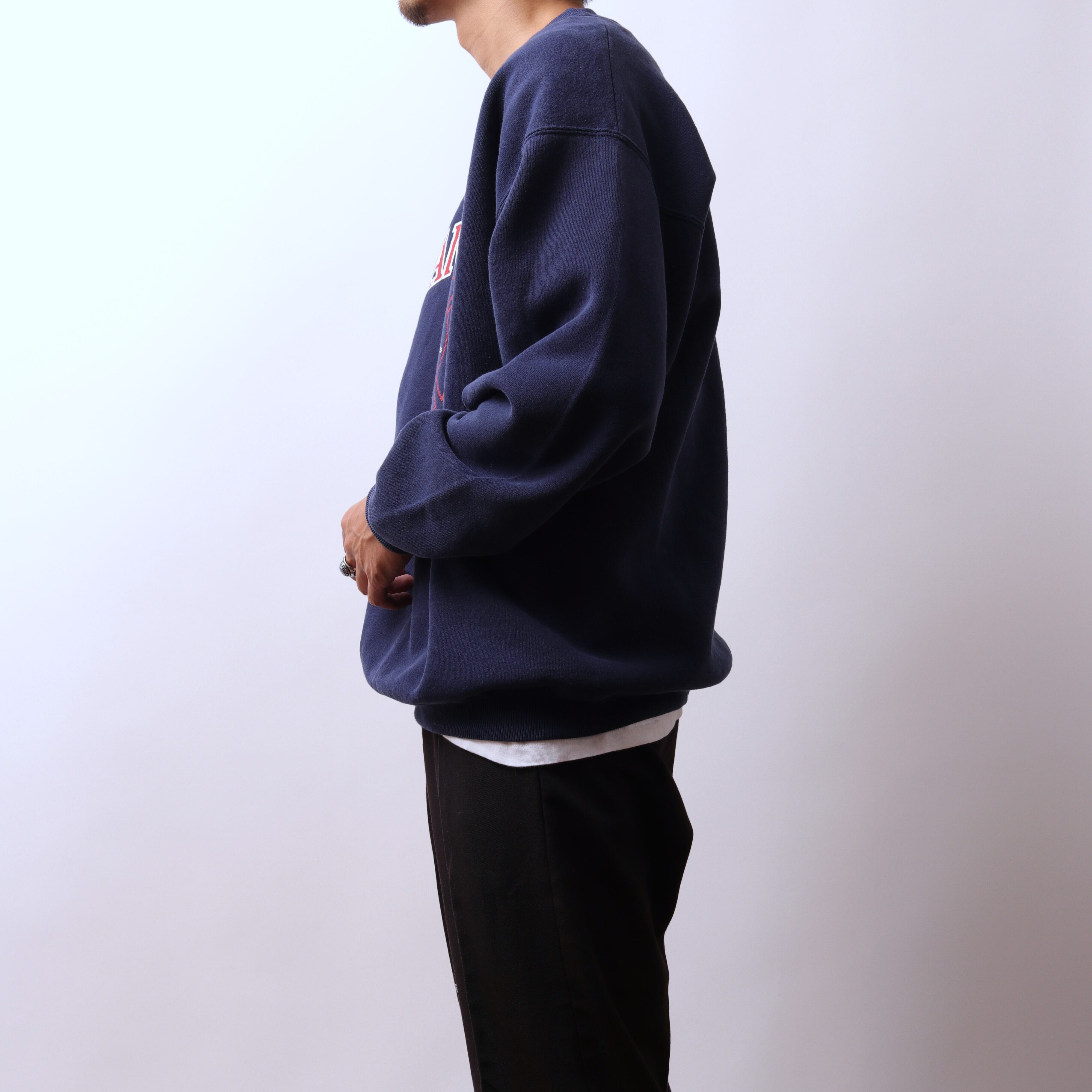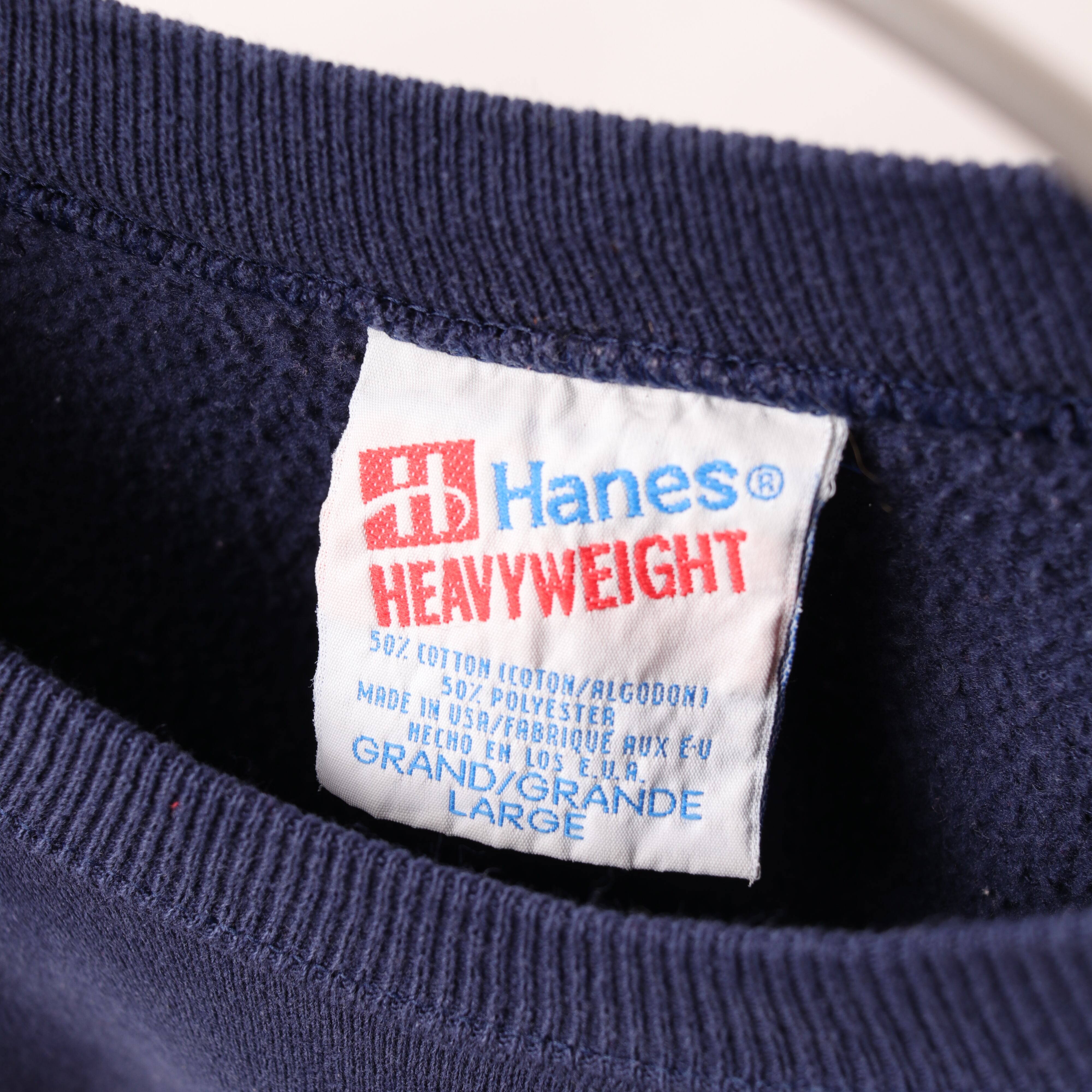 アメリカ製Hanesボディ。ネイビーにホワイト、レッドのプリントバランスがとても良い。