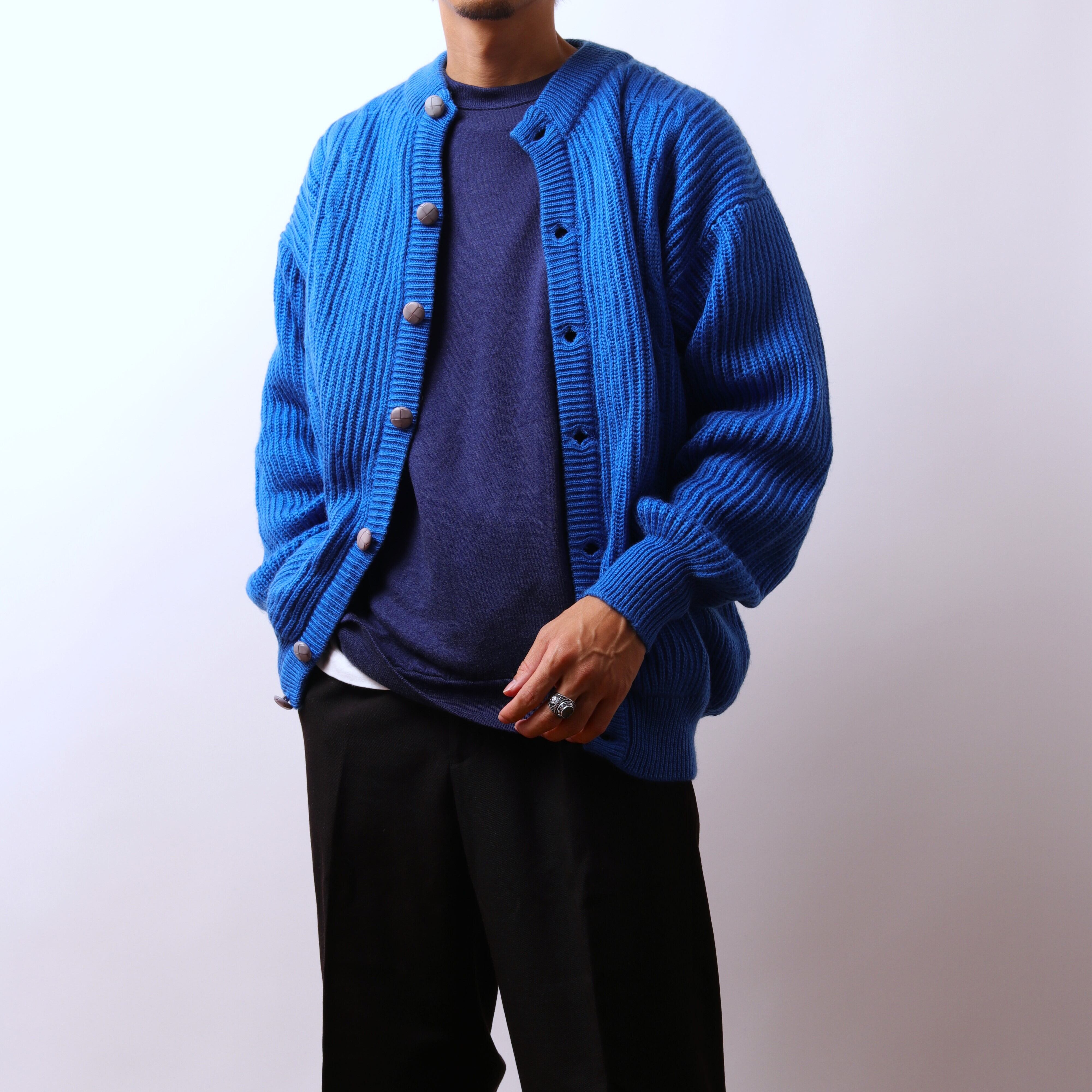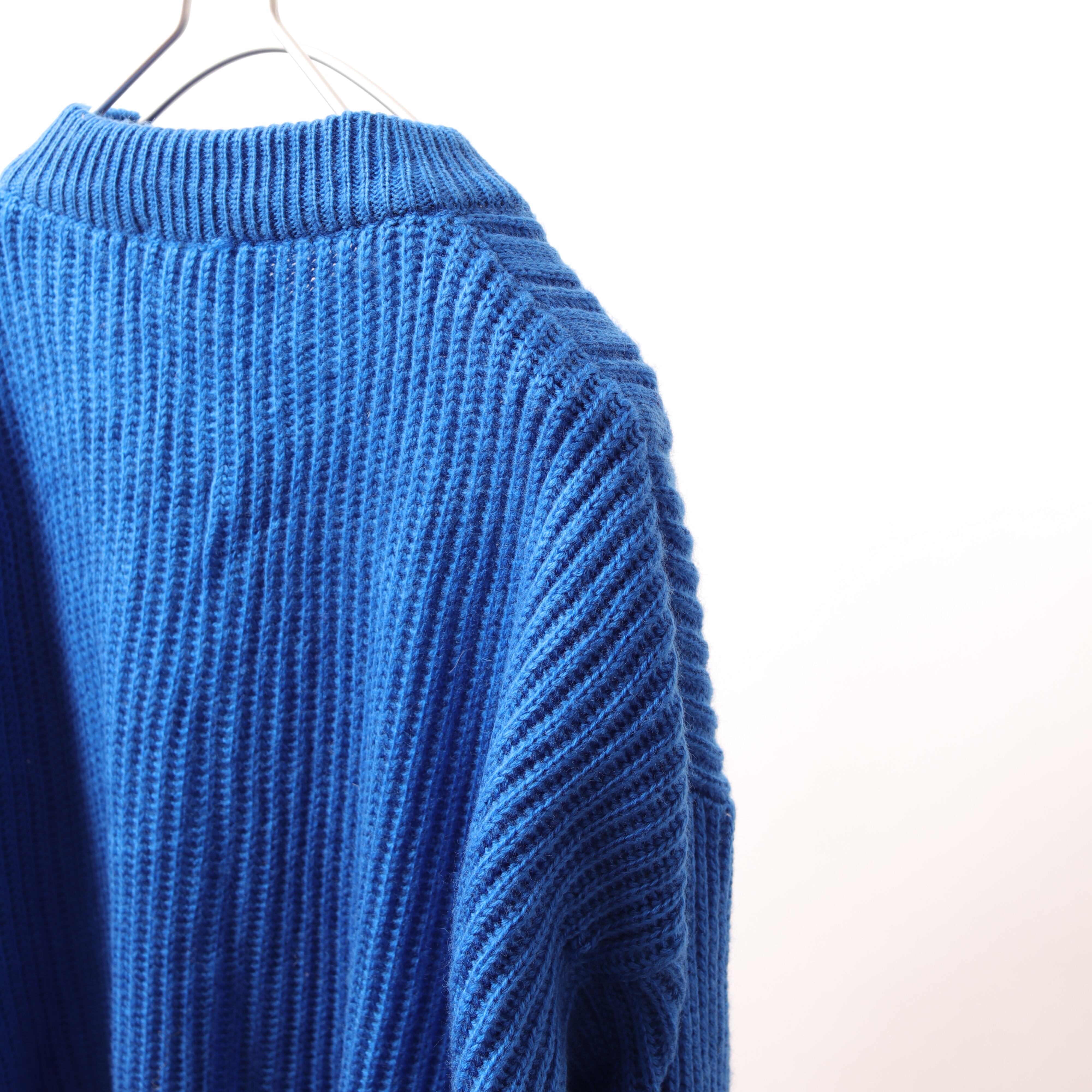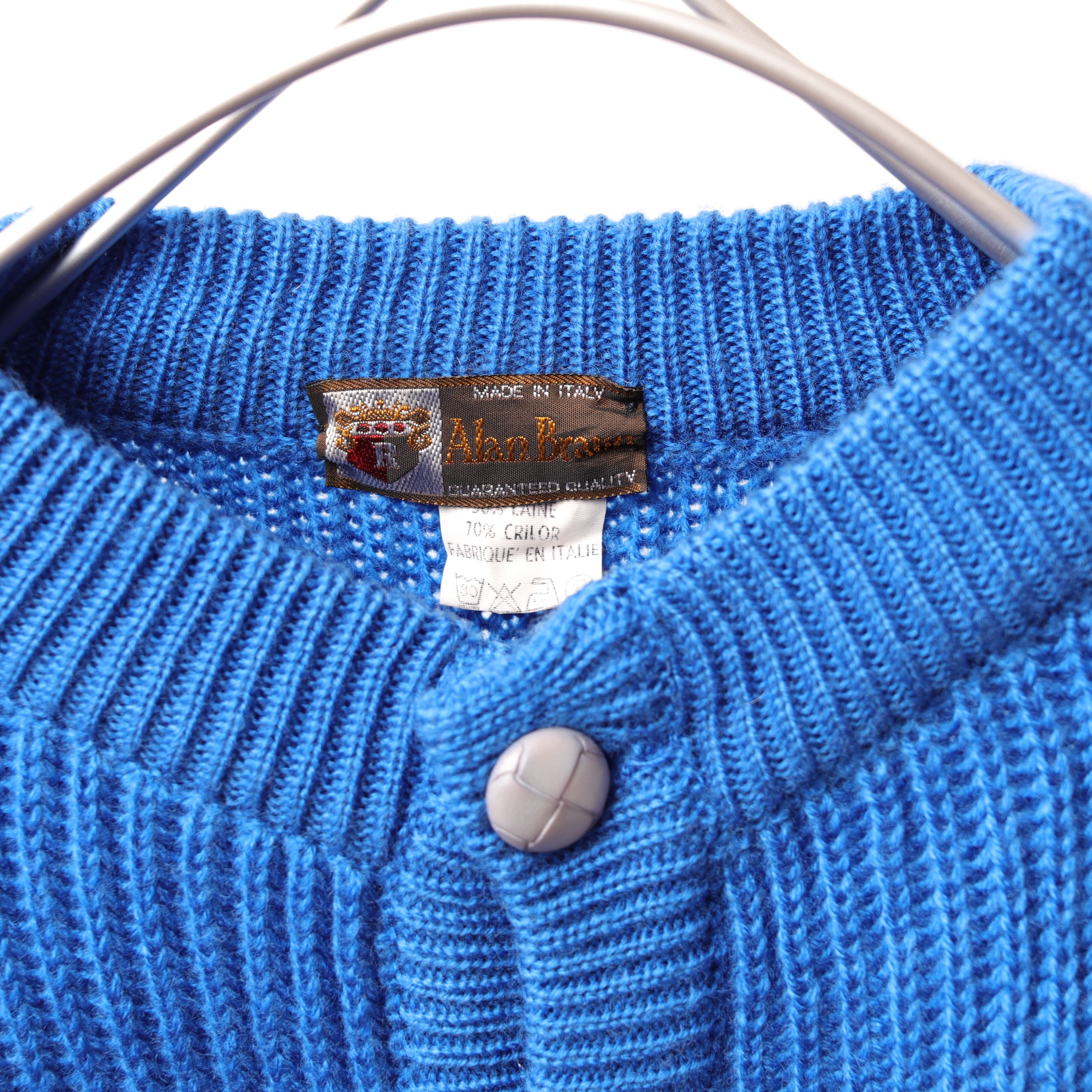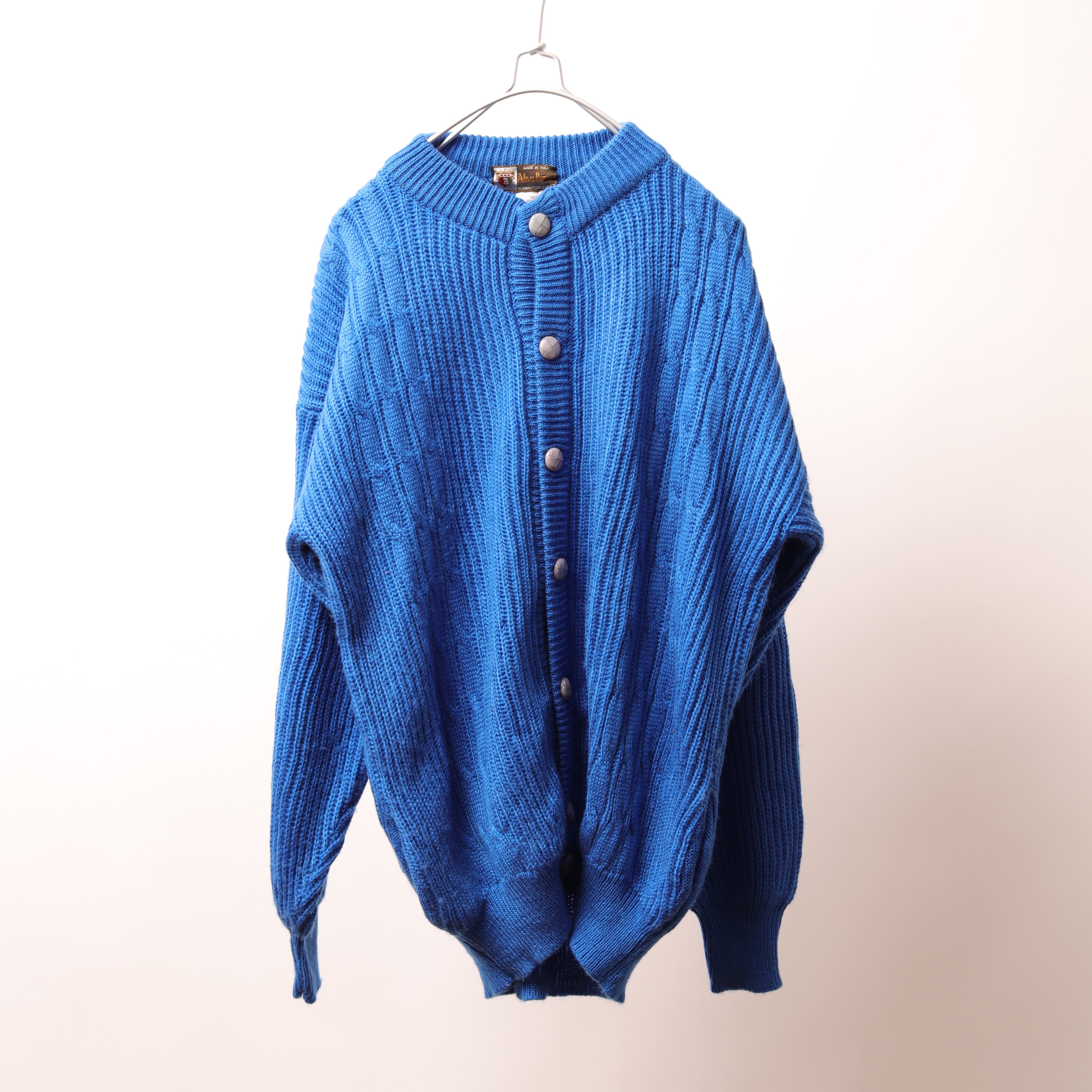 イタリアより鮮やかなブルーのアランニットです。