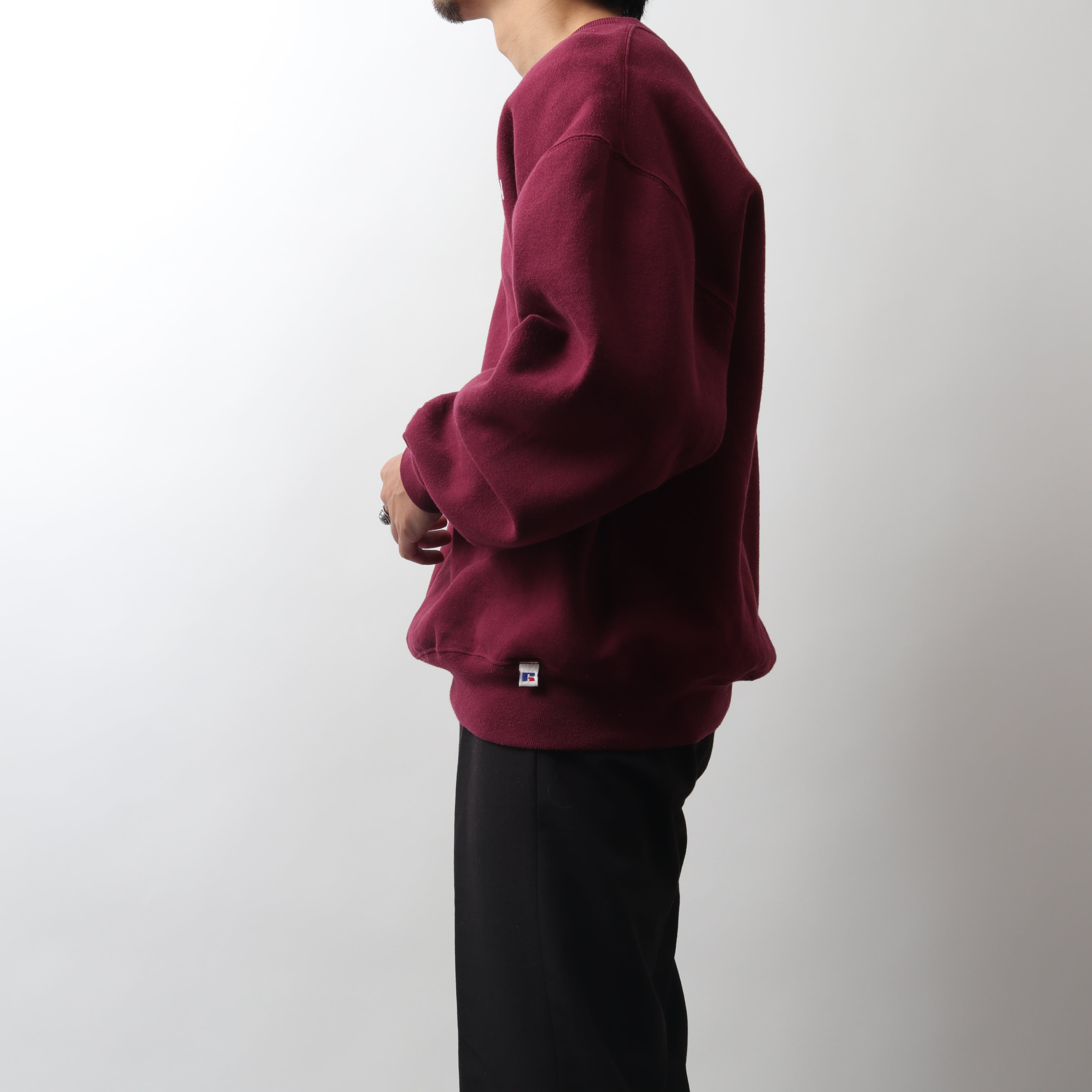 Vガゼットや裾のピスネームなどのディティールもラッセルスウェットの特徴です。