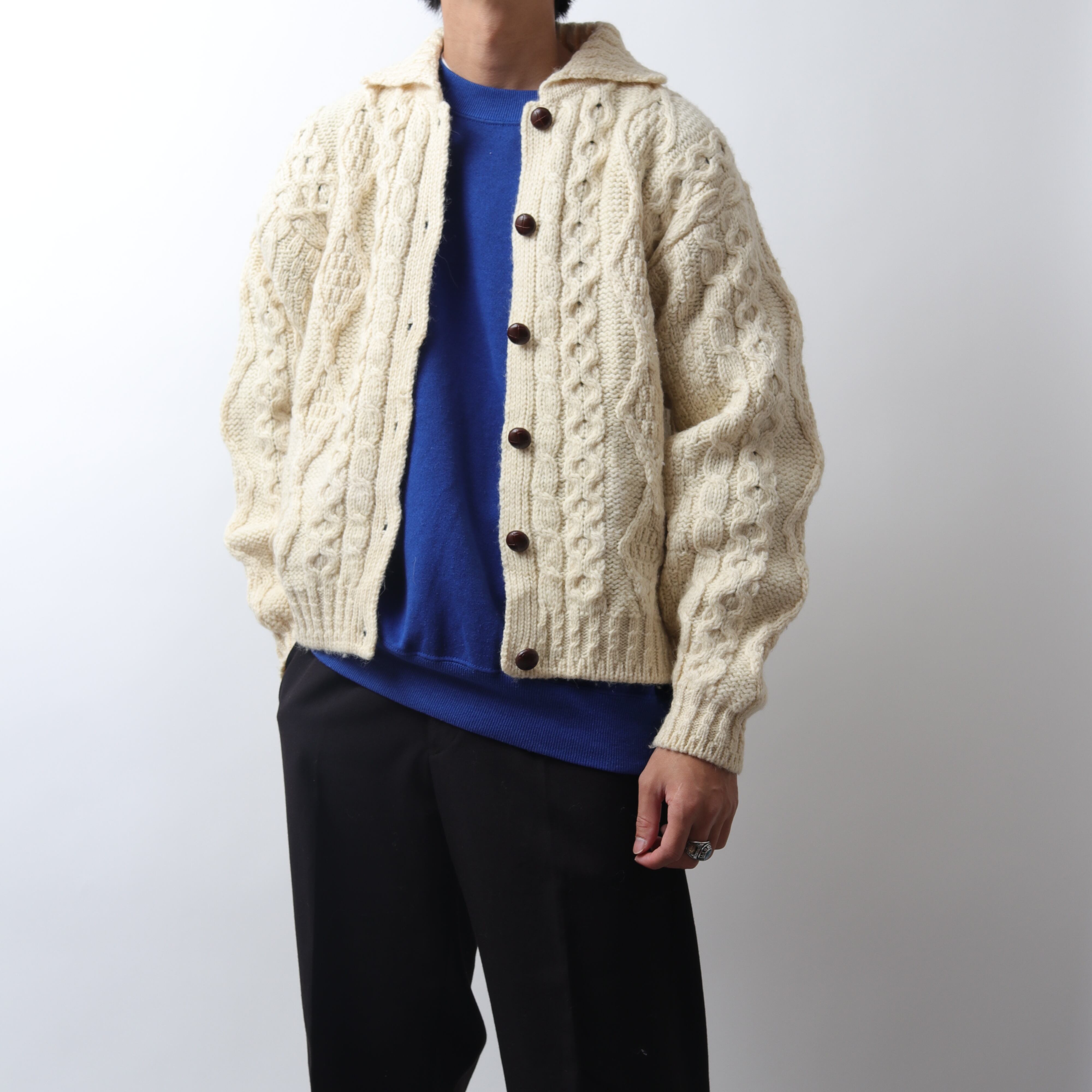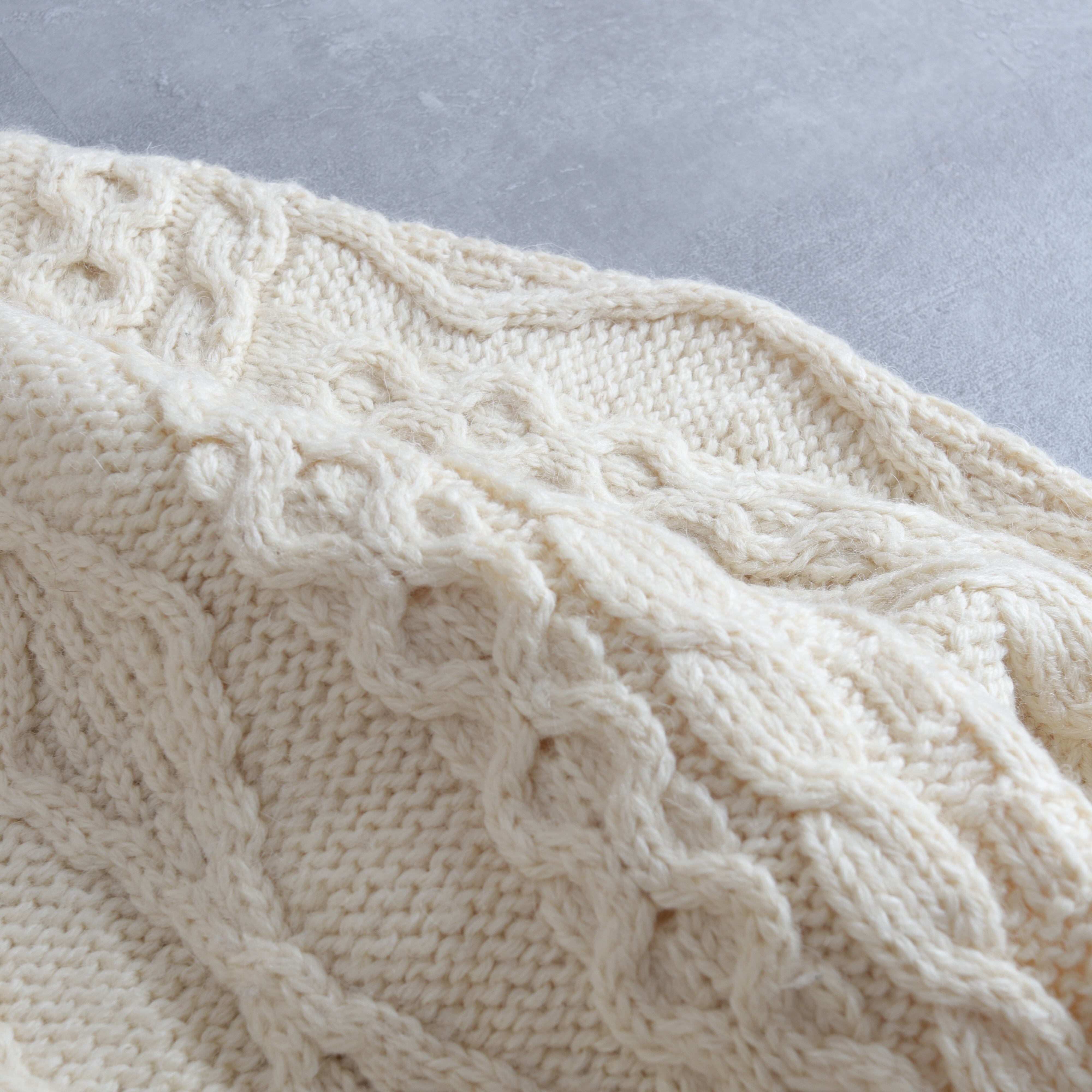 アランニット(フィッシャーマンニット)発祥の地と言われているアイルランド製のもの。