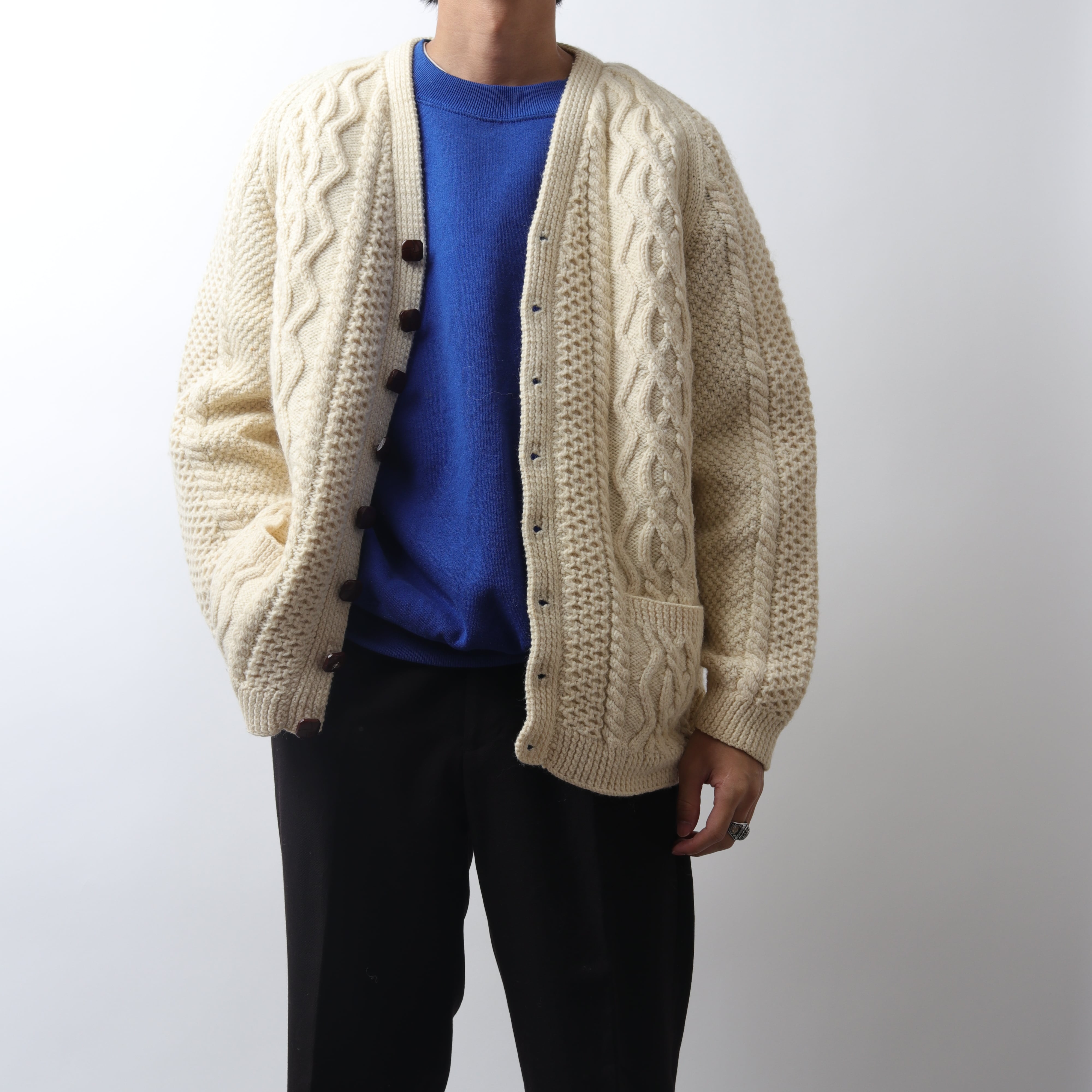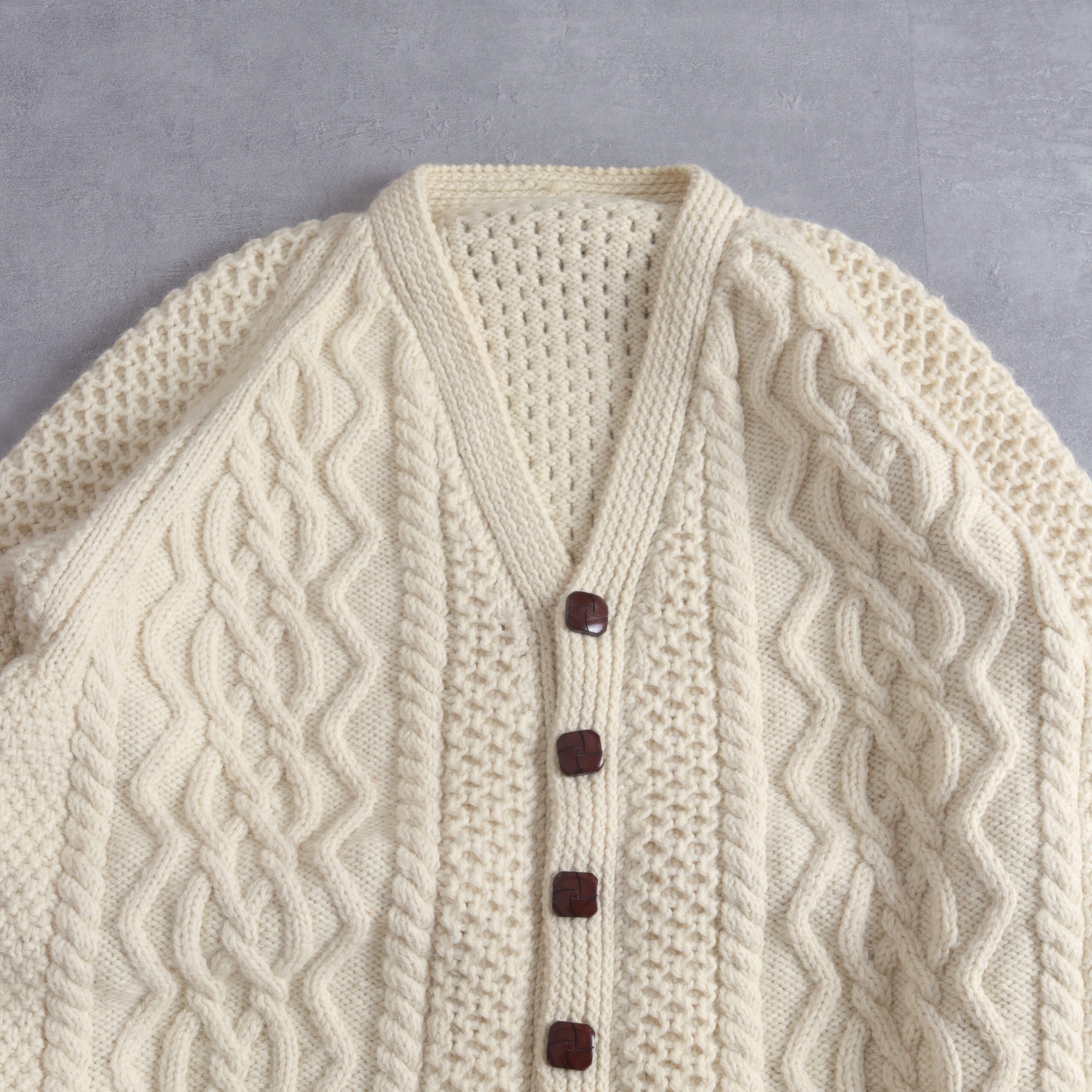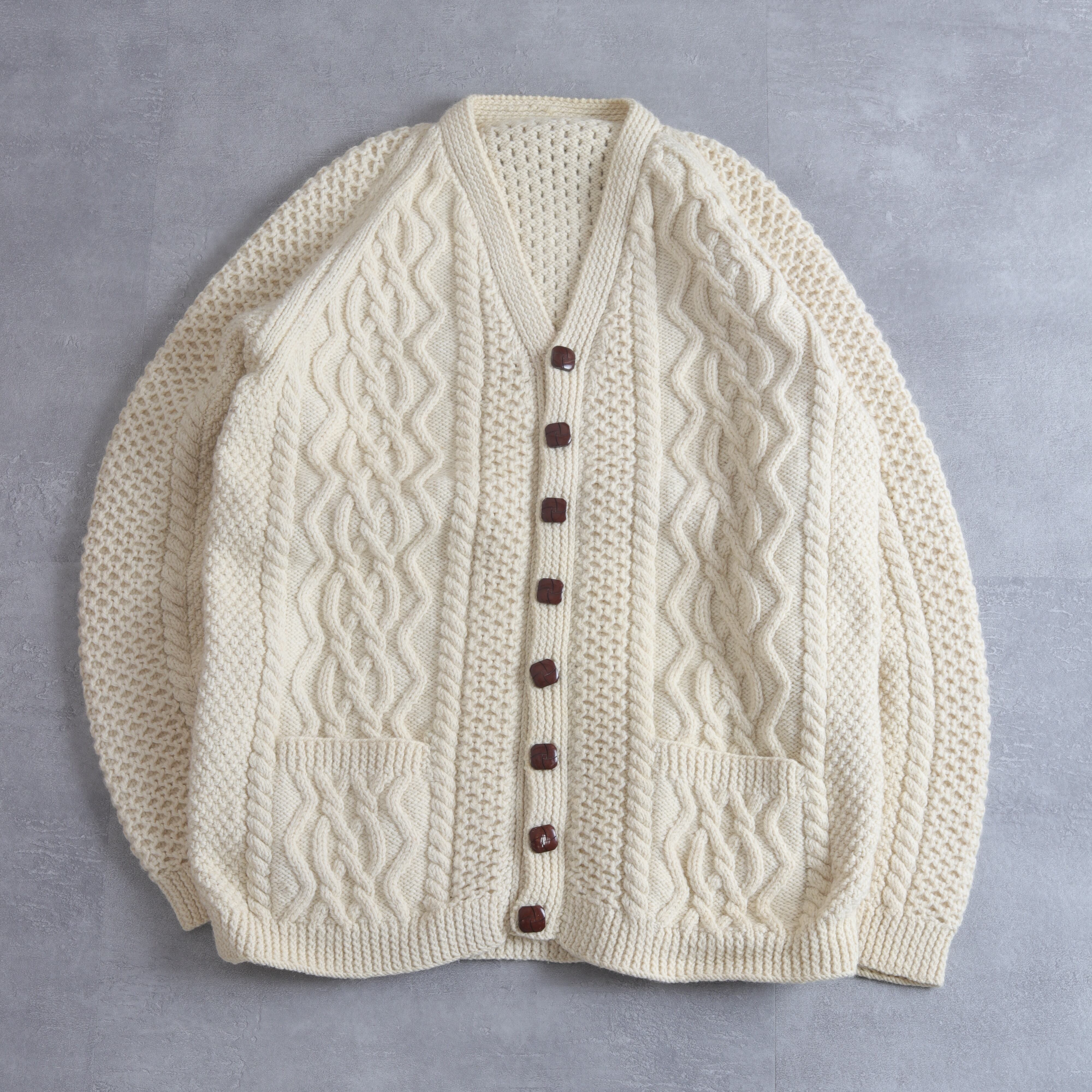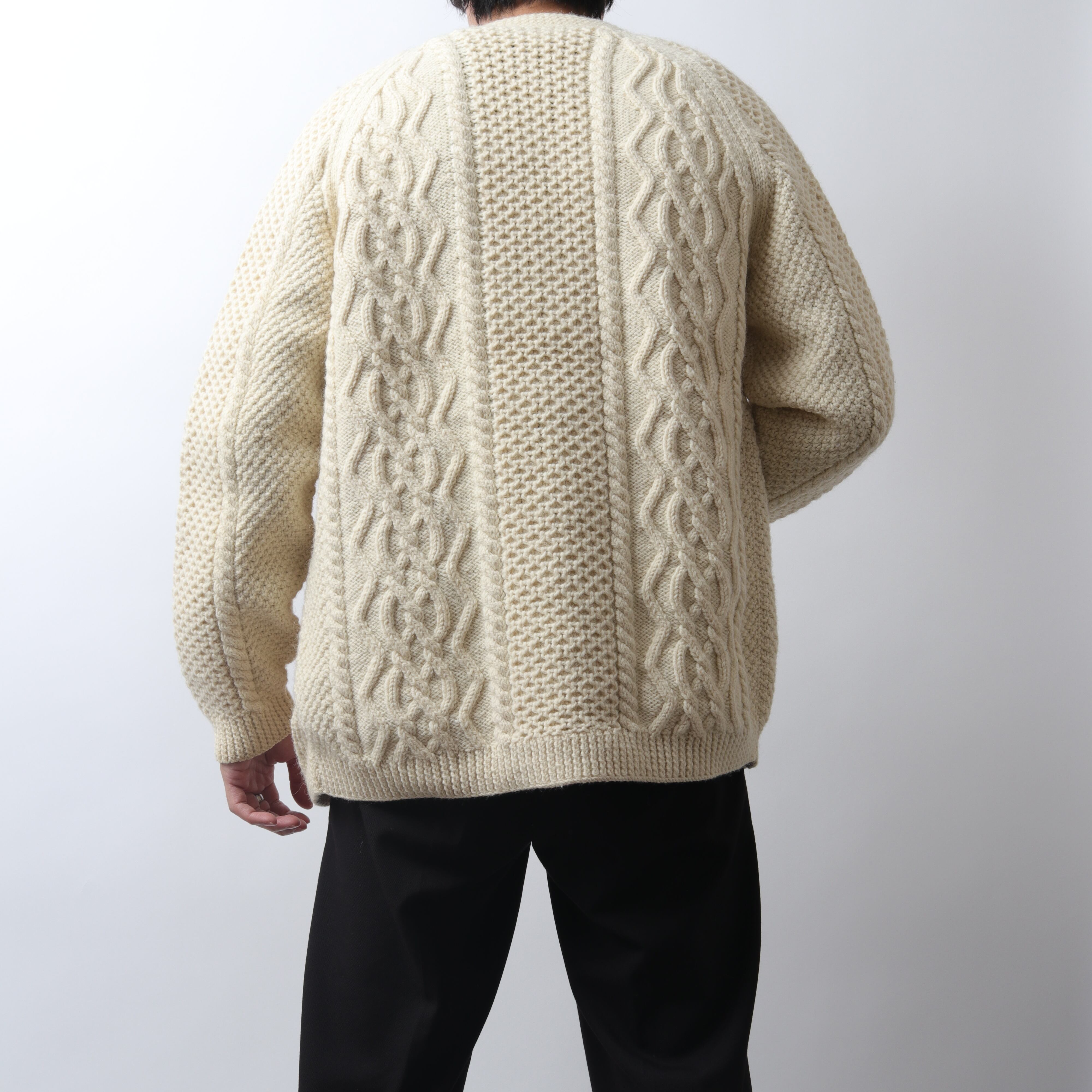 EUROからアランニットのVネックカーディガンです。