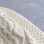ガッシリした肉厚ケーブル編み着丈がややあり、