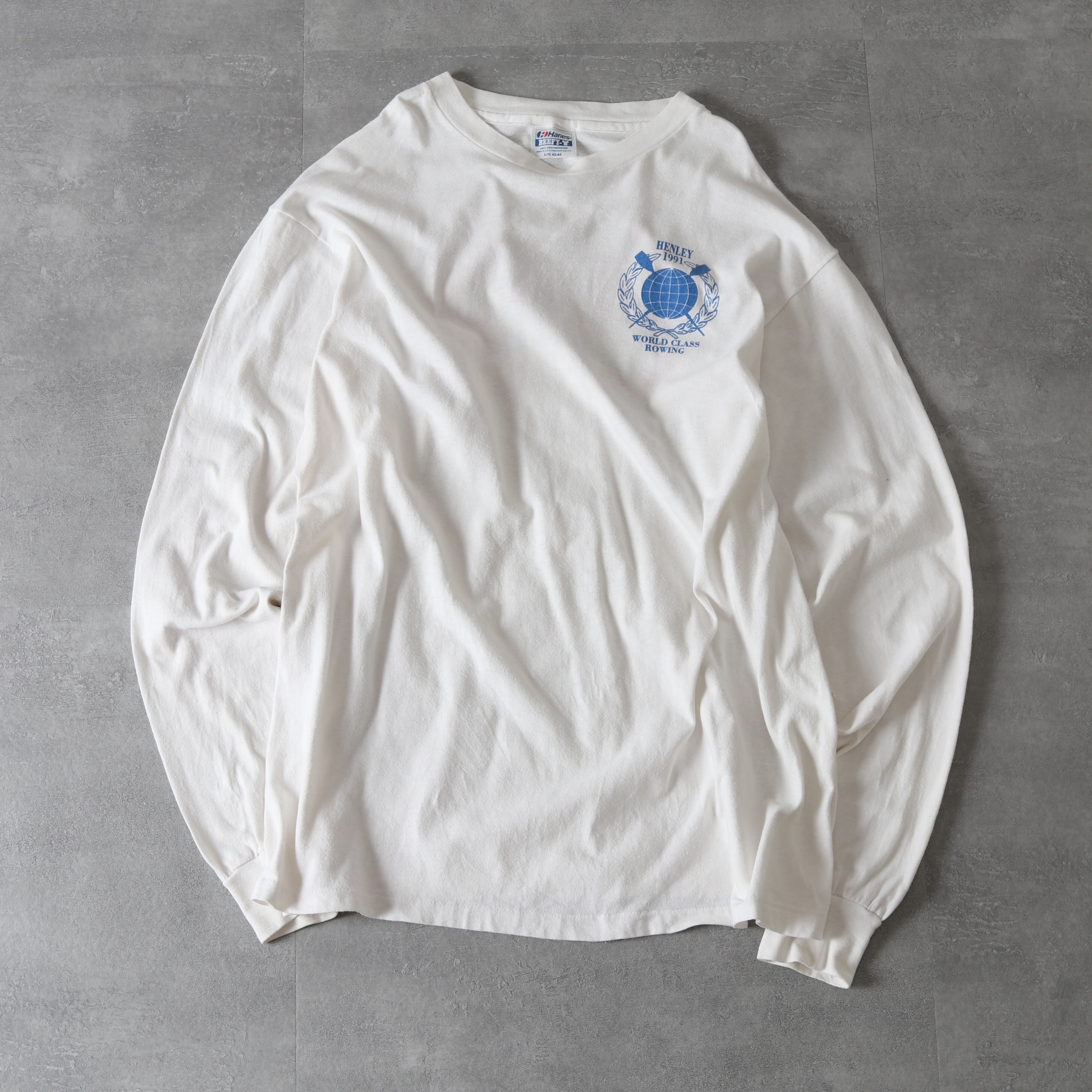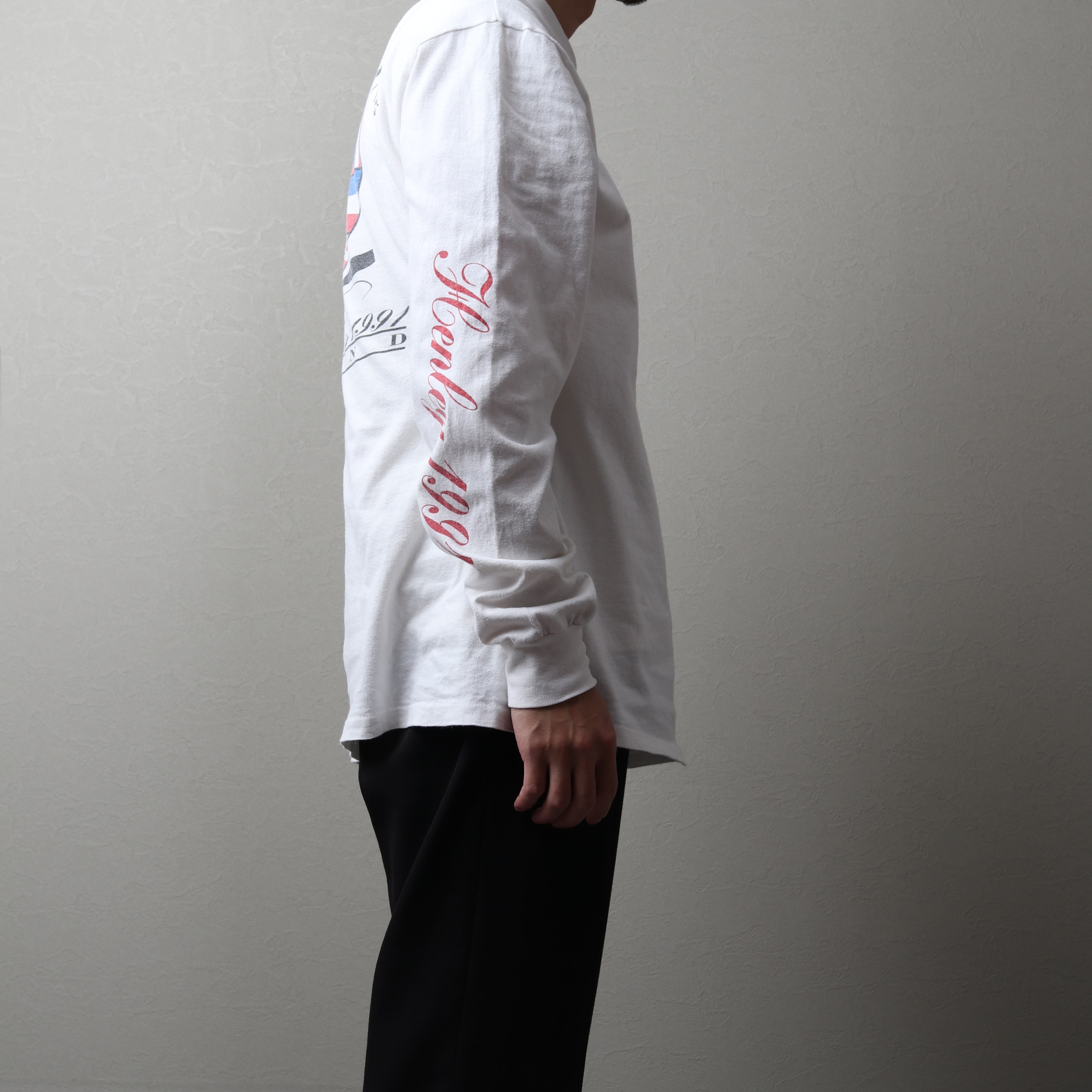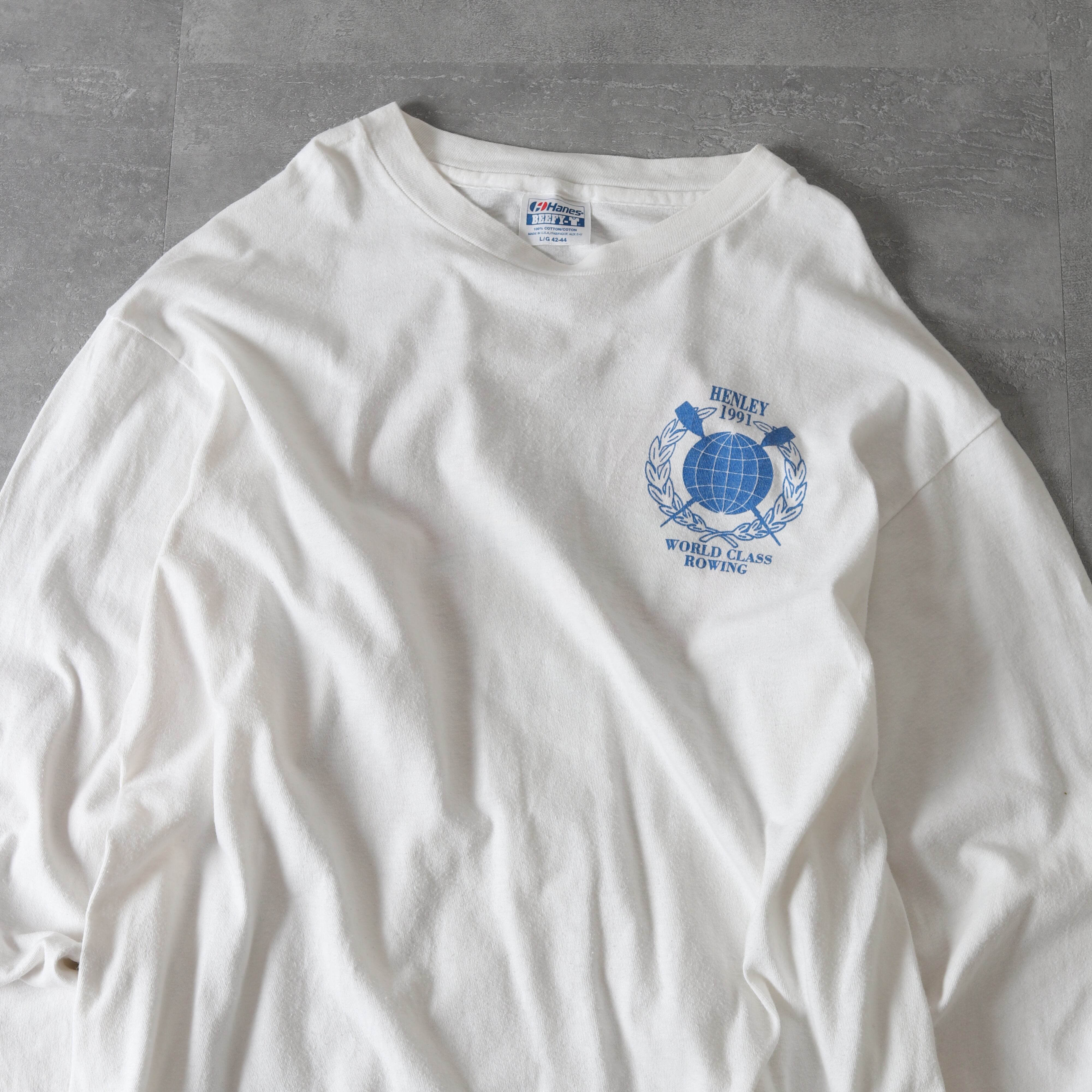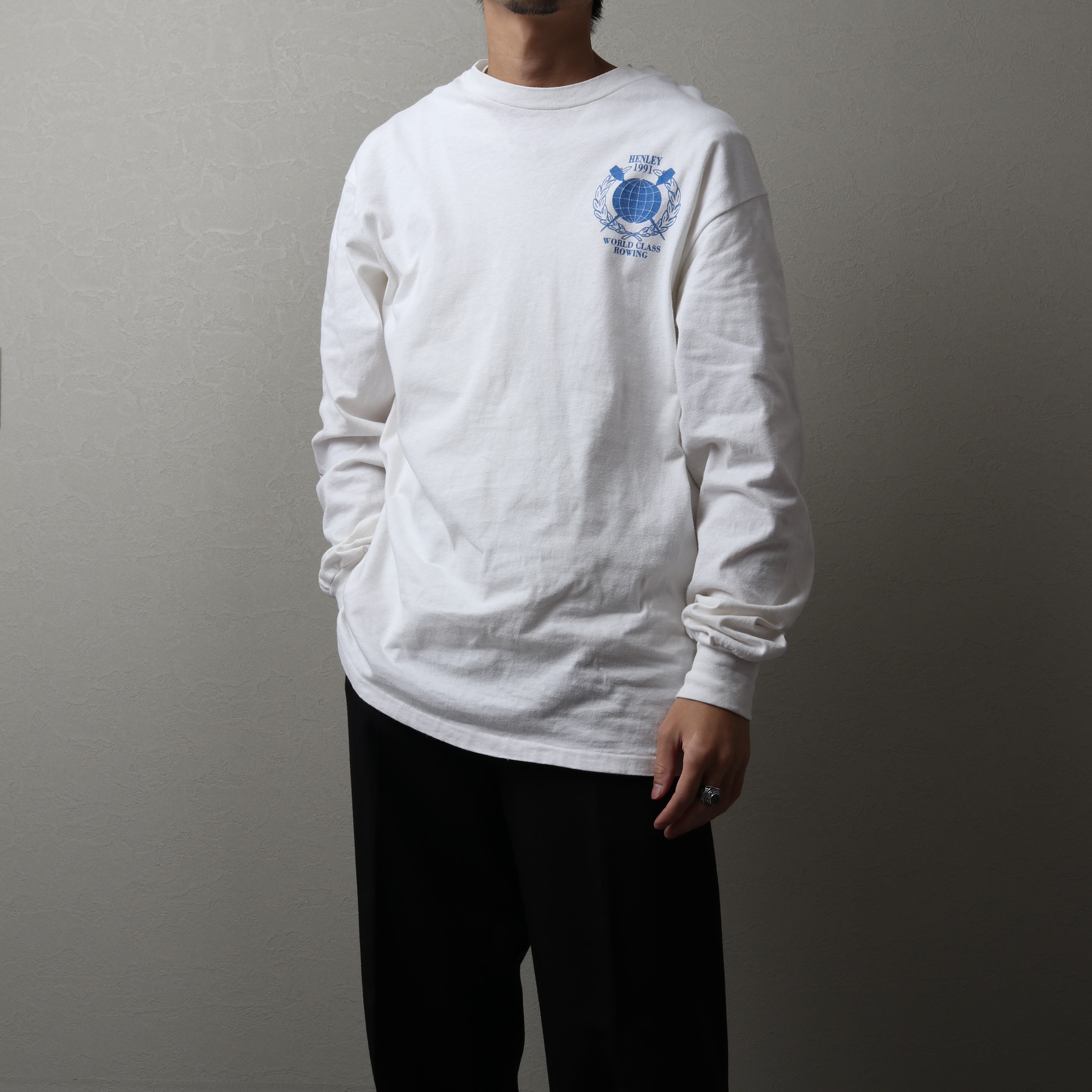 1991年のボート競技世界大会の際に制作されたものと思われ、両面+袖プリントが施されています。
