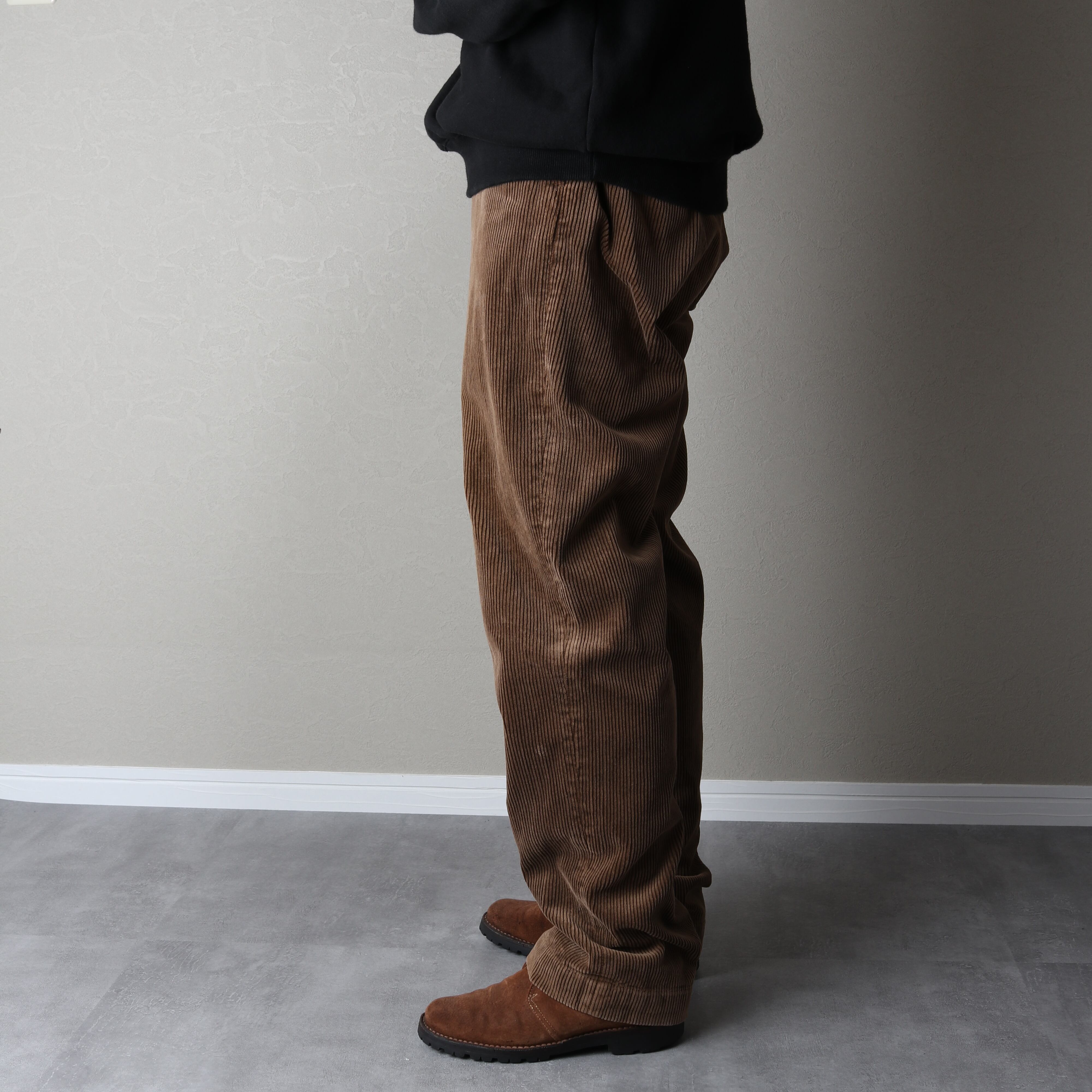 太畝でほどよい太さのあるクラシカルな印象のパンツ。