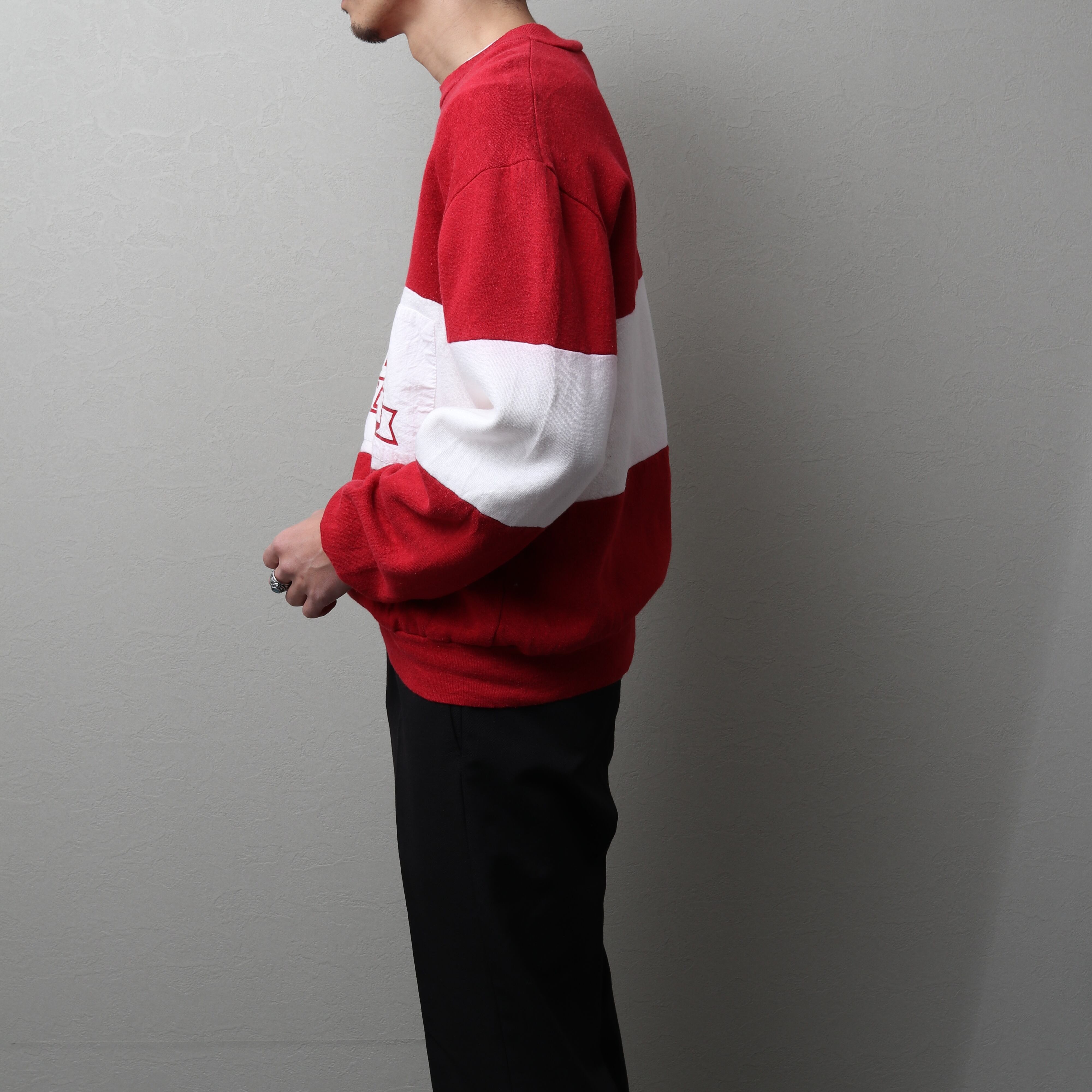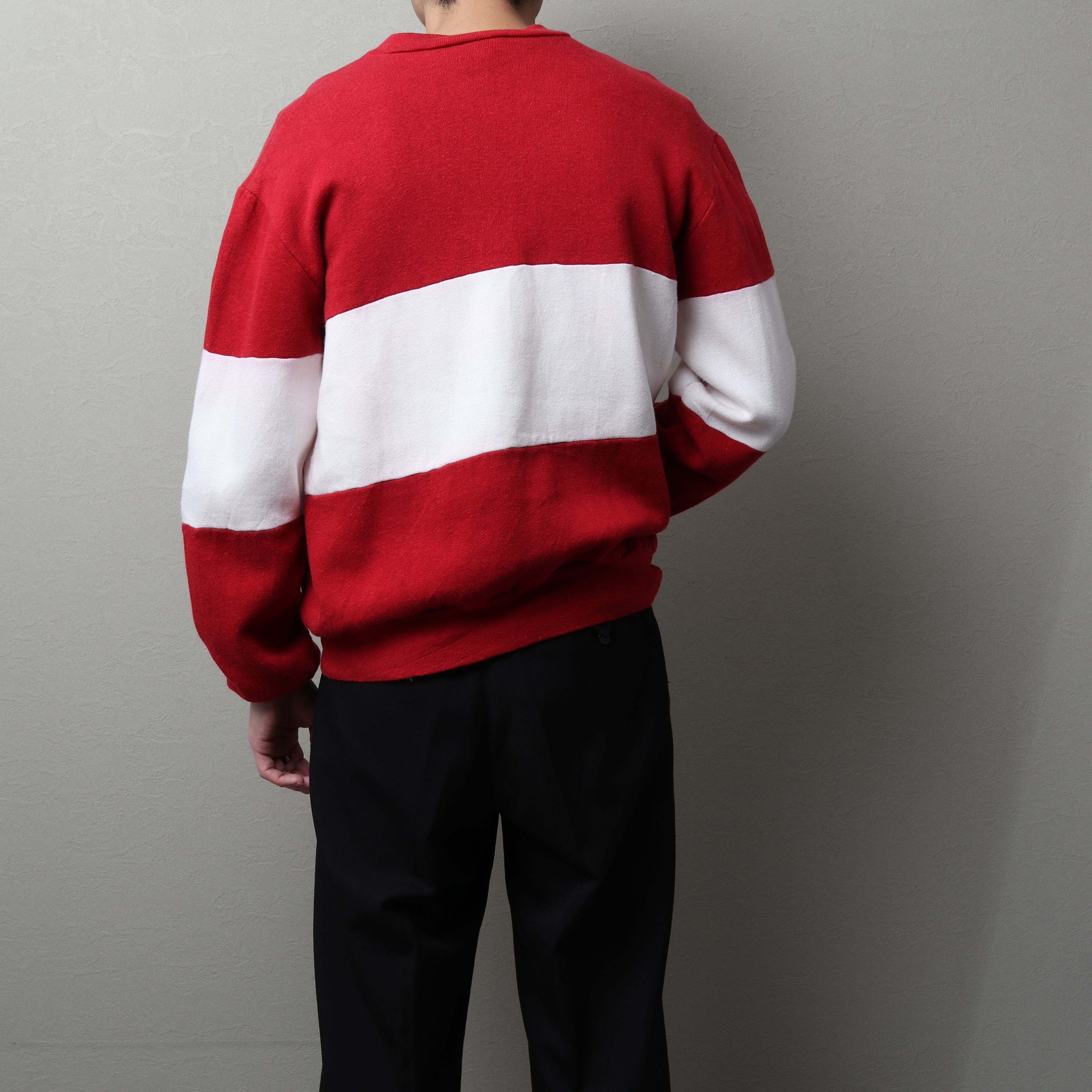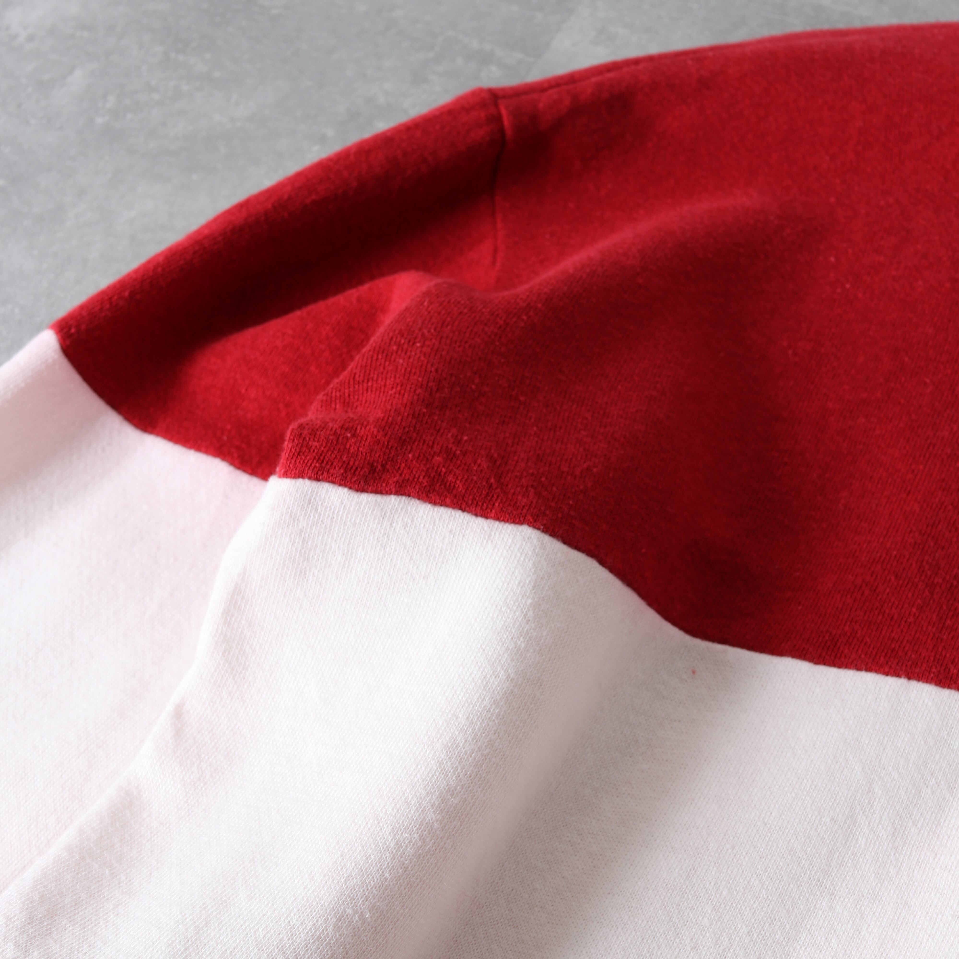 赤と白の別生地を用いて作られたバイカラーデザイン。