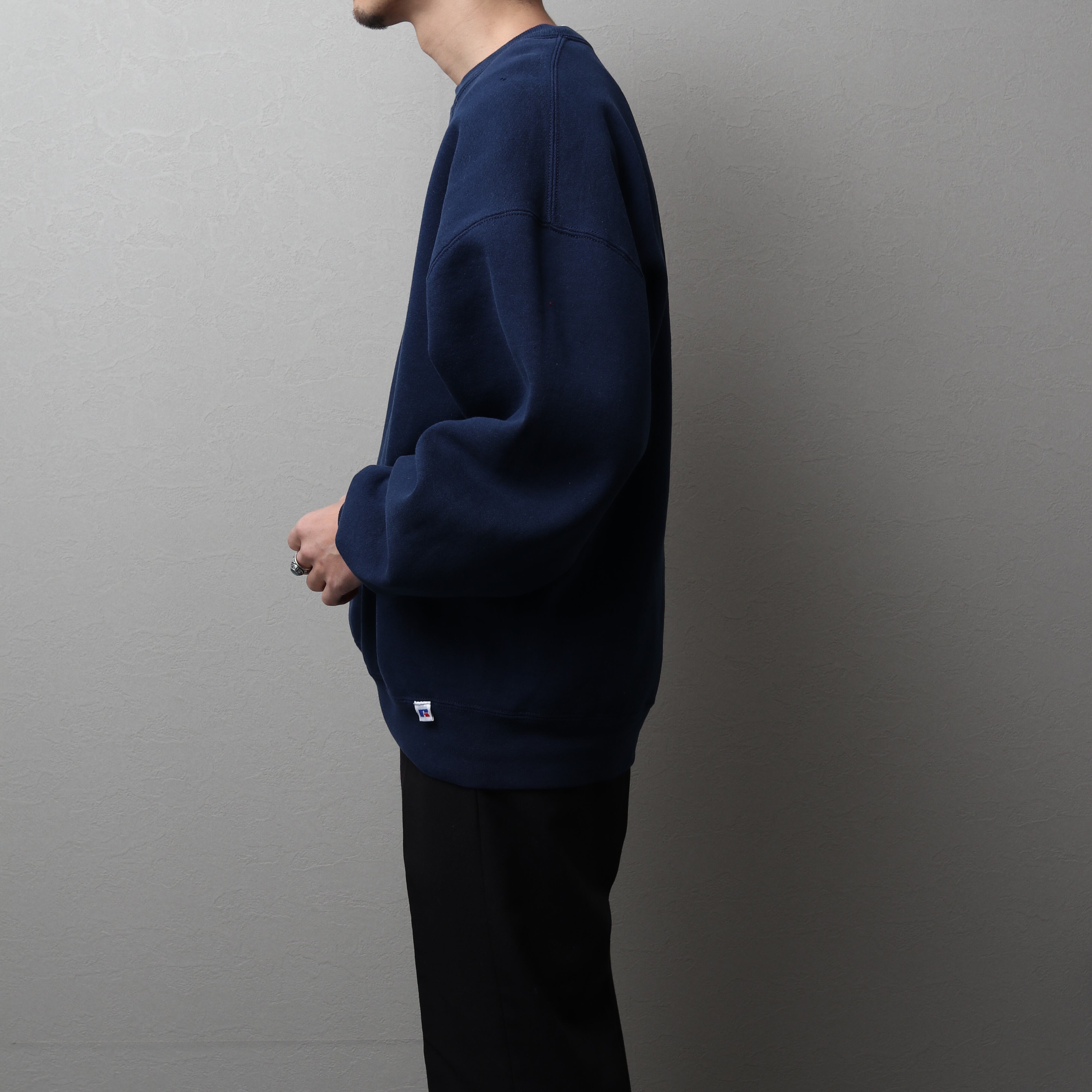 Vガゼットや裾のピスネームなどのディティールもラッセルスウェットの特徴です。