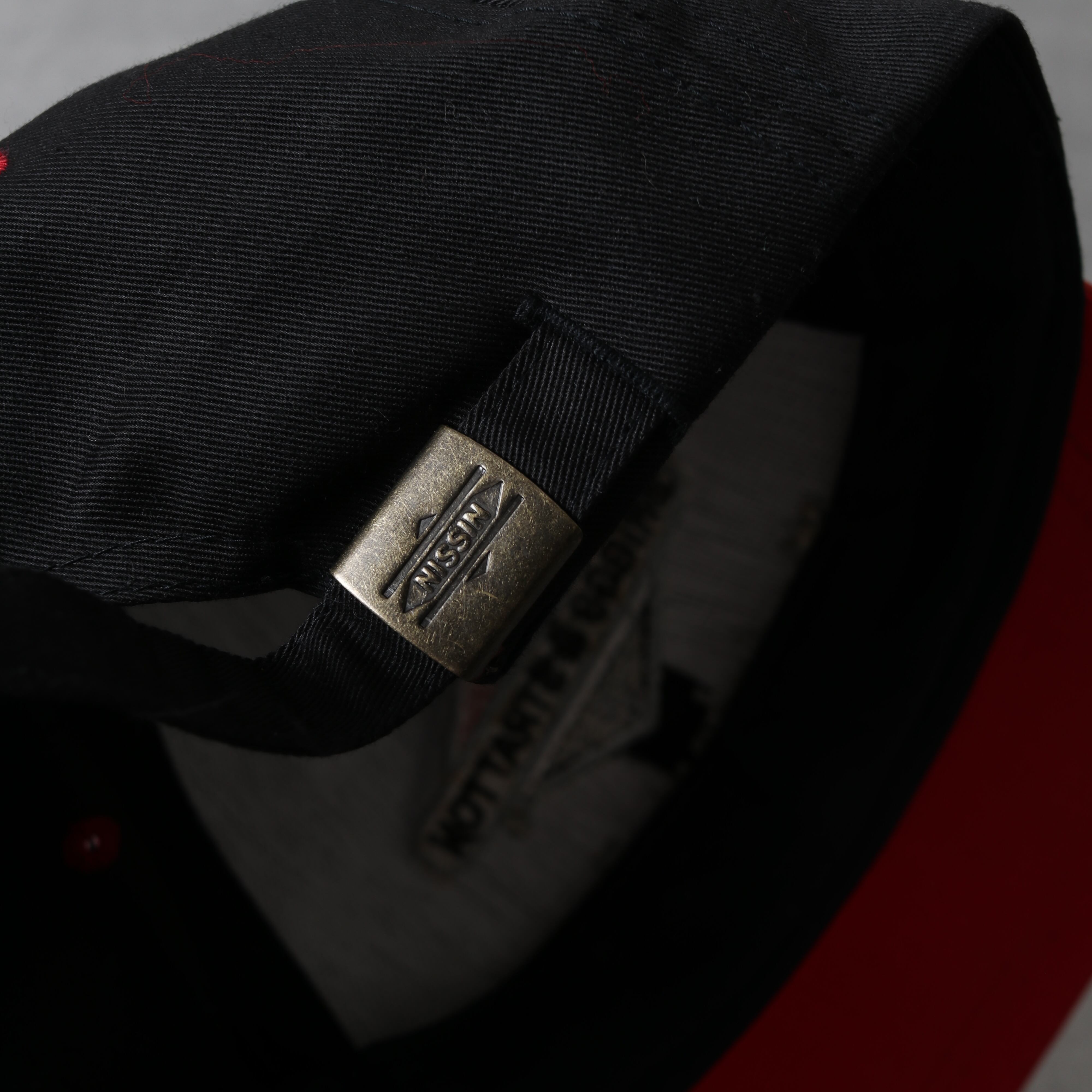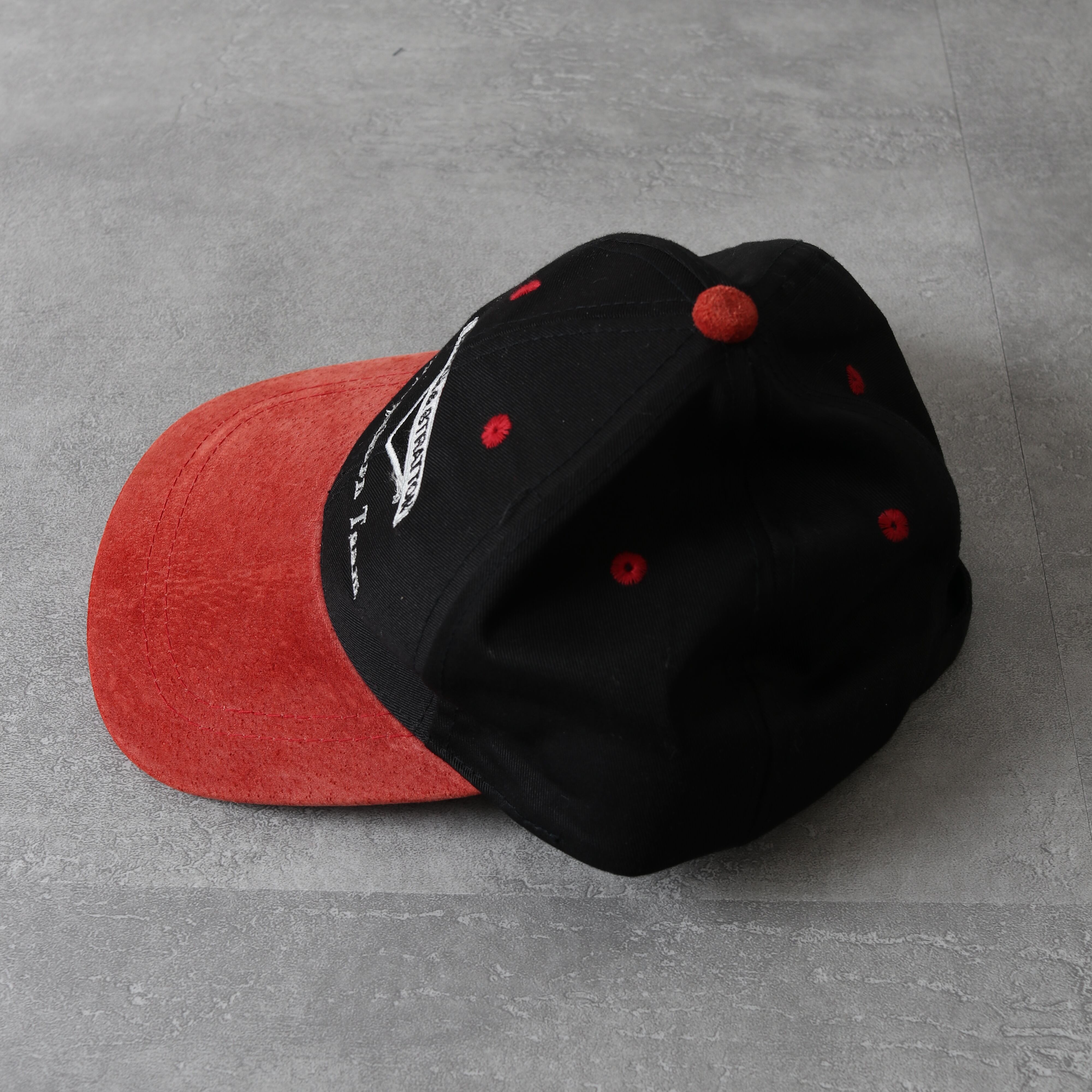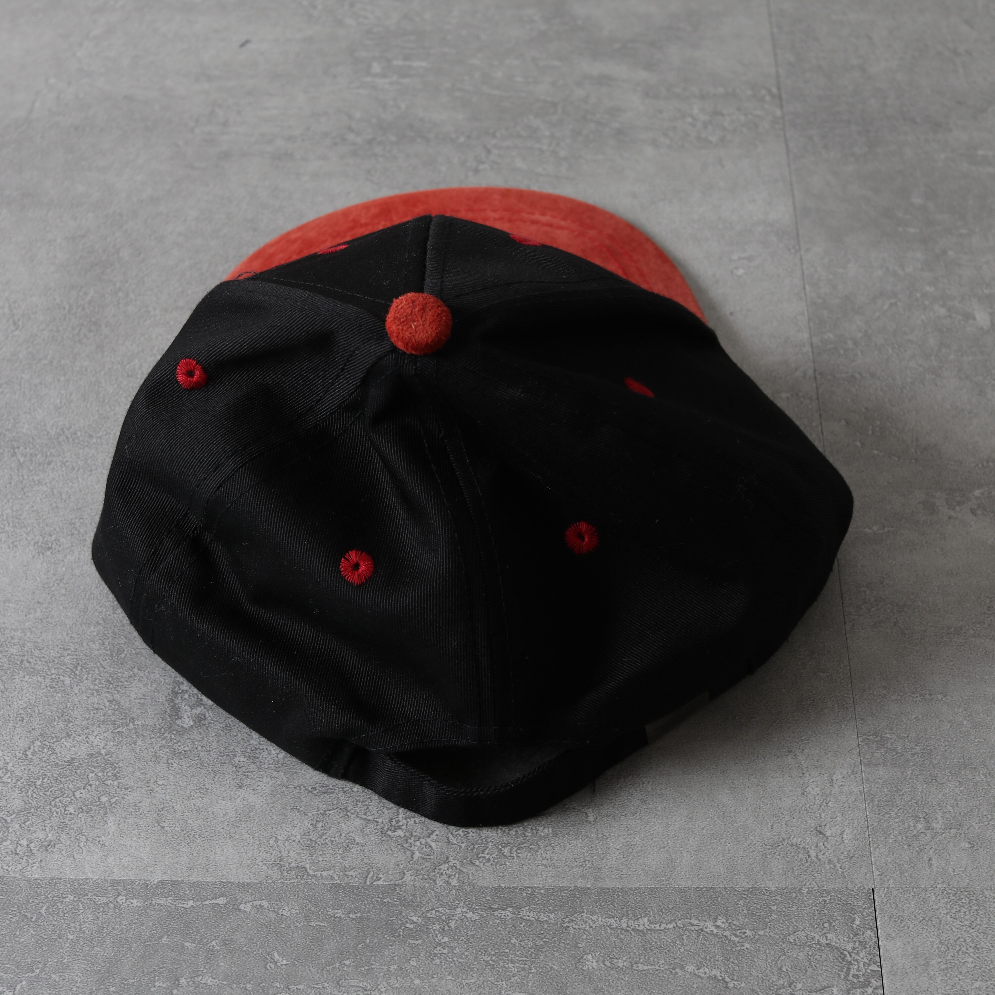 ツバと天ボタンには贅沢にスウェードが張られています。