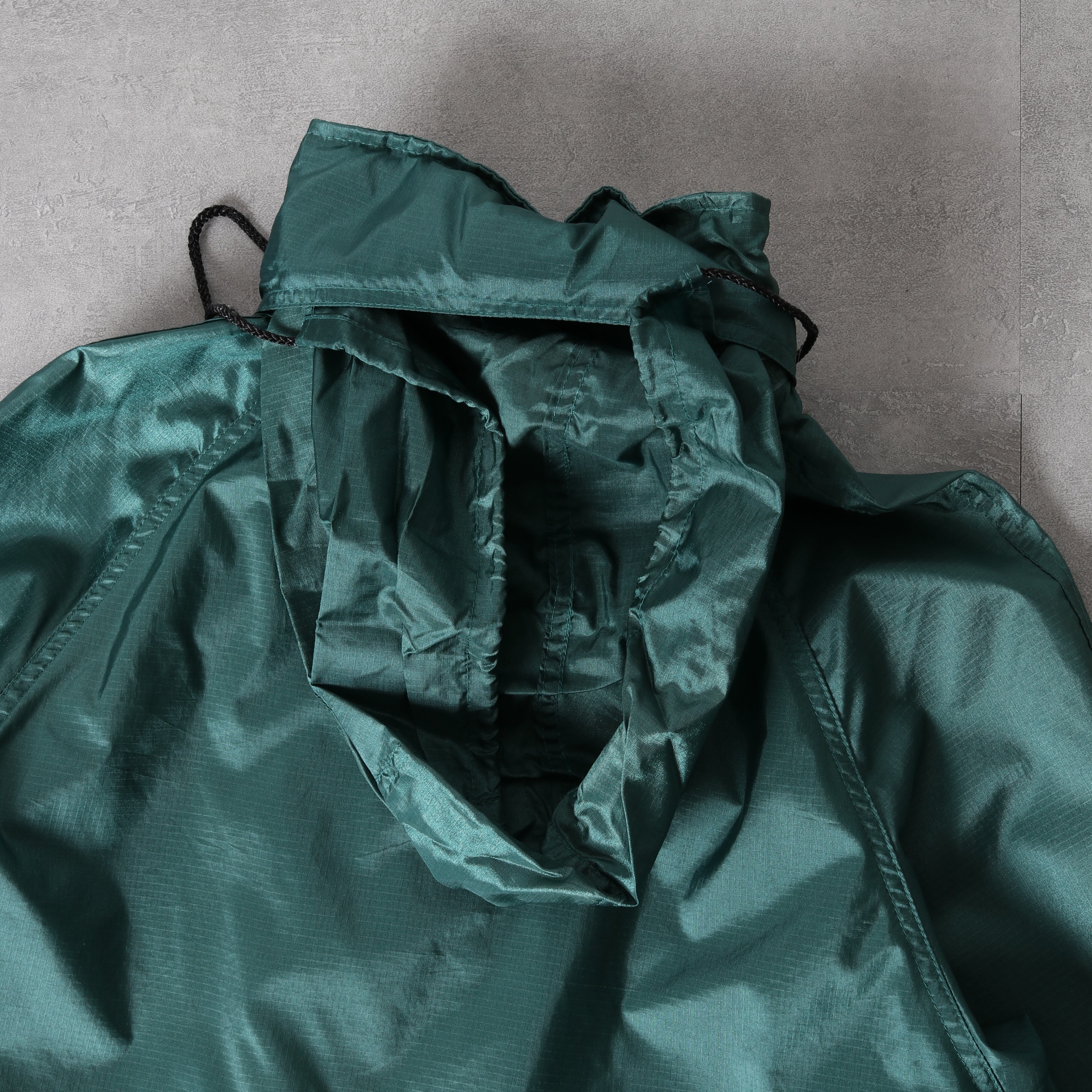 裾はドローコードで絞ることが可能。襟からフードが出し入れできます。