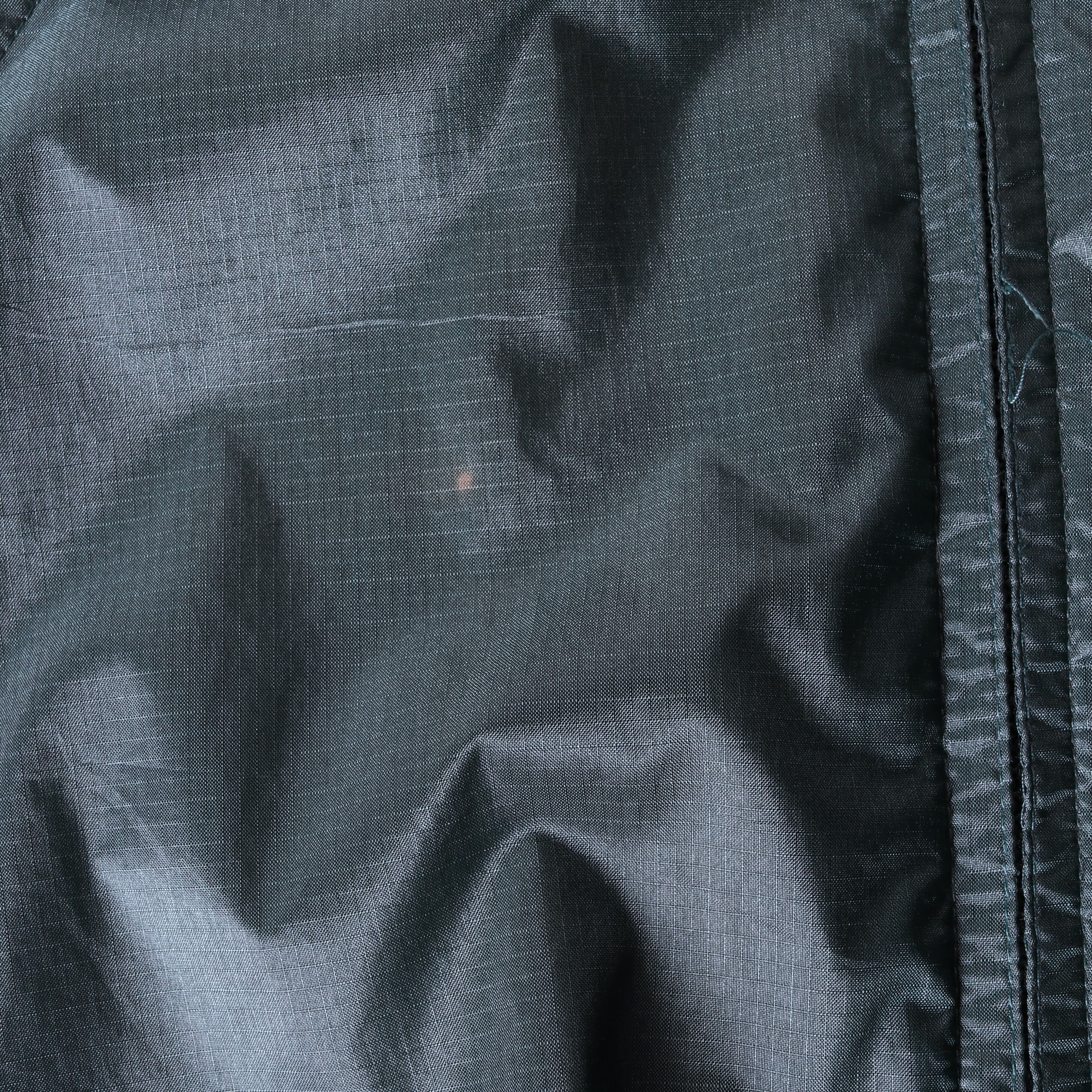 光沢のあるリップストップナイロンが用いられソリッドな印象の一着。