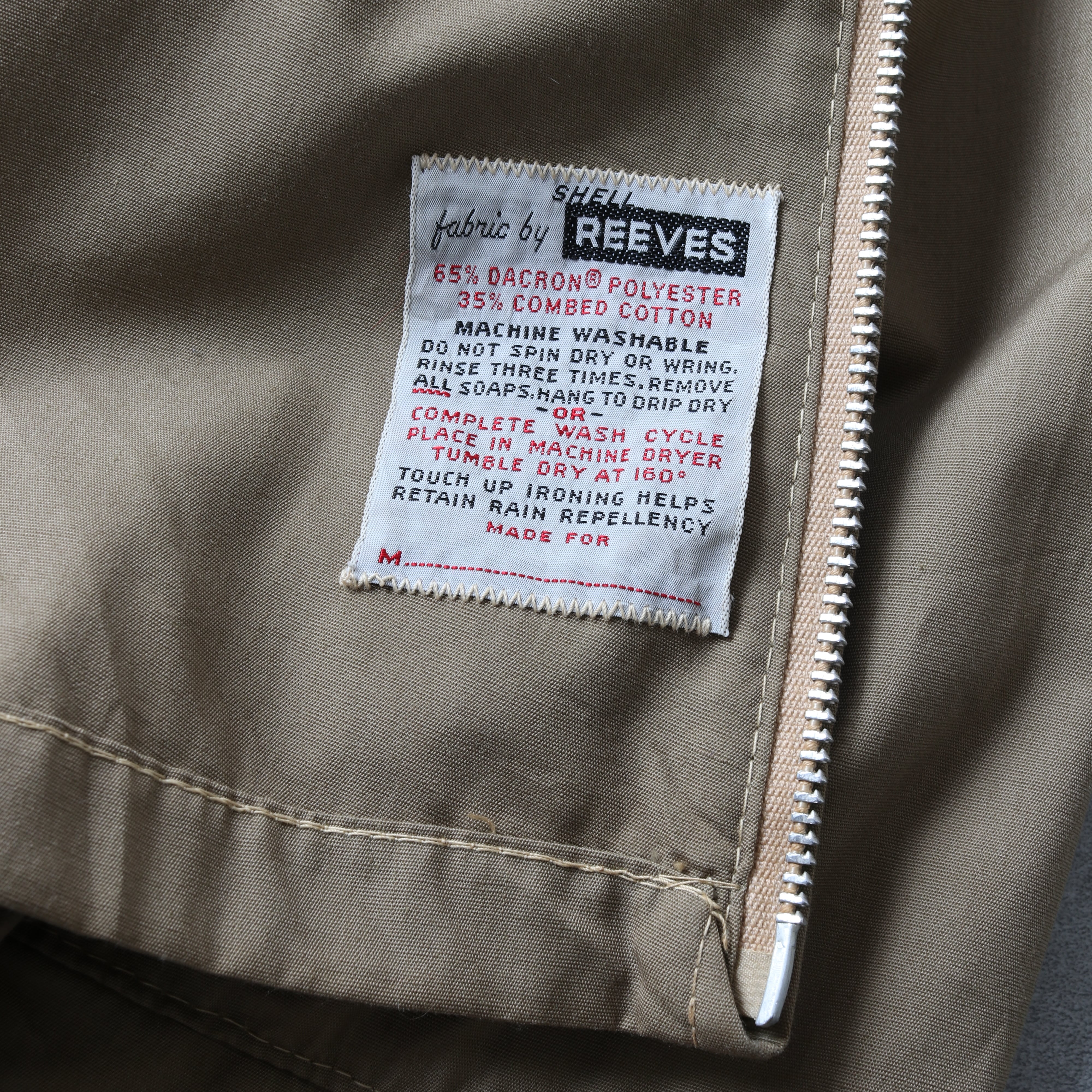 耐久性に優れたREEVES製のポリコットン地。ジップはタロン。