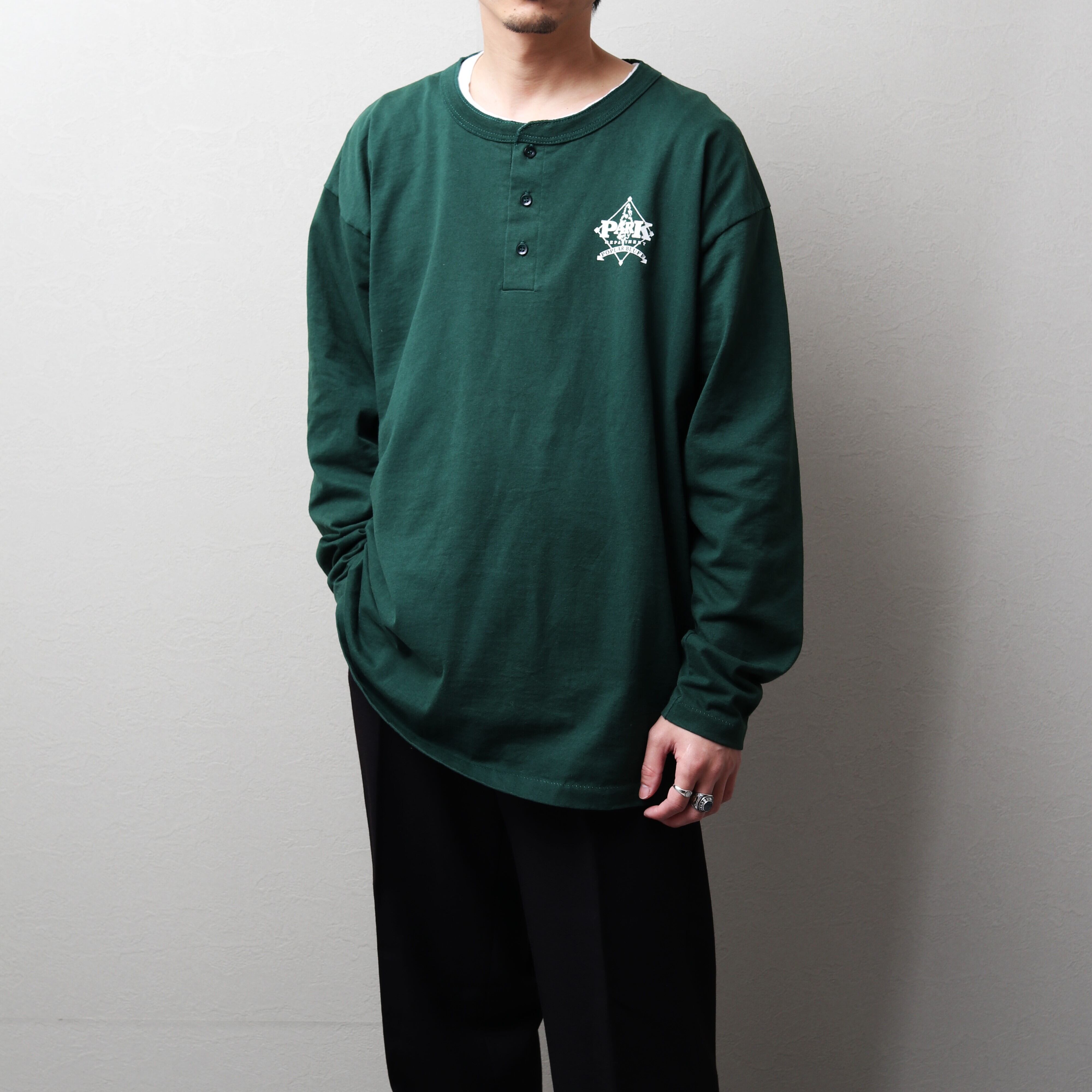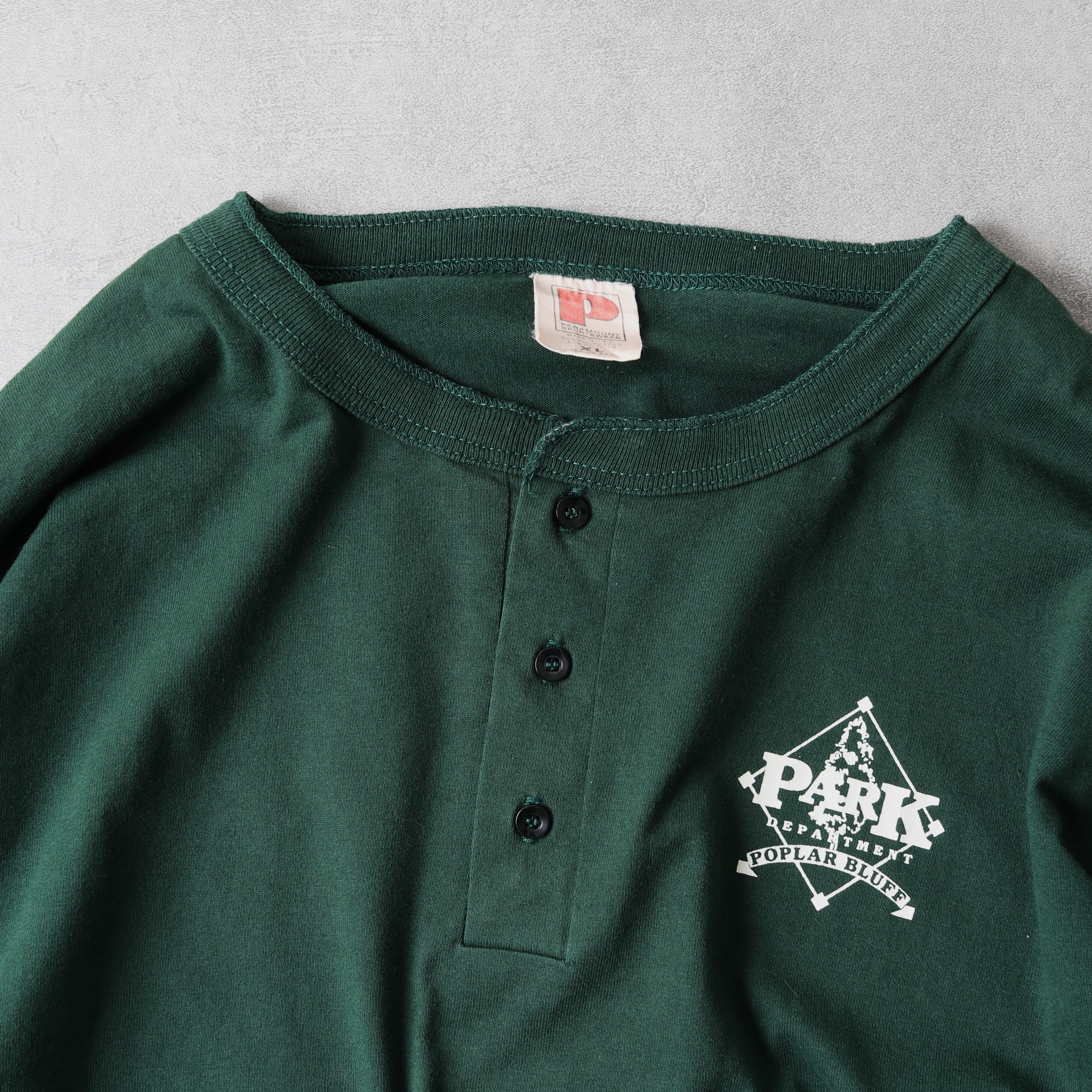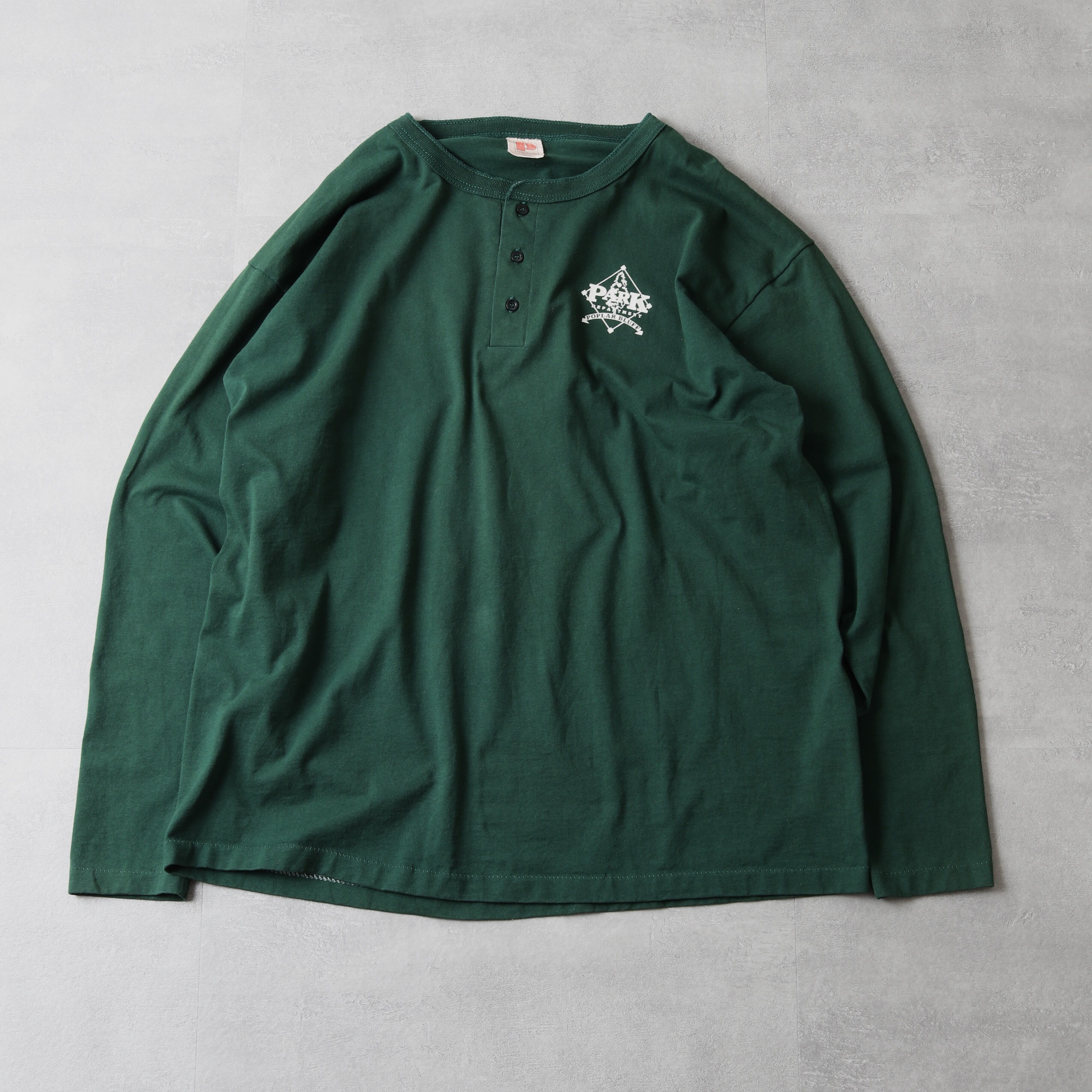 1980~90's MadeinUSA L/S Henry-neck T-Shirt "poplar bluff" 112020