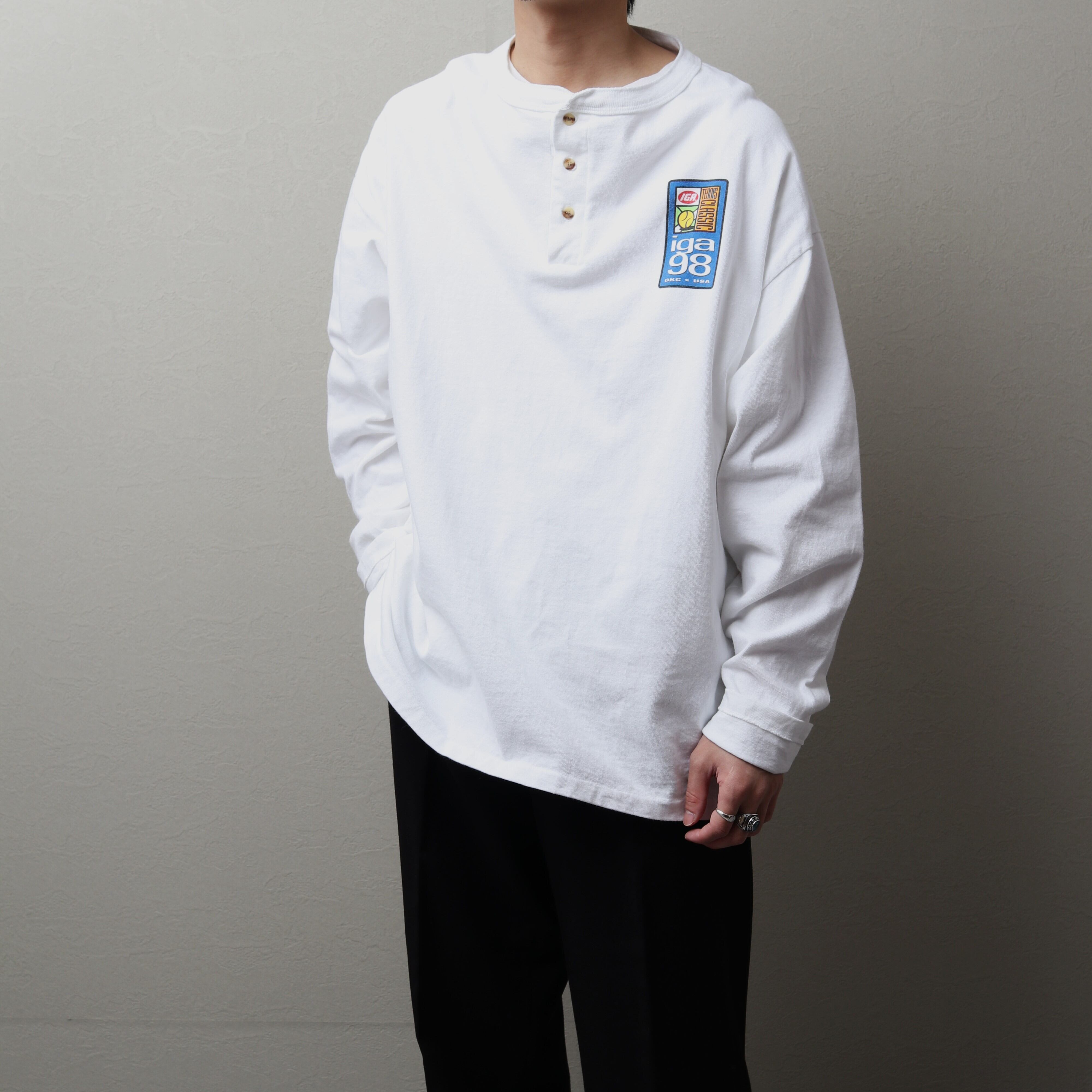 1990's MadeinUSA Vintage Henry-neck T-shirt "cotton deluxe" 112032