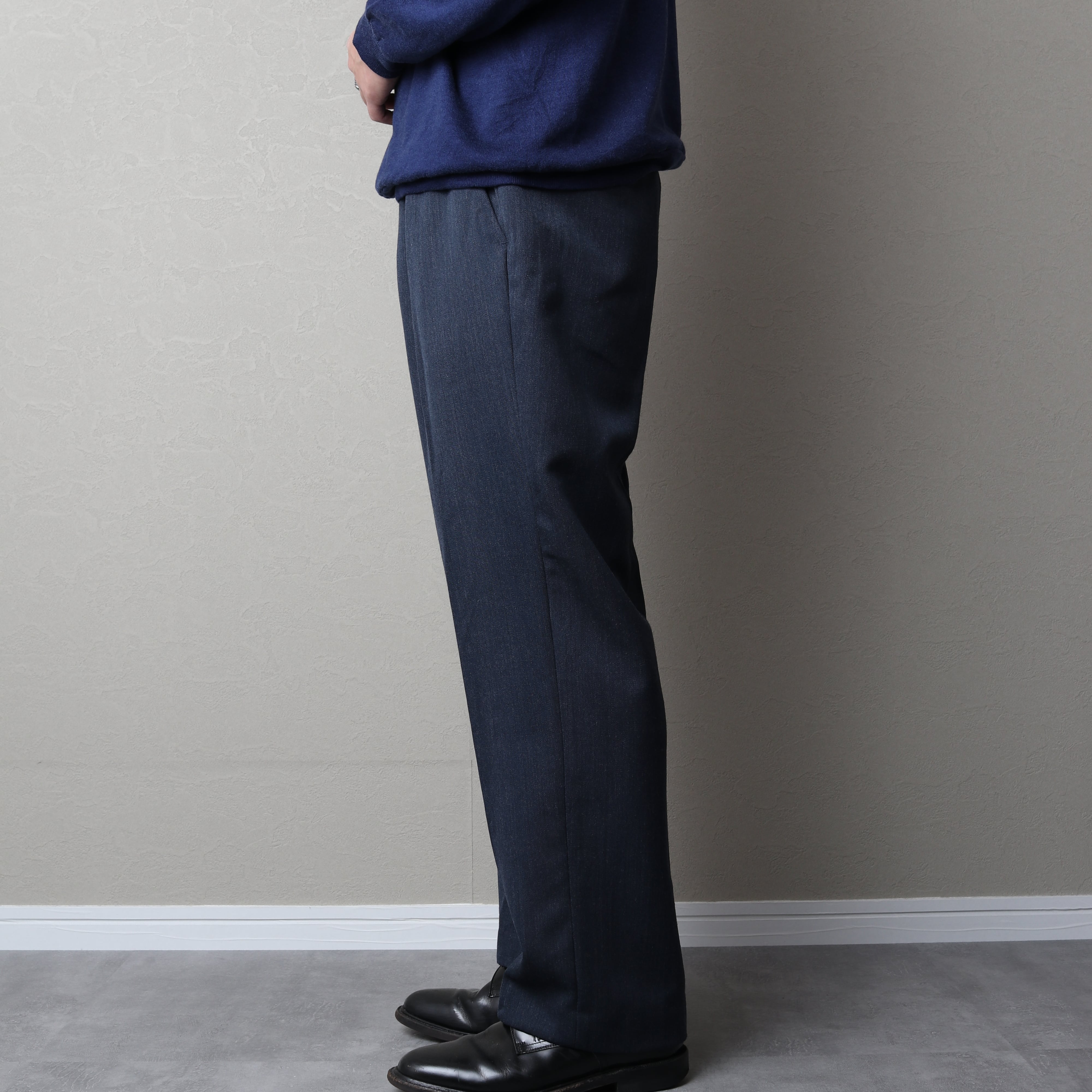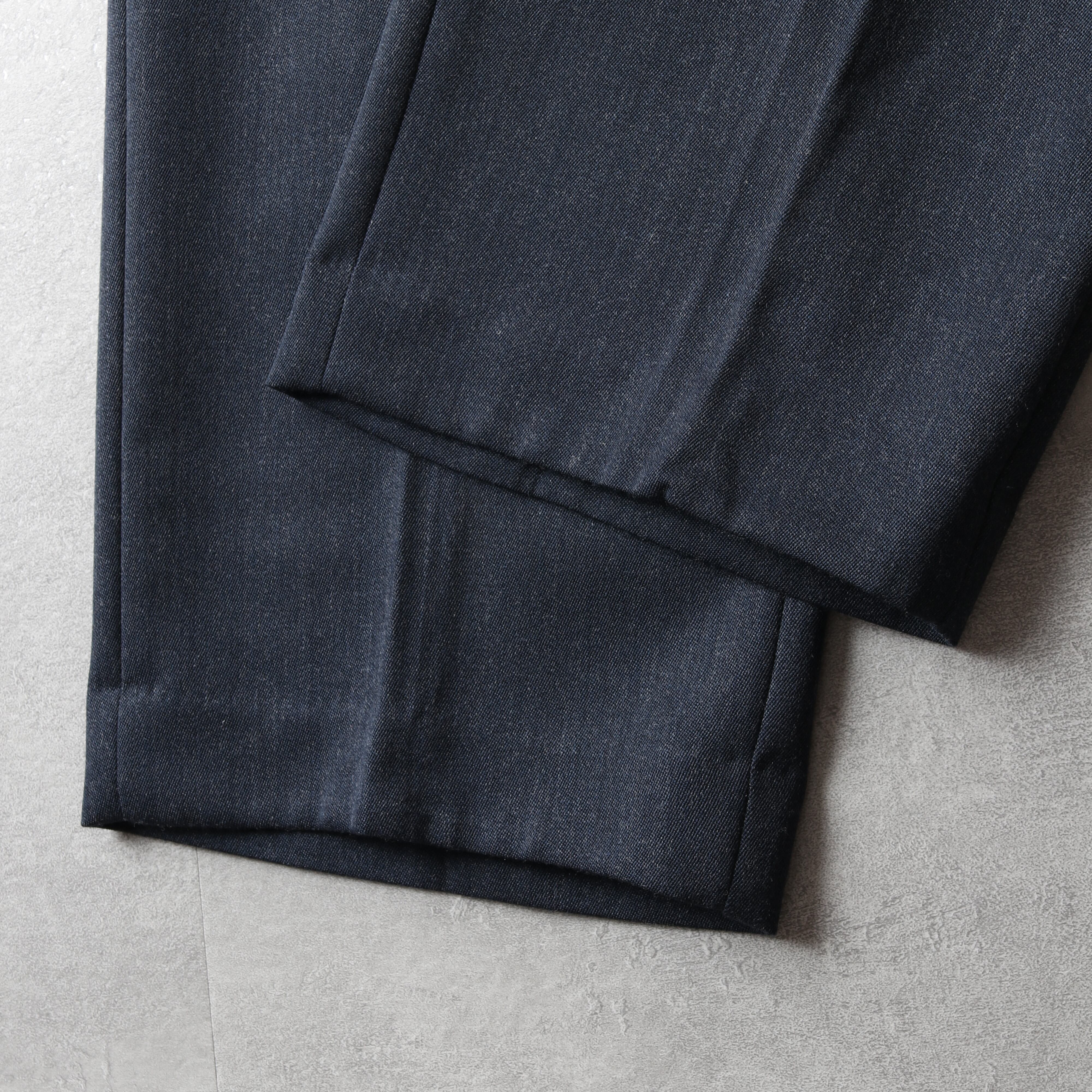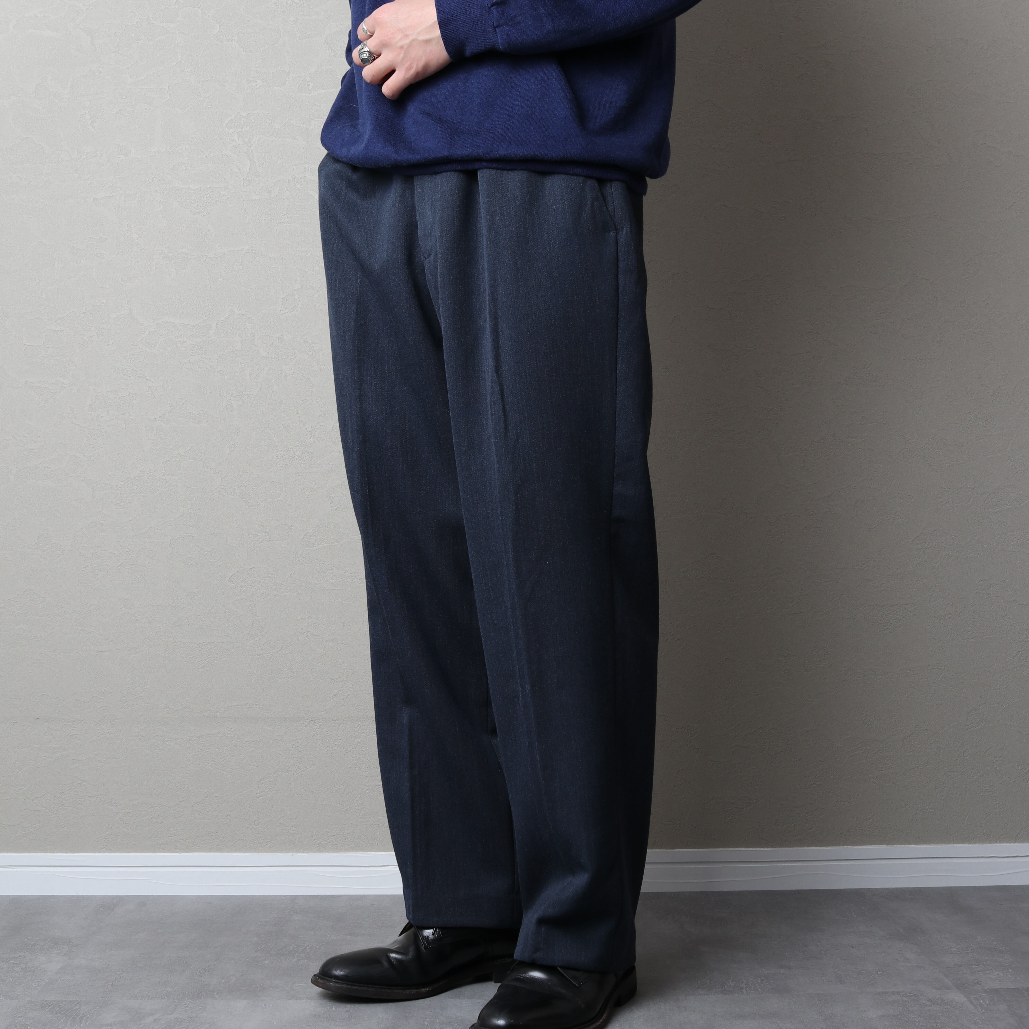 両サイドにプリーツが入り程よい太さがあり、スタイリングの汎用性も高い一本です。