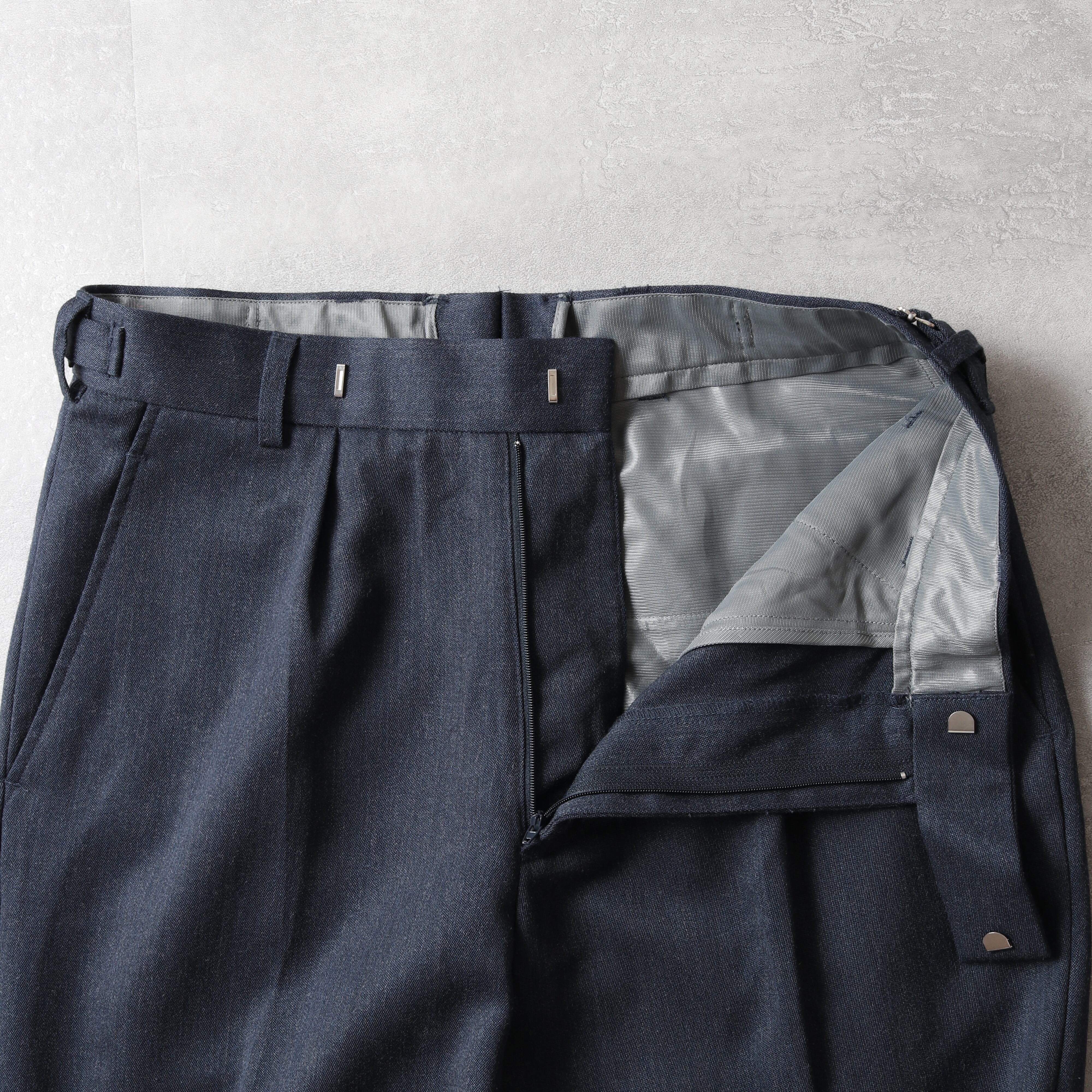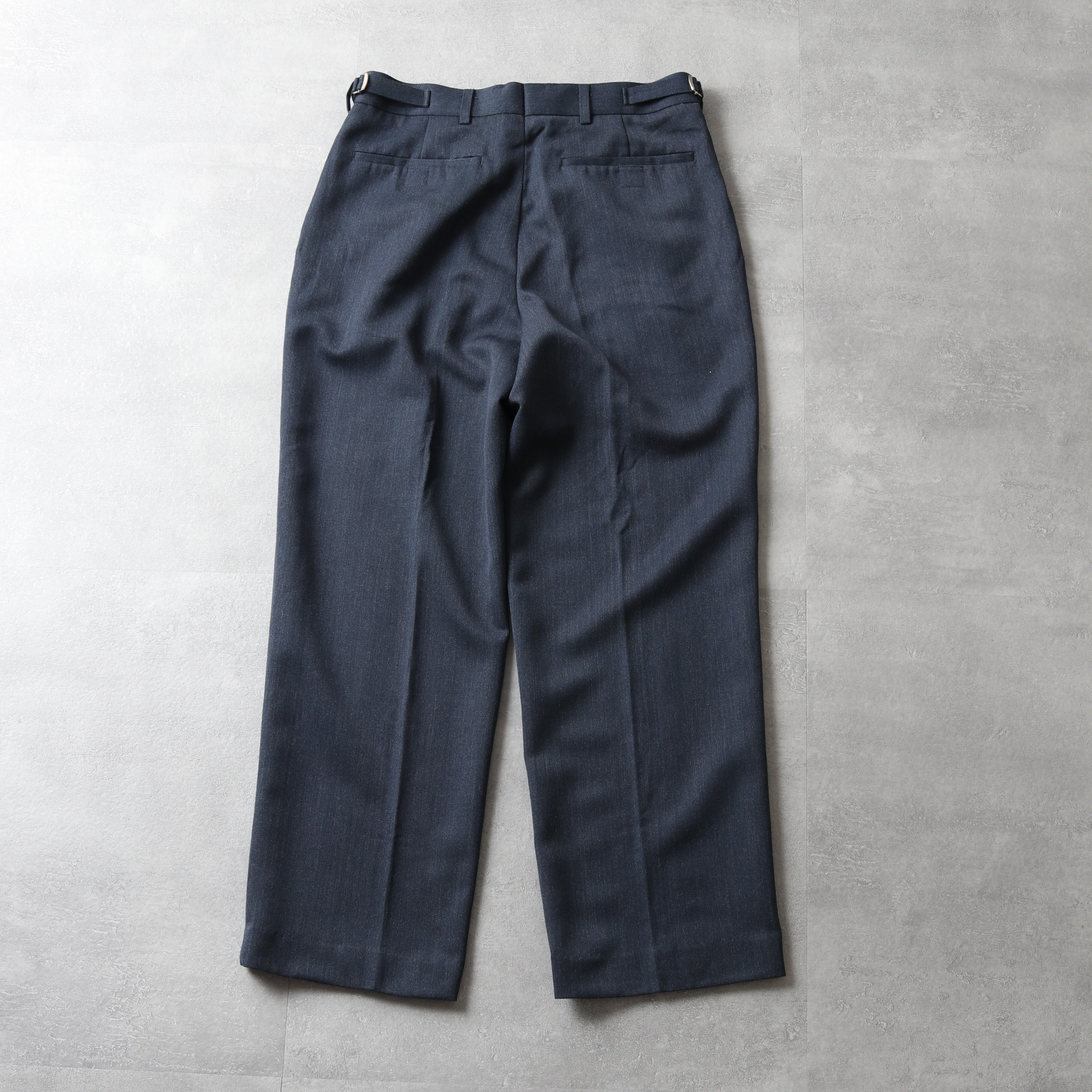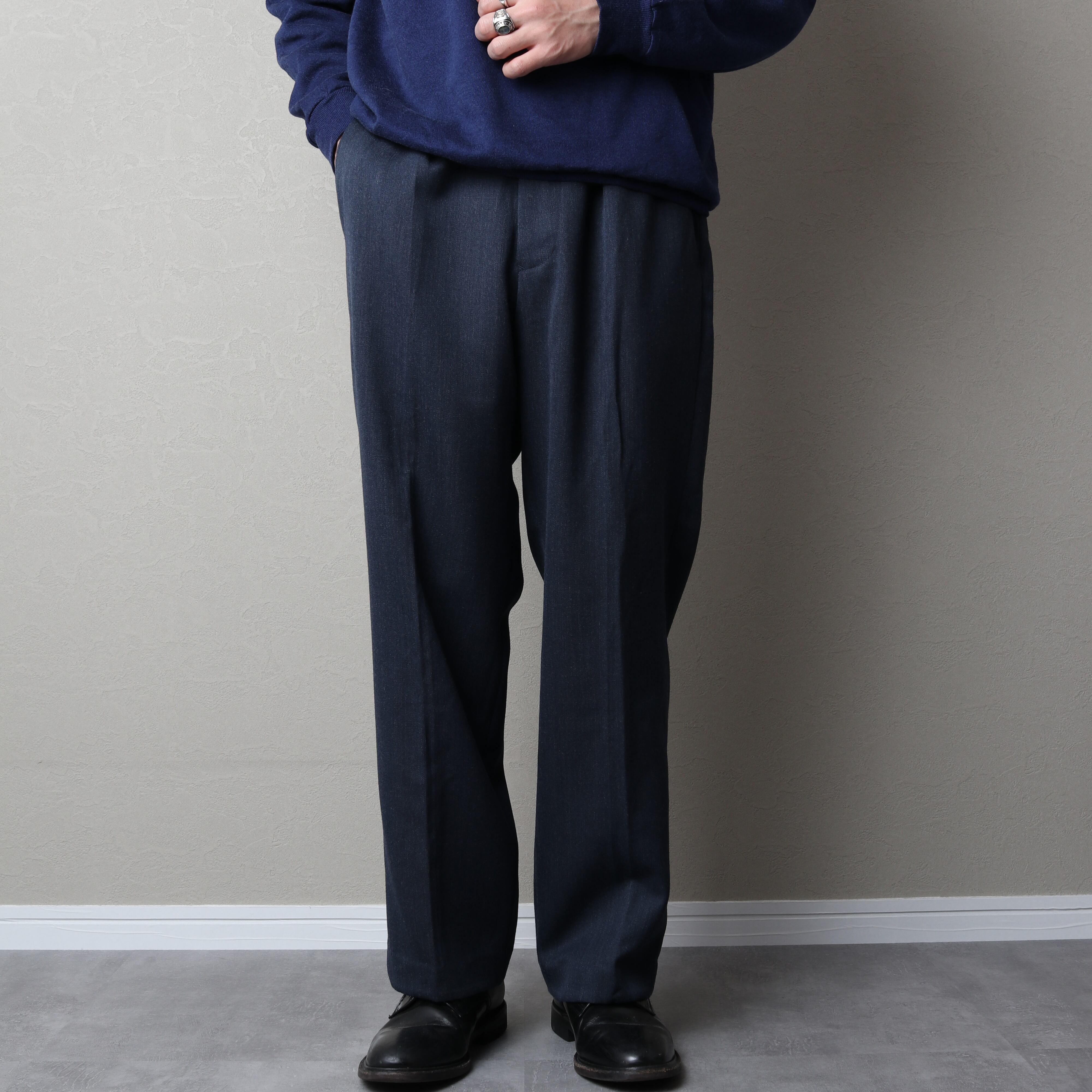 両サイドにプリーツが入り程よい太さがあり、スタイリングの汎用性も高い一本です。
