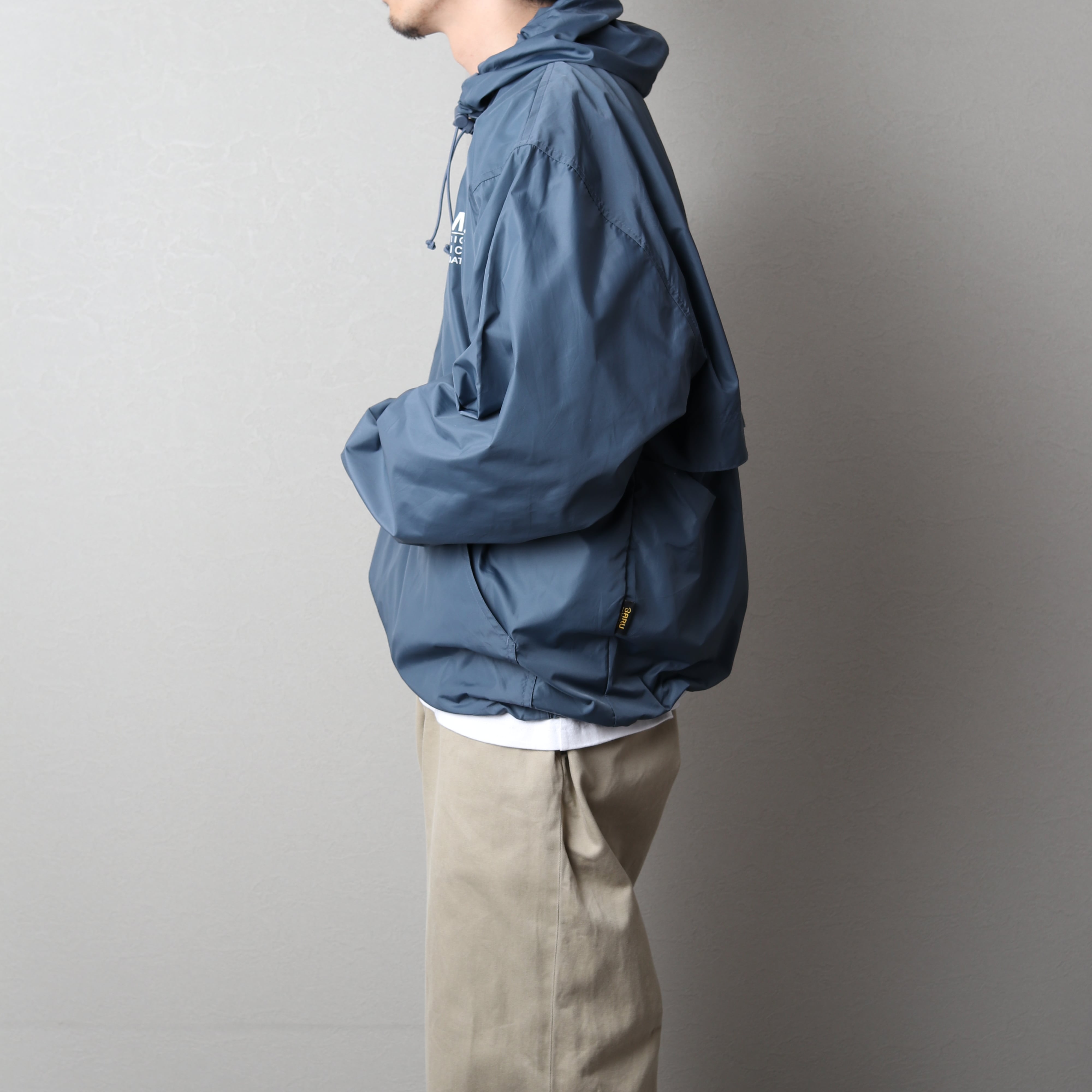 ナイロン一枚仕立てのアノラック。