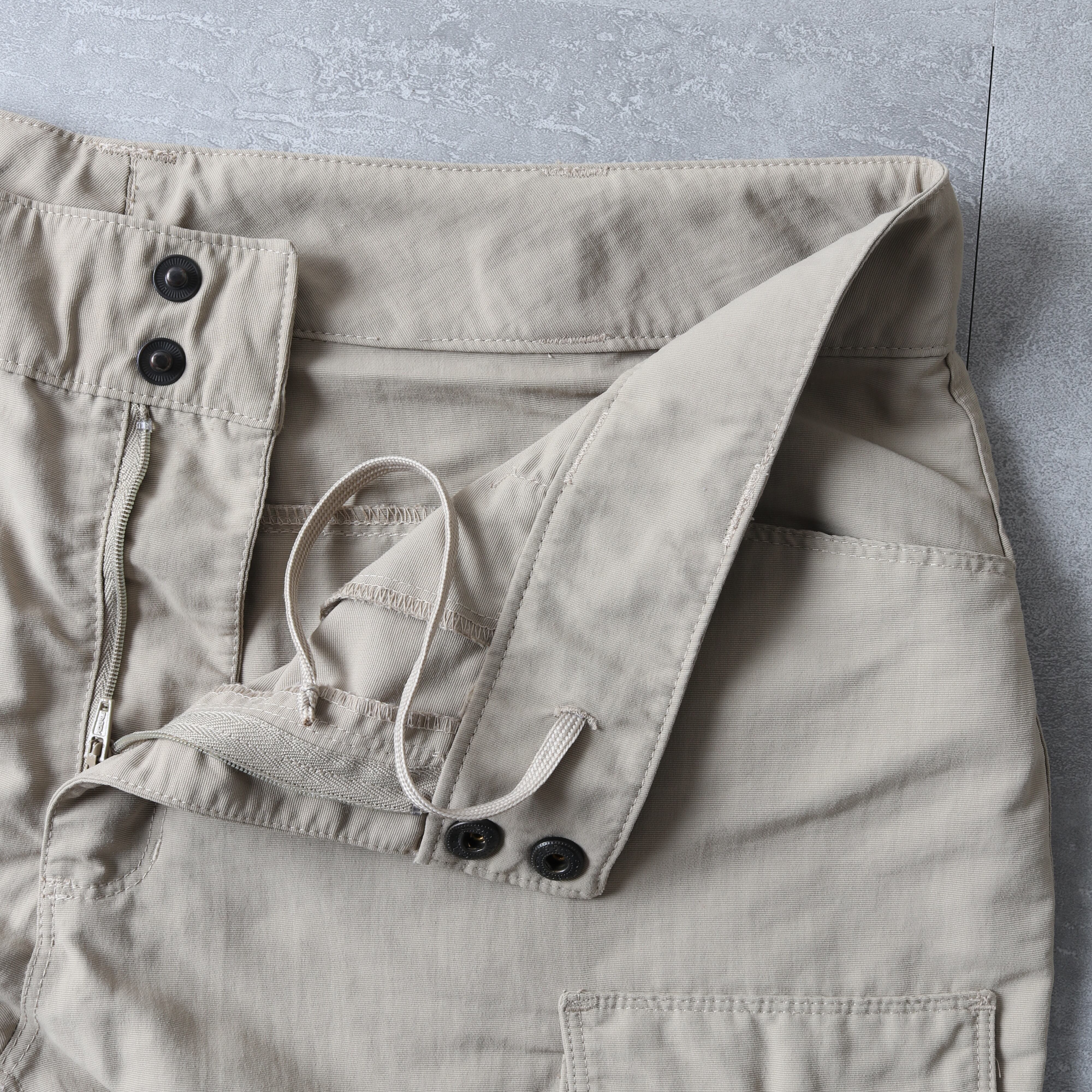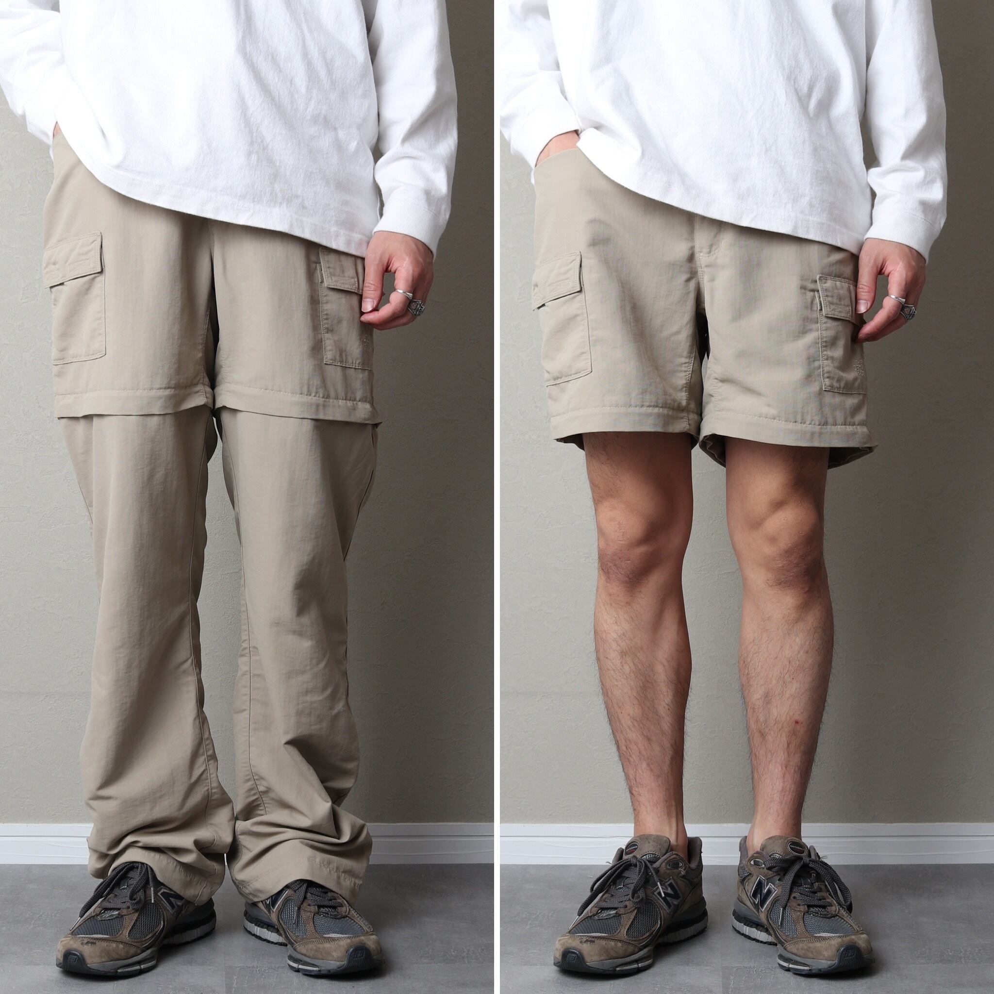 外さない状態だとやや太めのカーゴパンツとして扱え、外すと渡り幅もあるため