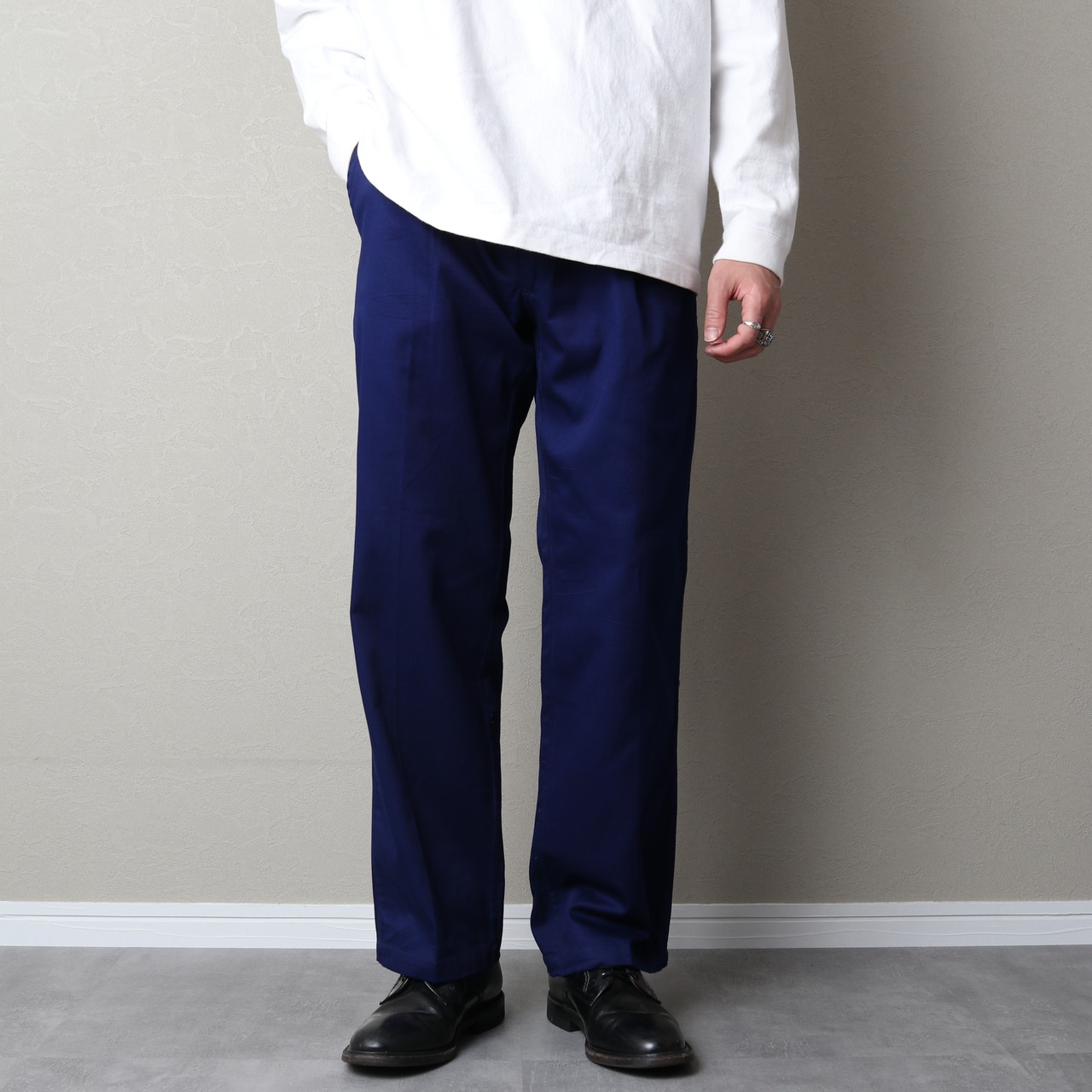 プリーツが入り太めのすとんと落ちた微テーパードのシルエットもとても綺麗。