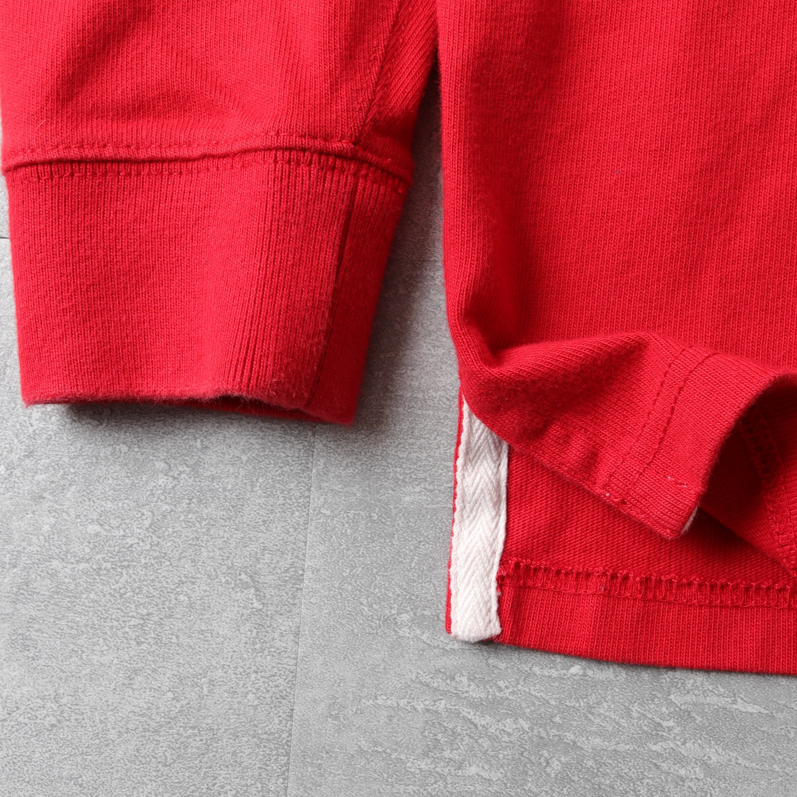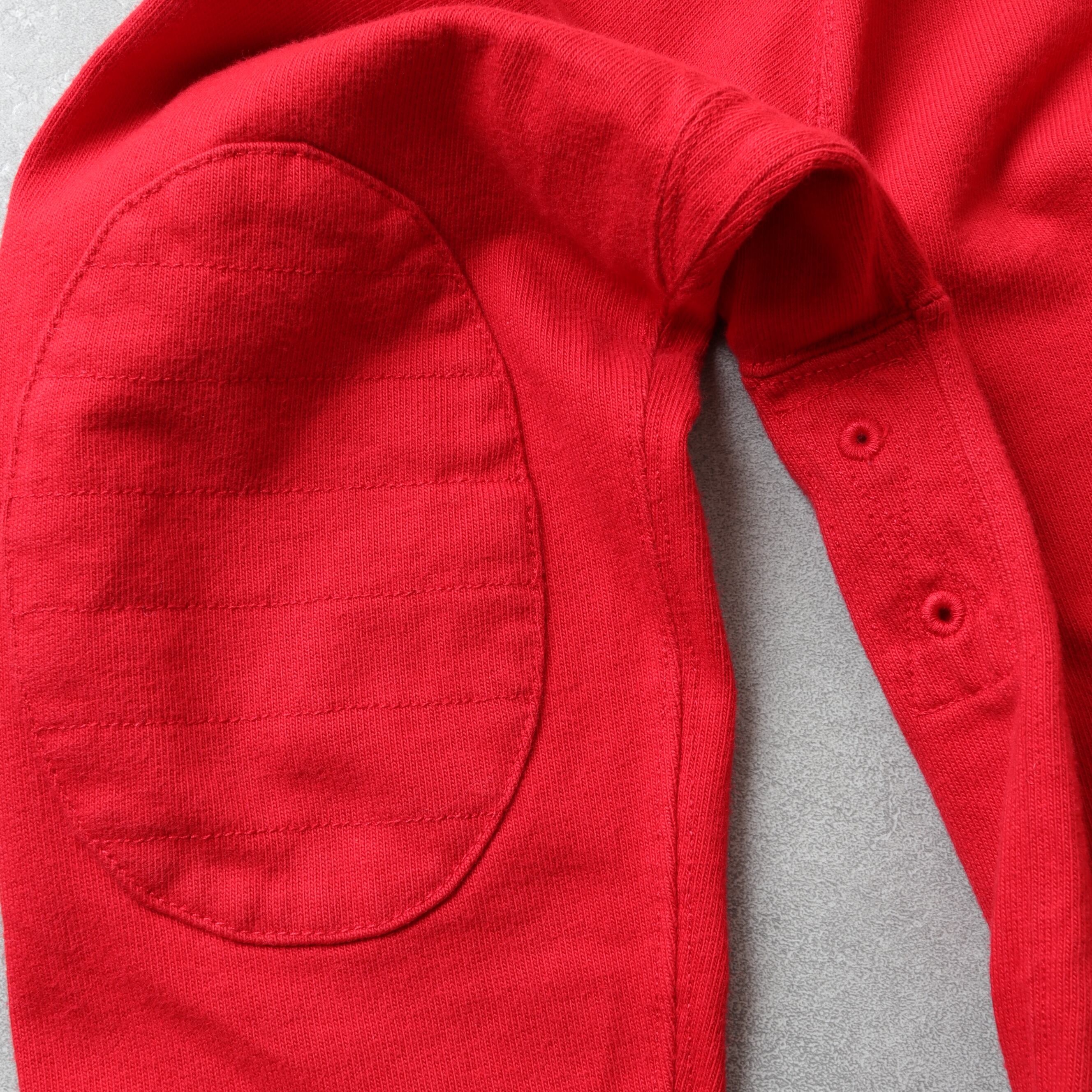 ラバーボタンや襟、マチの補強、ショルダーの当て布、エルボーパッチなど本格的な仕様です。