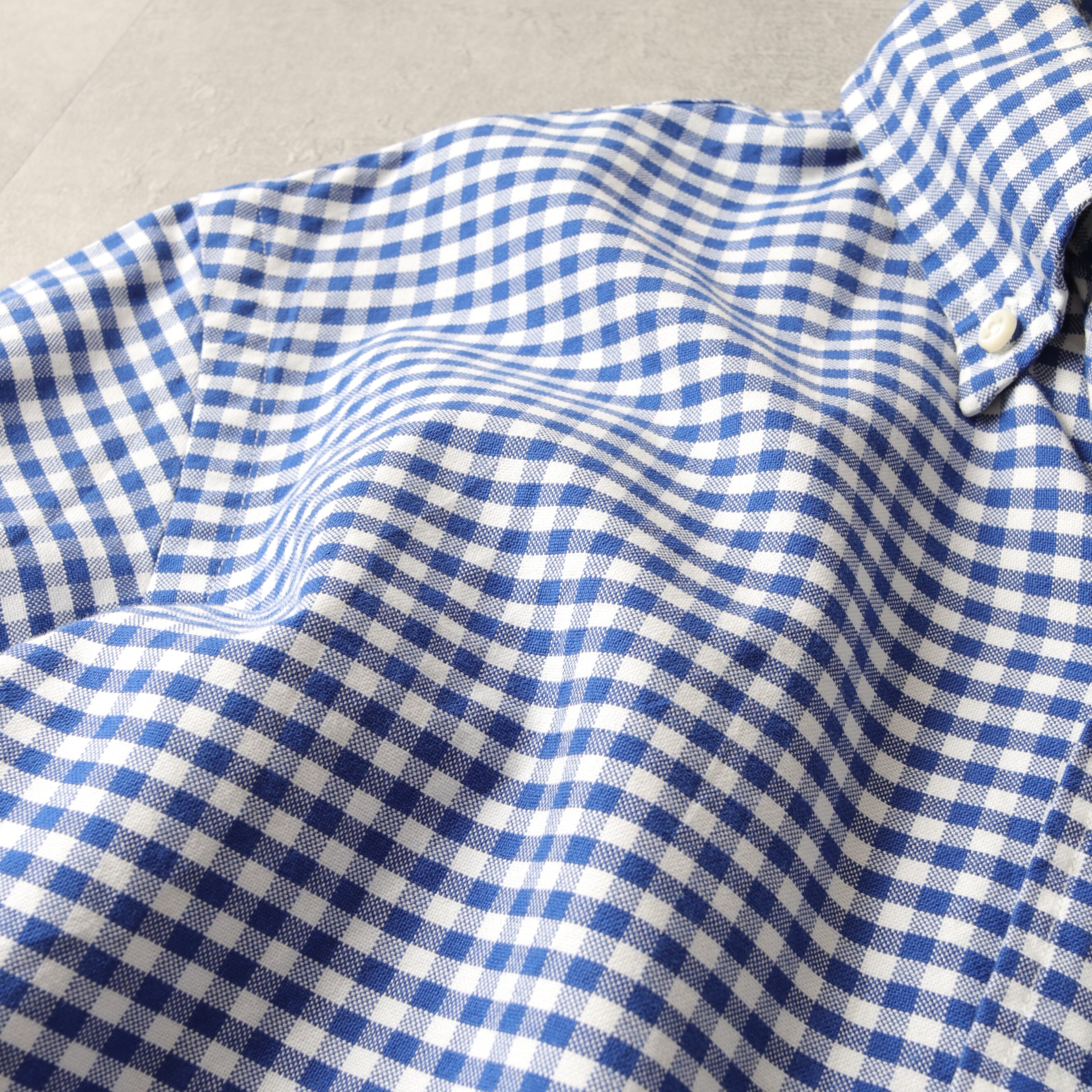 ブルーととホワイトのギンガムチェックにカラーポニー。