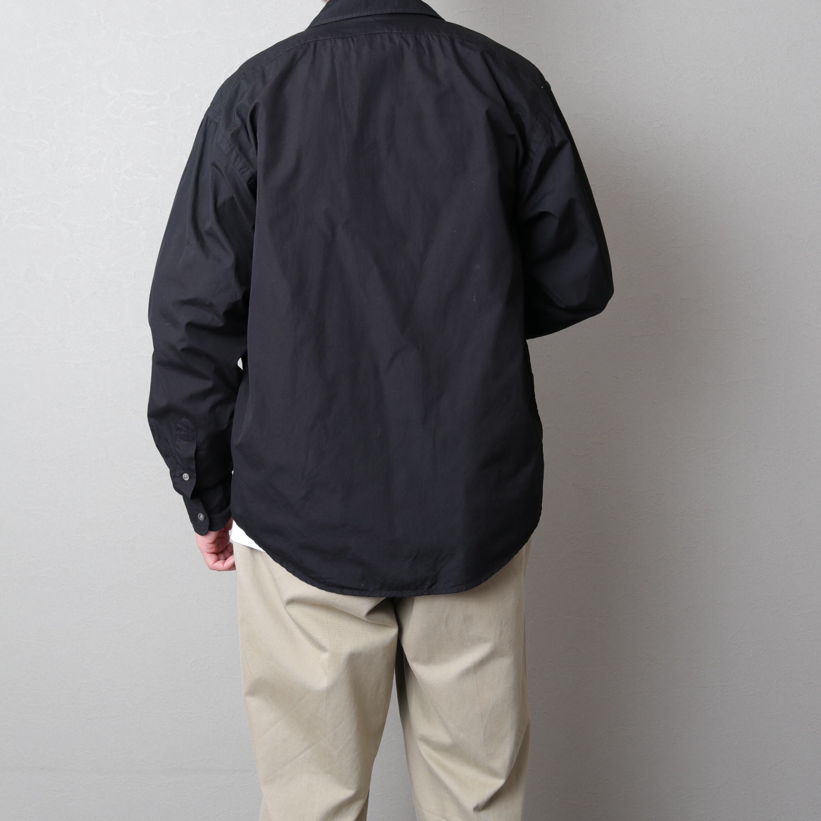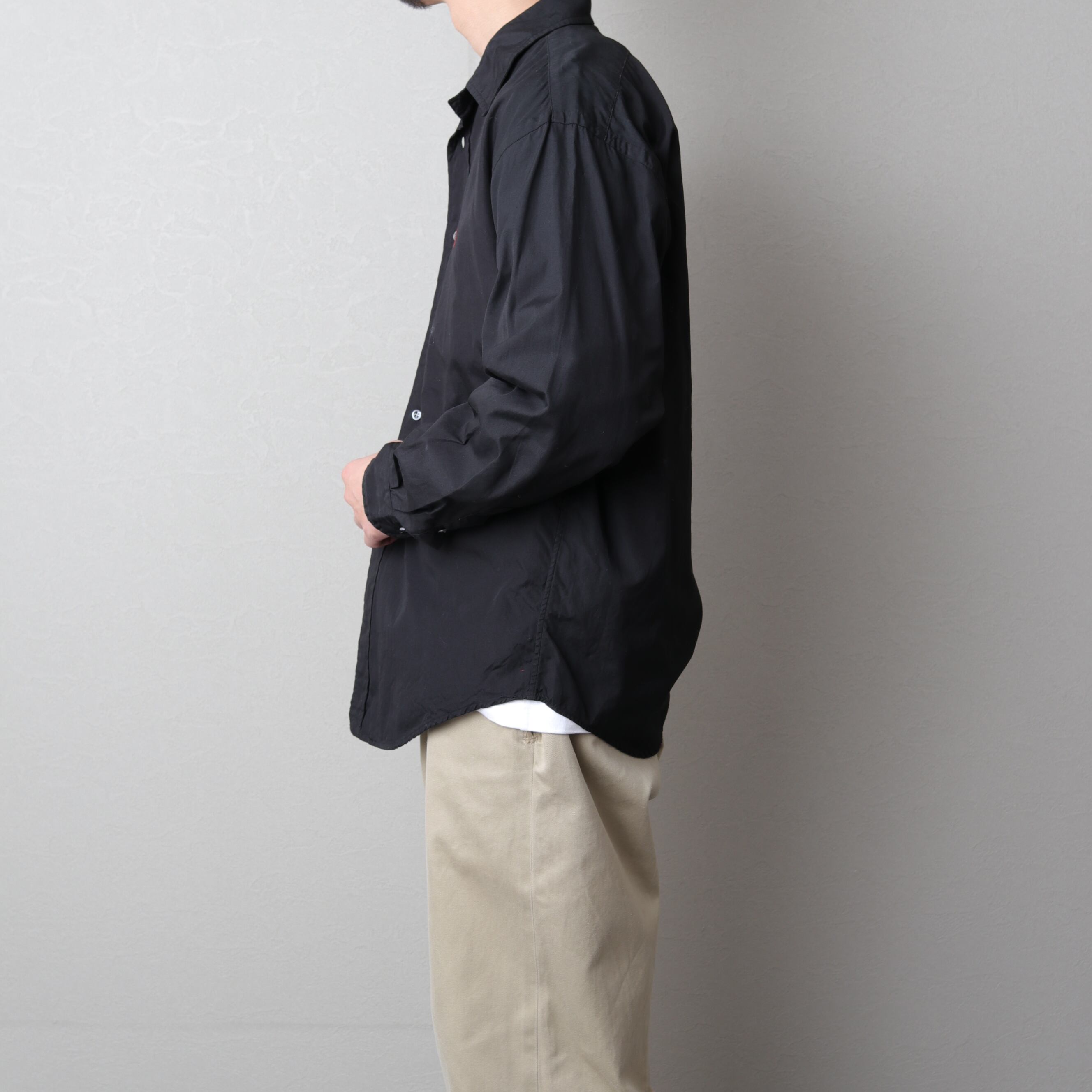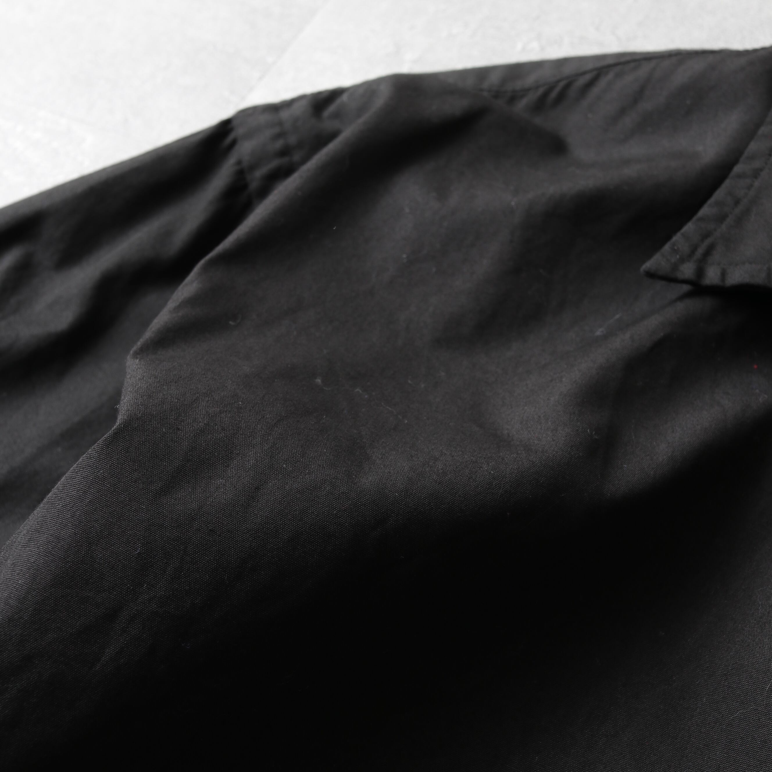 まずあまり見ないブラック。生地は光沢がありシャリっとした平織コットン。