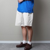 やや薄手の生地でノータックですがワイドな渡り、そして膝丈のオーソドックスな「PROSPECT SHORT」モデル。