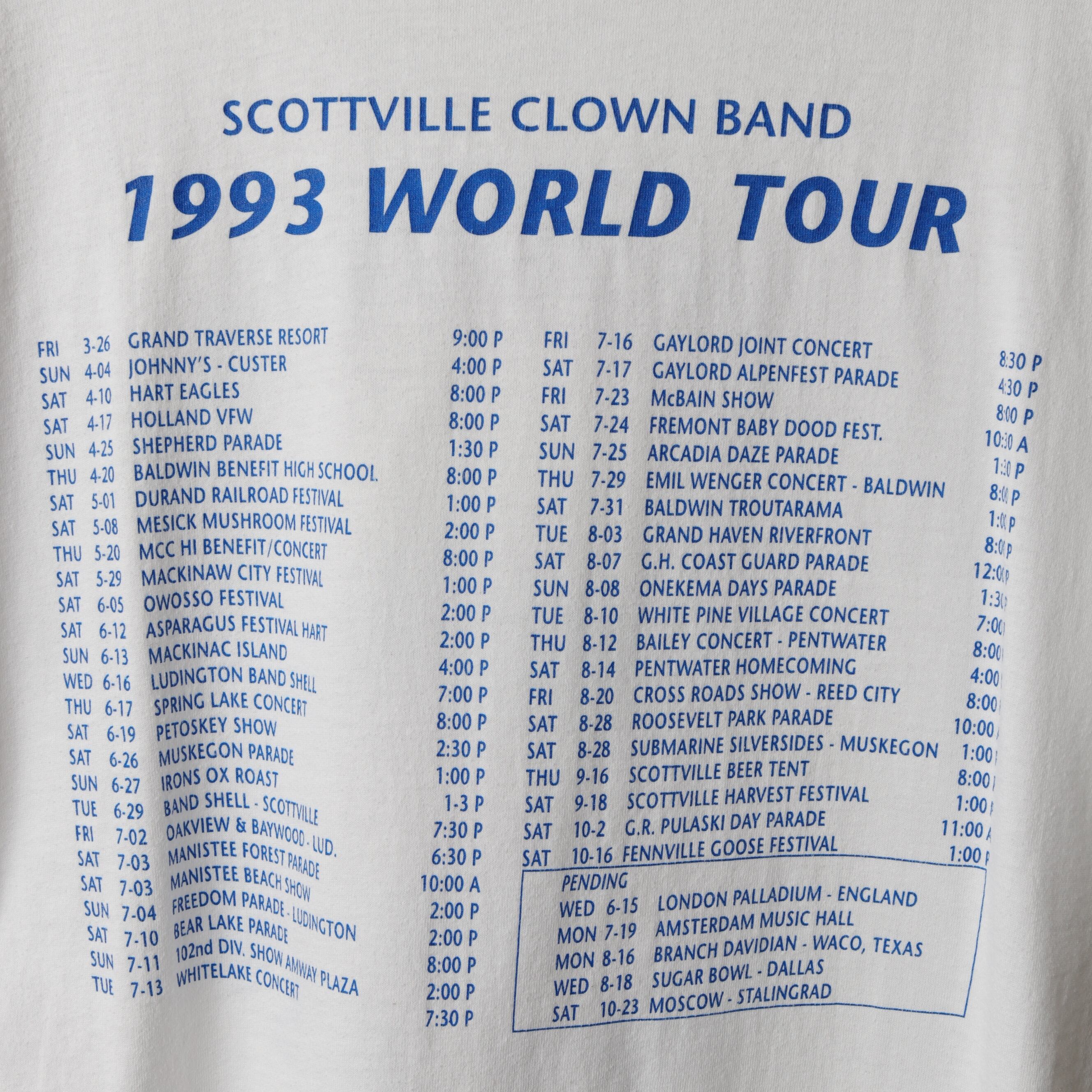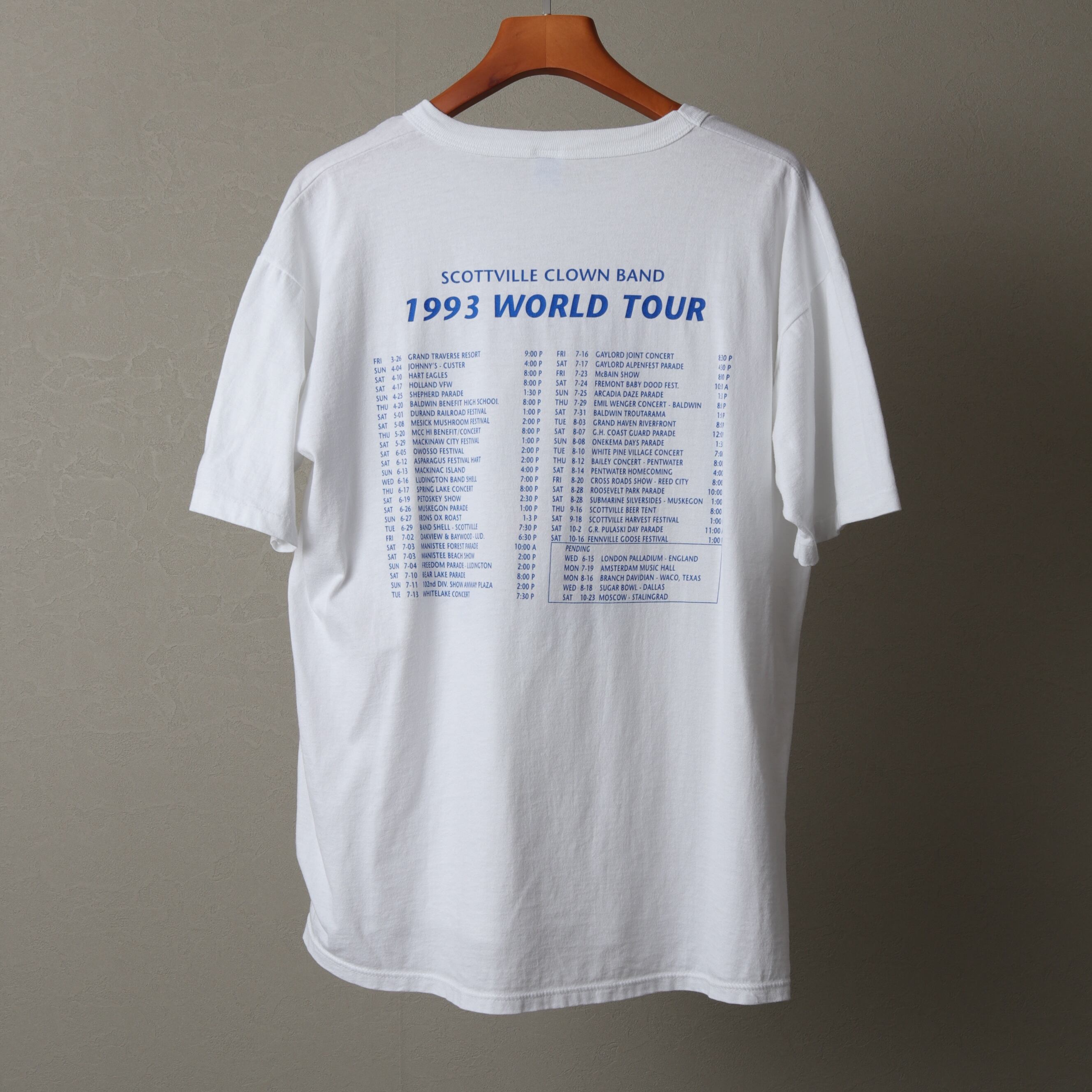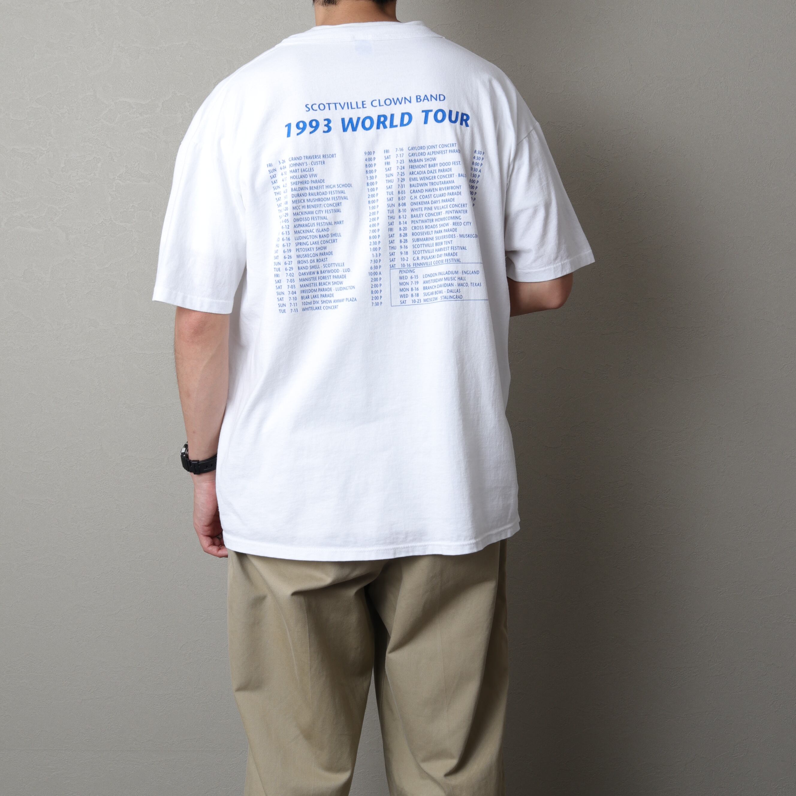バックプリントに入るツアーで巡る地域もNYやLAなどでなく、ローカルな地域の祝祭や学園祭などが記されています。