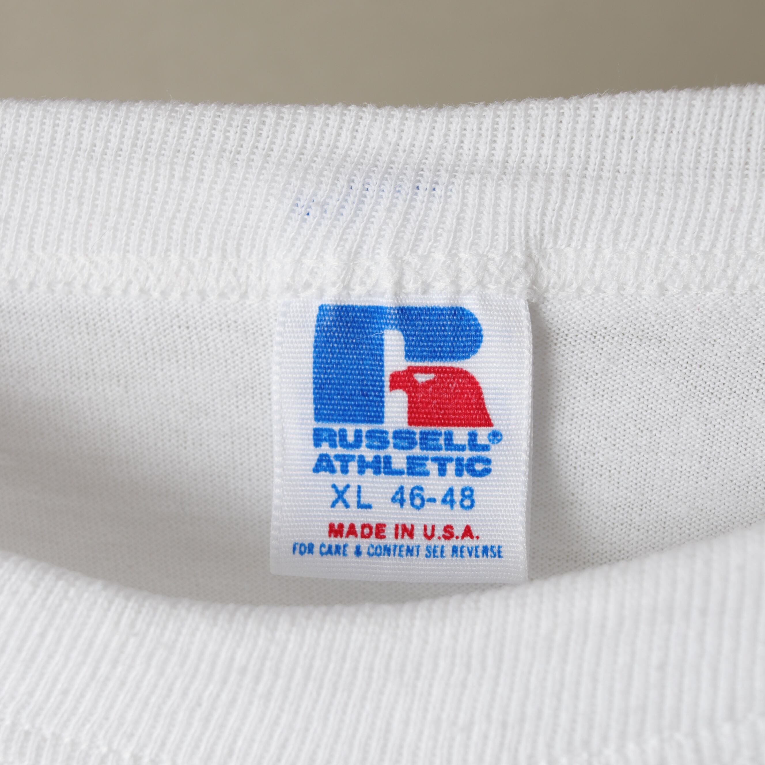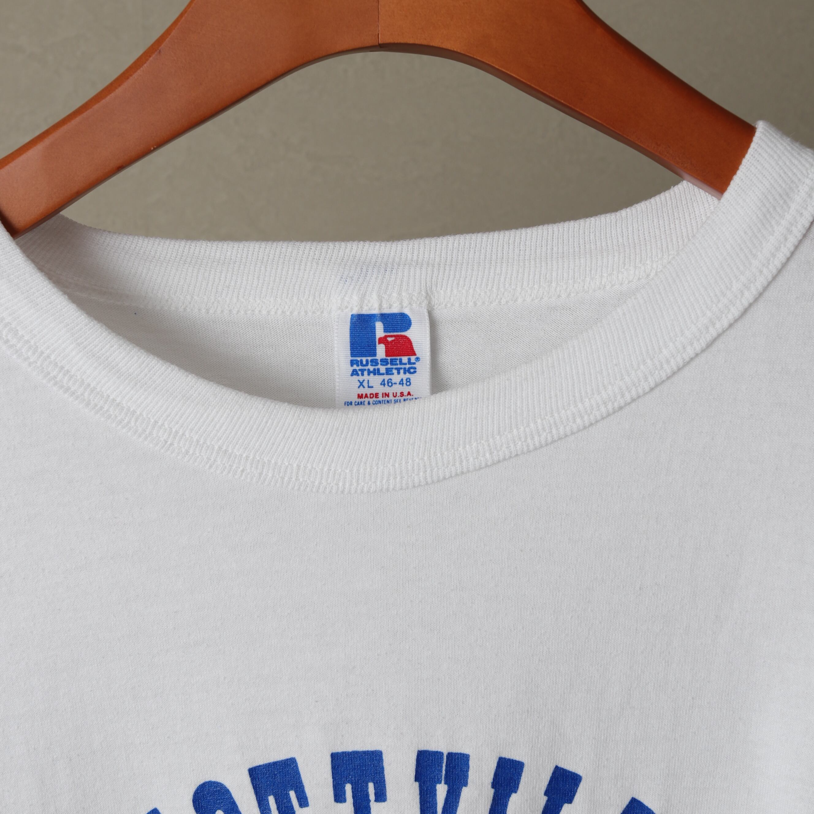 ボディはラッセルアスレチックの50/50生地で身幅たっぷりのボックスシルエットです。