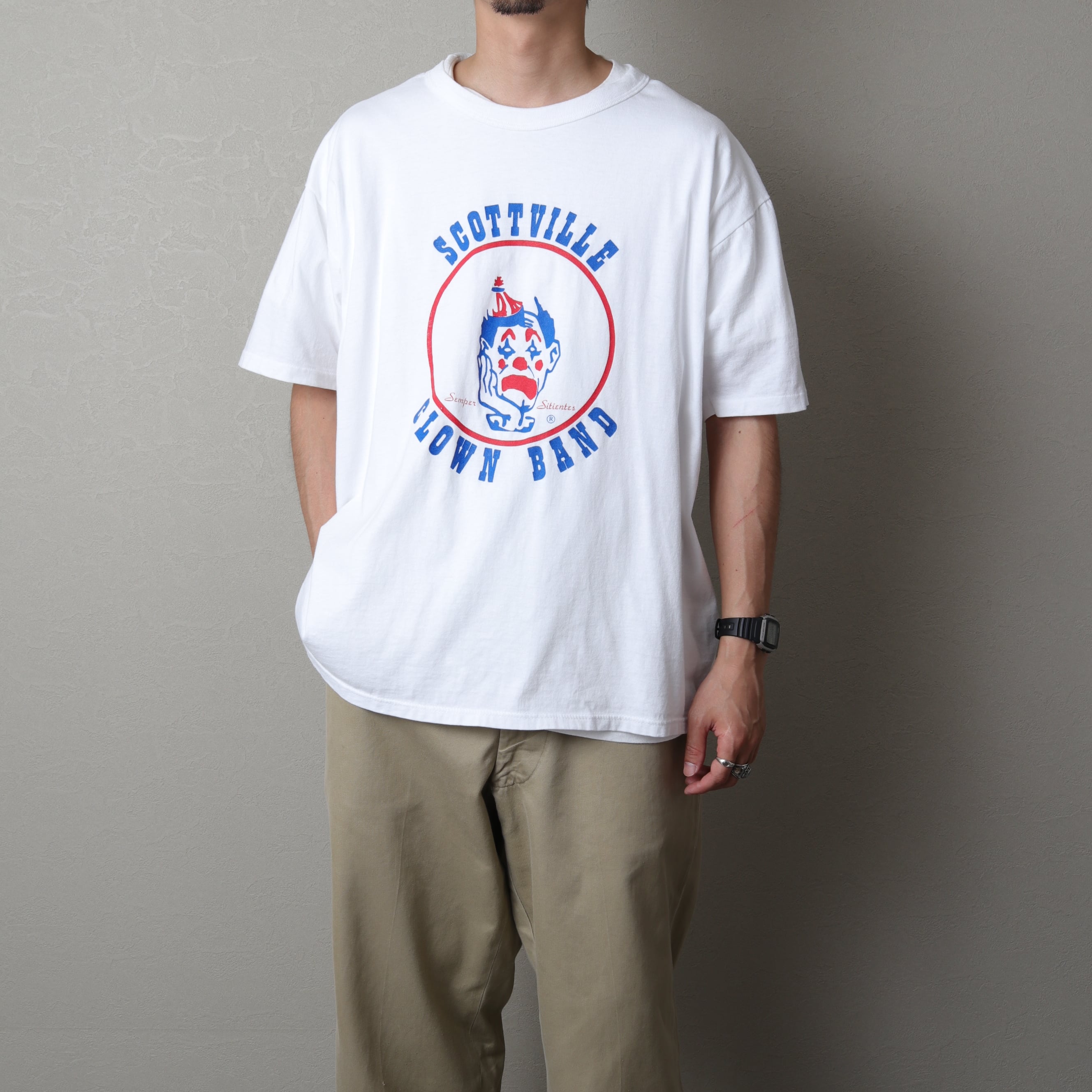 1990's MadeinUSA Vintage Printed T-shirt "scottville clown band" 111144