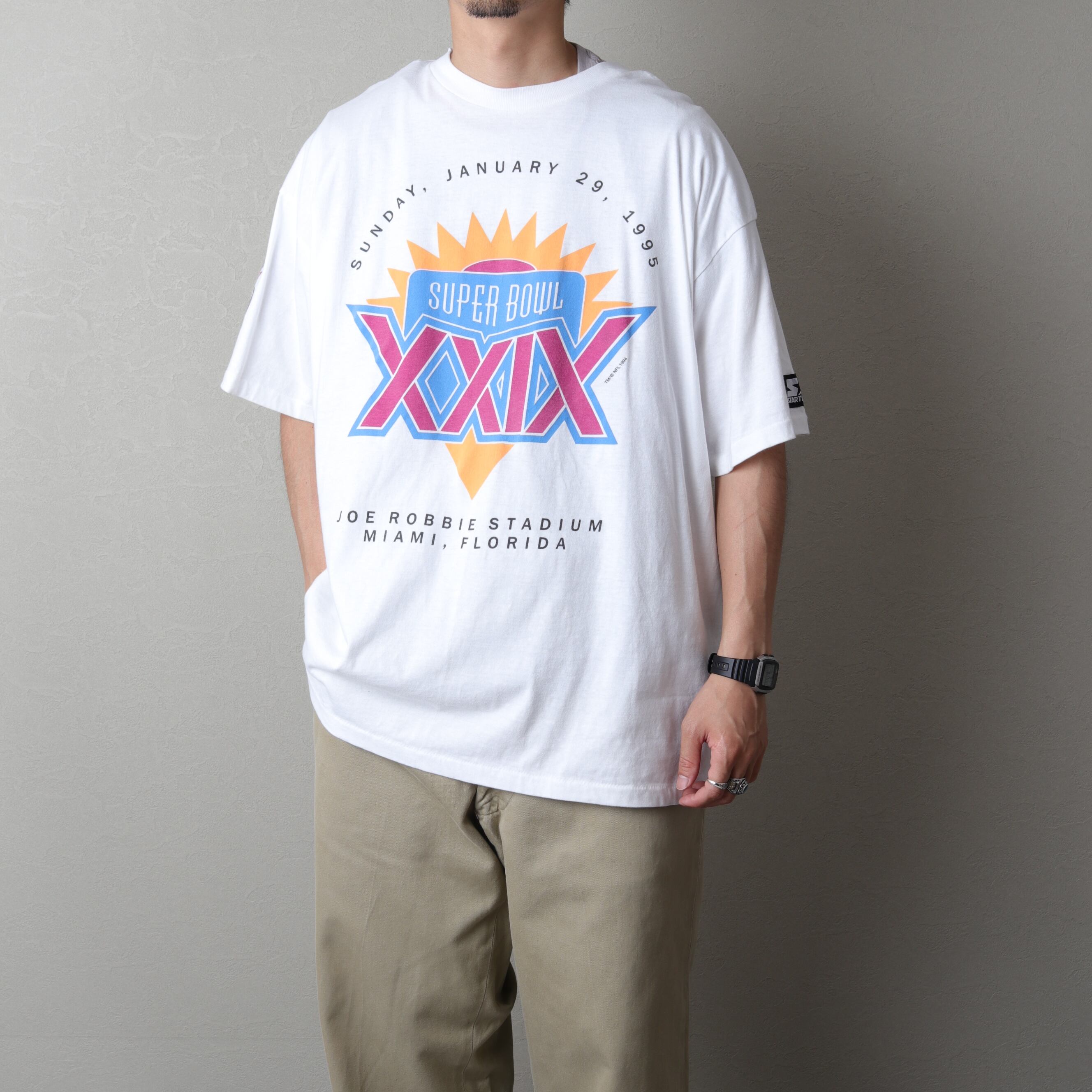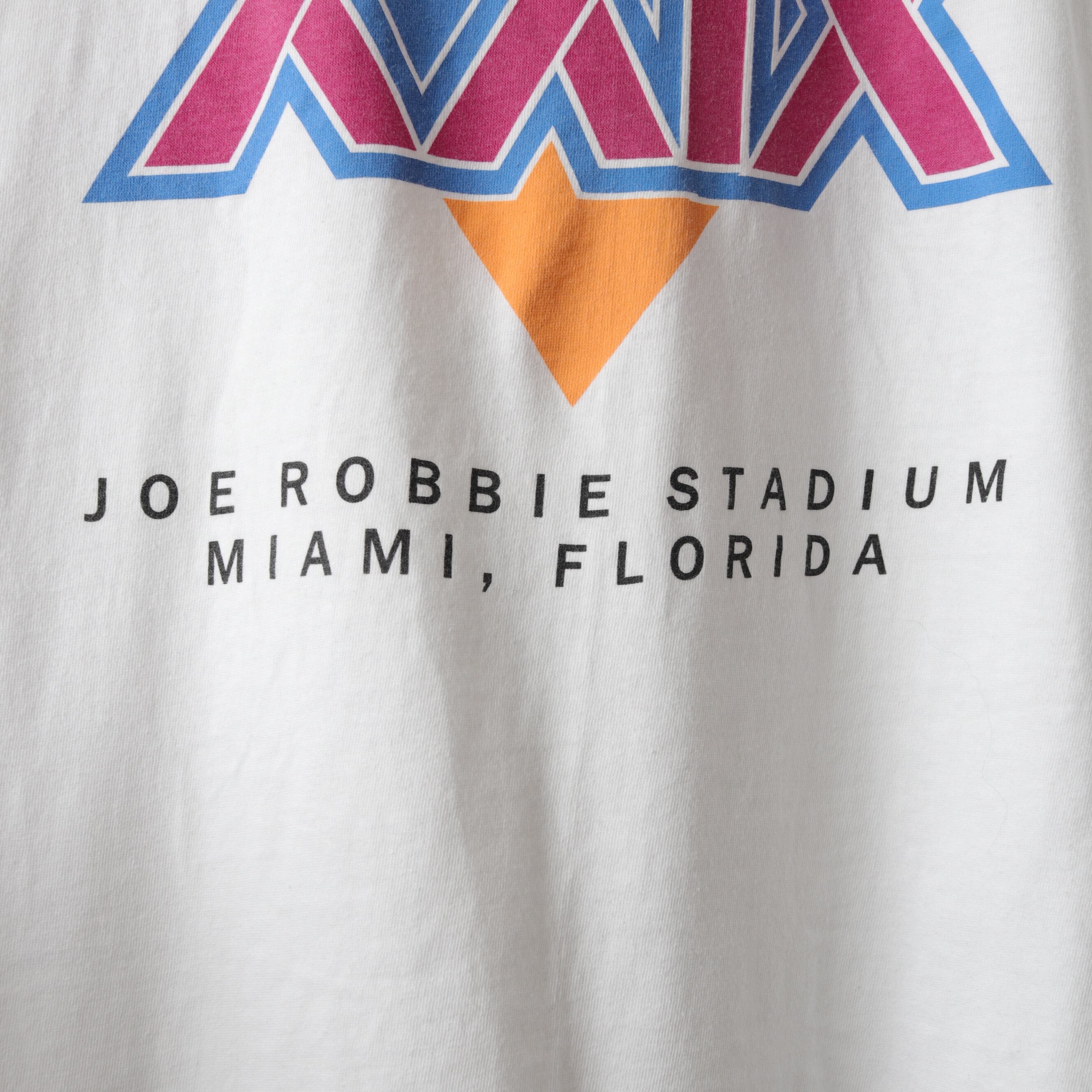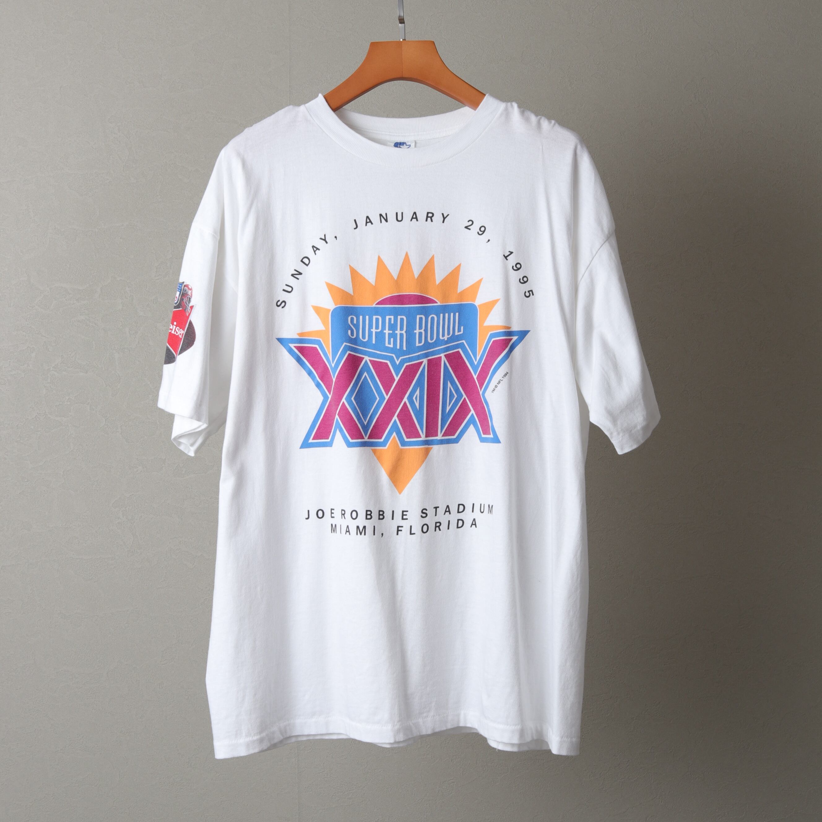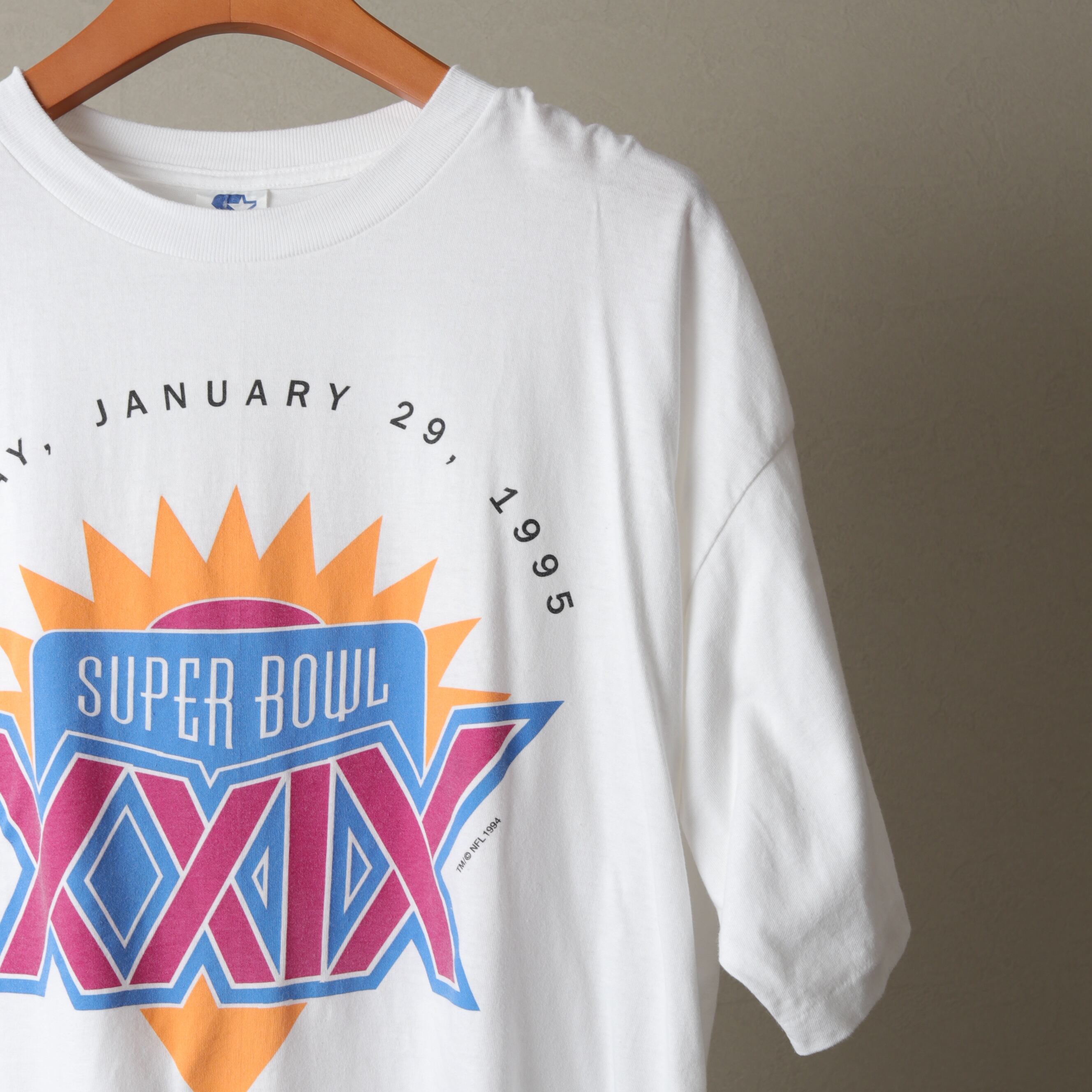 褪せたカラーでデザインされたグッドプリントなスーパーボウルTee。