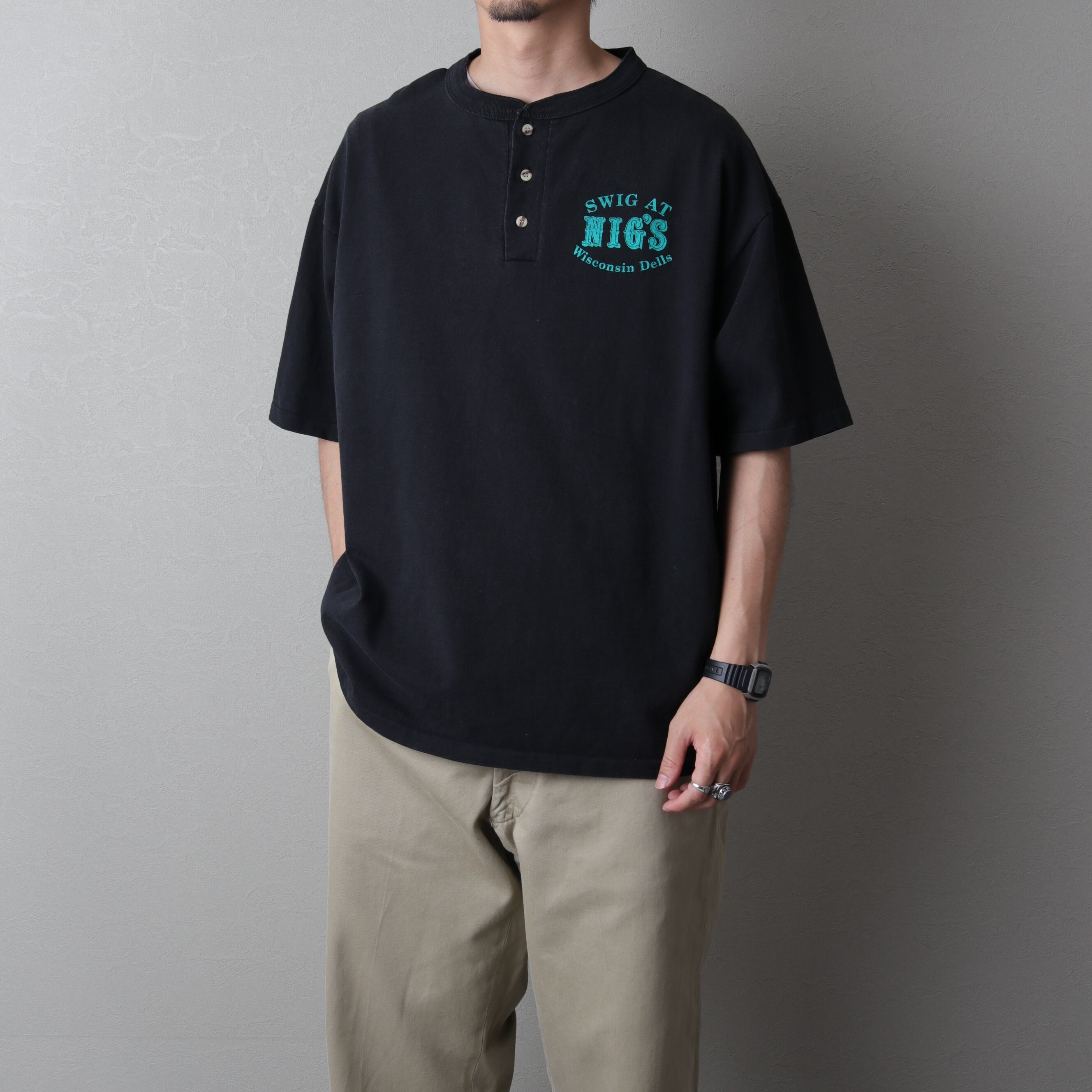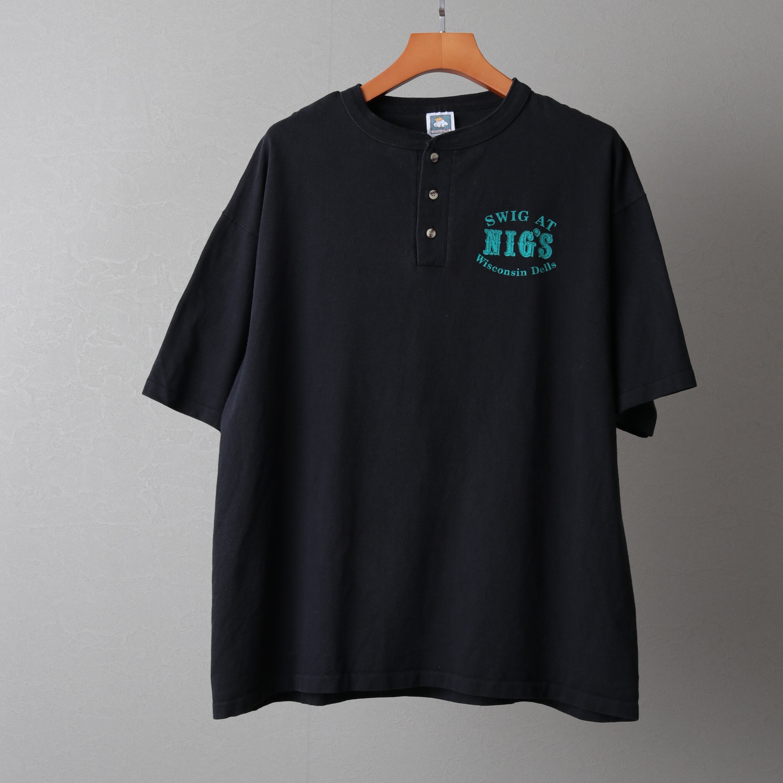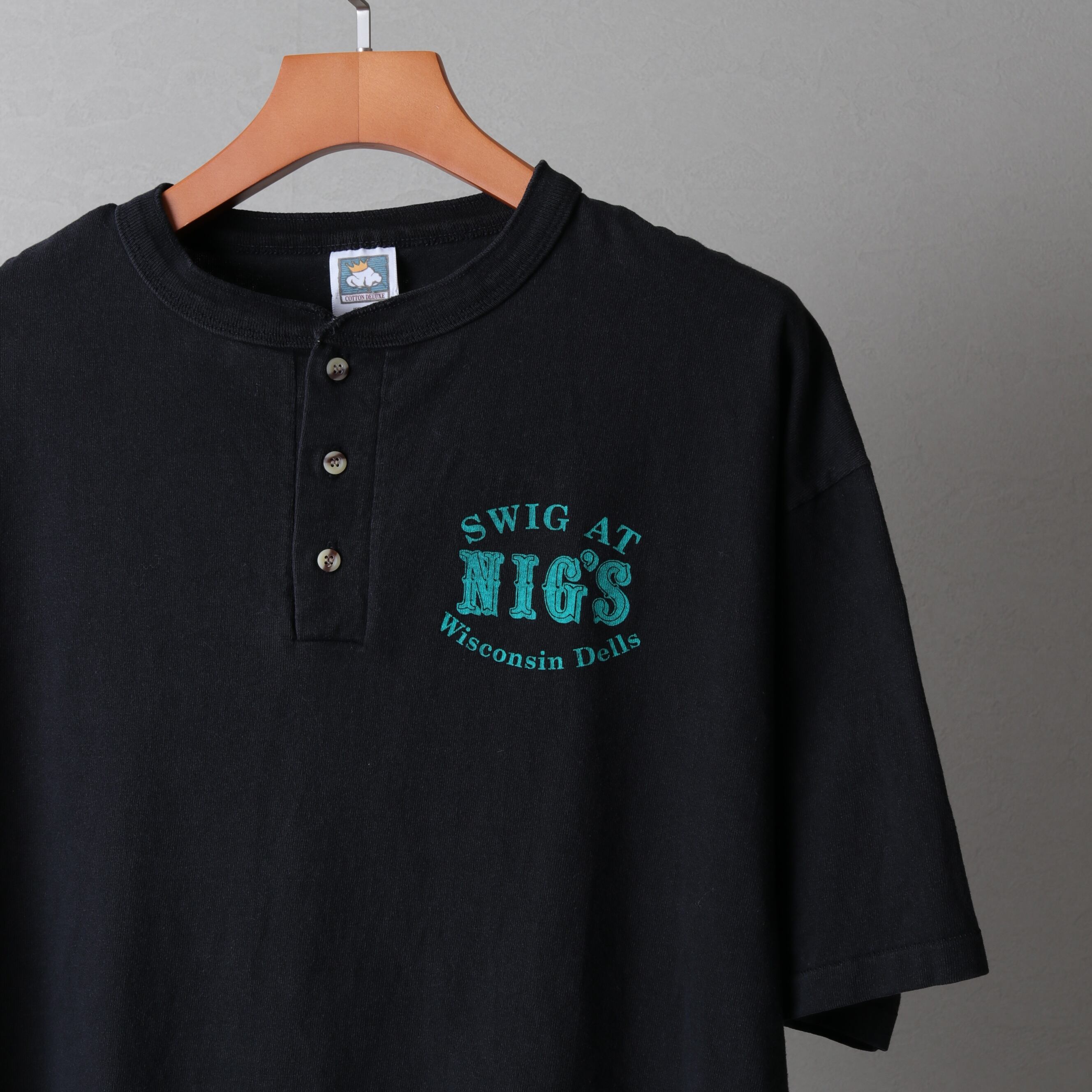 1990's MadeinUSA Vinatge Henry-Neck T-shirt "cotton deluxe" 111173